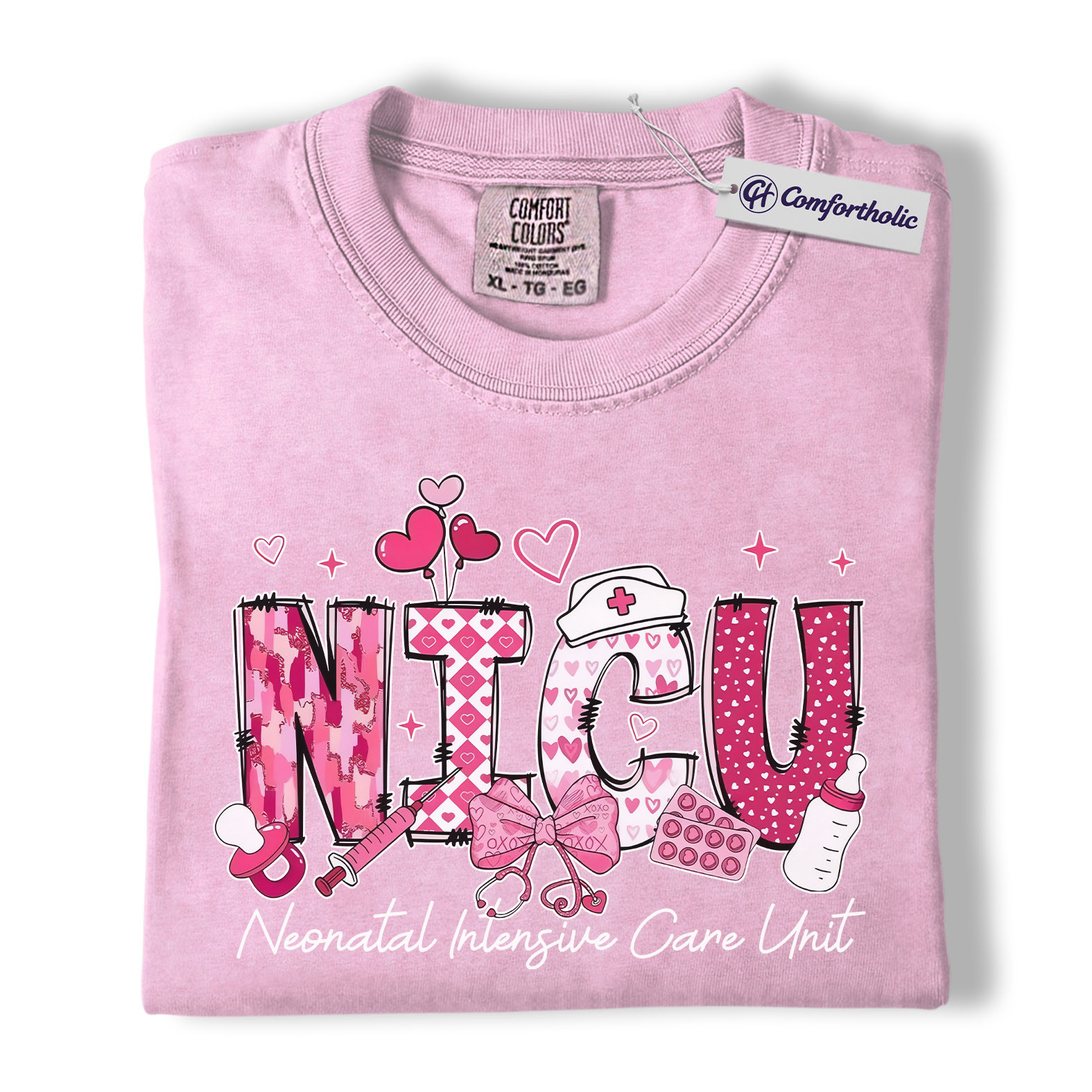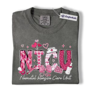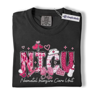 Valentine NICU Nurse Shirt, Cute Neonatal Care Graphic Tee, Neonatal Intensive Care Unit T-Shirt, Valentine’s Day Gift for NICU Nurses, Comfort Colors Shirt