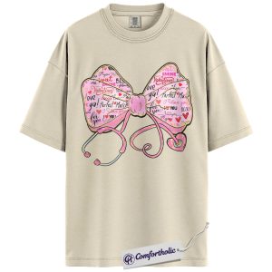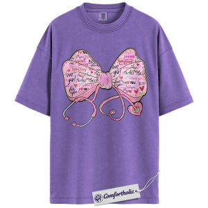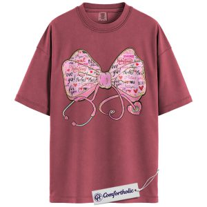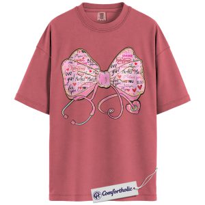 Valentine Nurse Shirt, Stethoscope Heart Bow Graphic Tee, Cute Medical Pink Aesthetic T-Shirt, Healthcare Worker Valentine Gift for Nurses, Comfort Colors Shirt