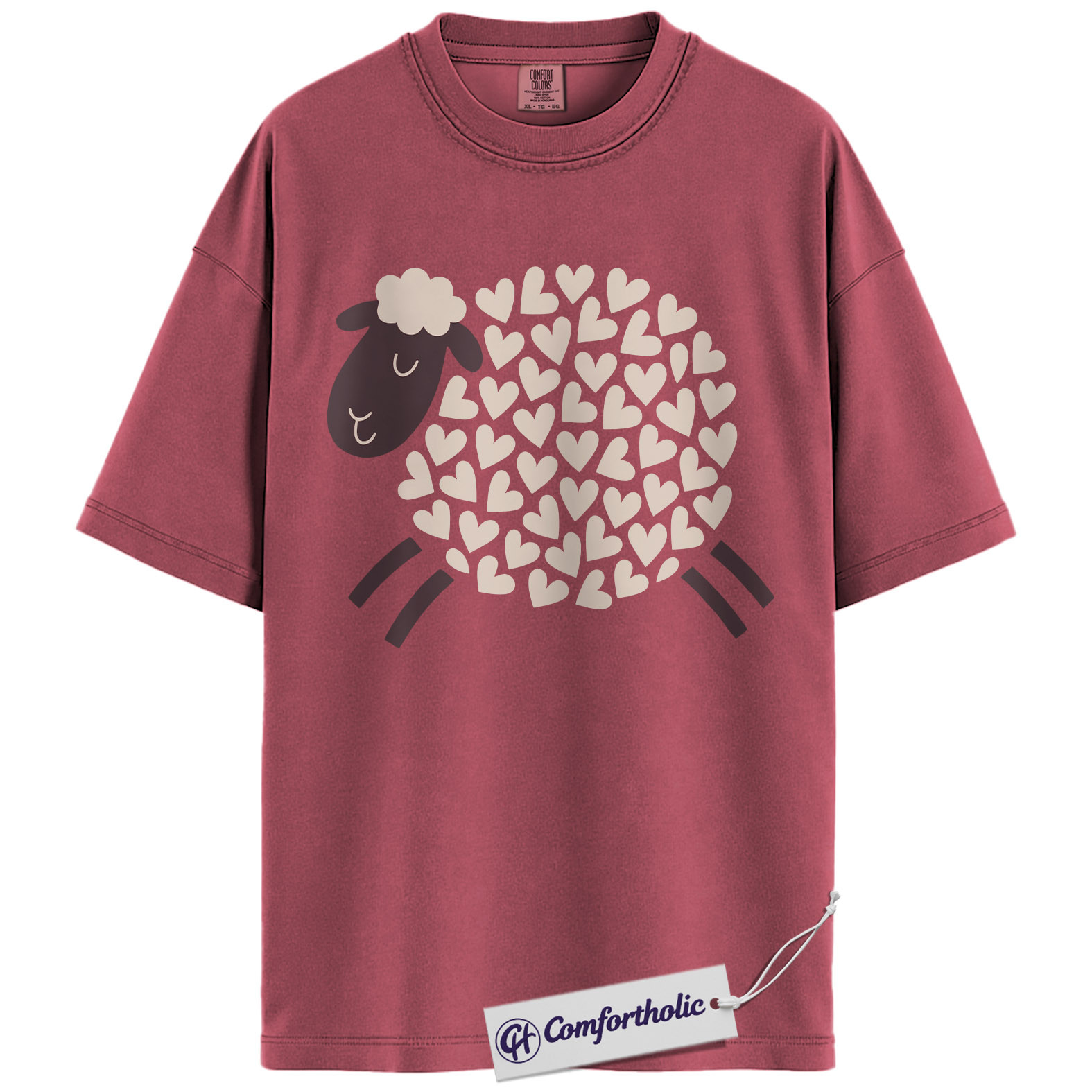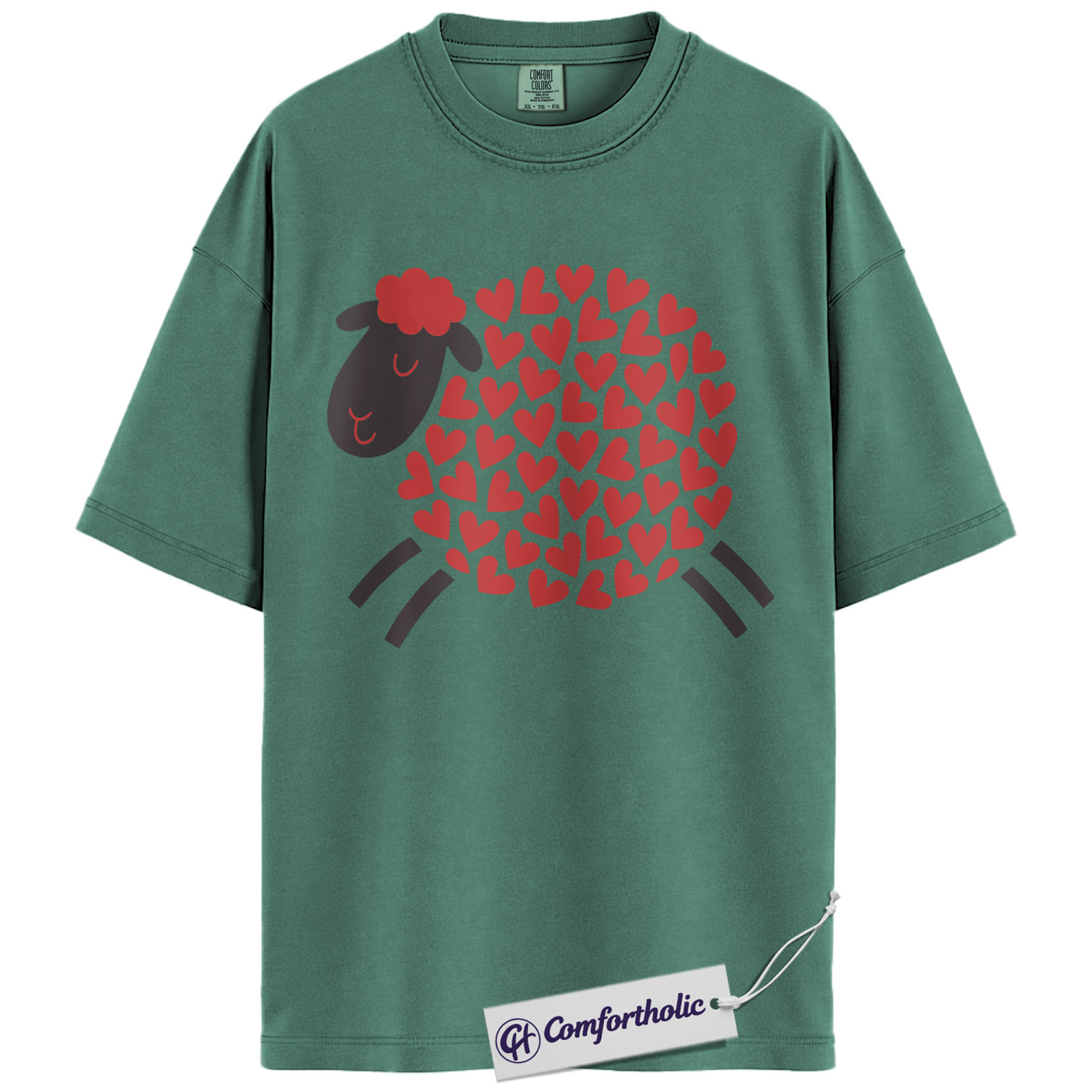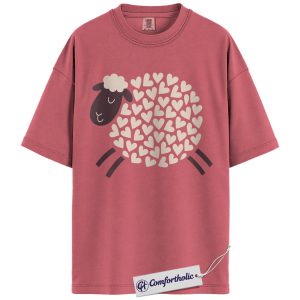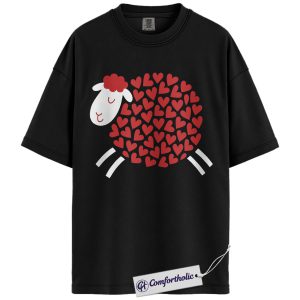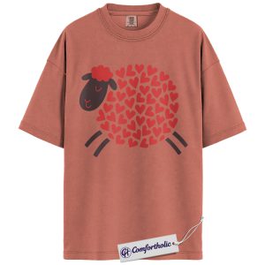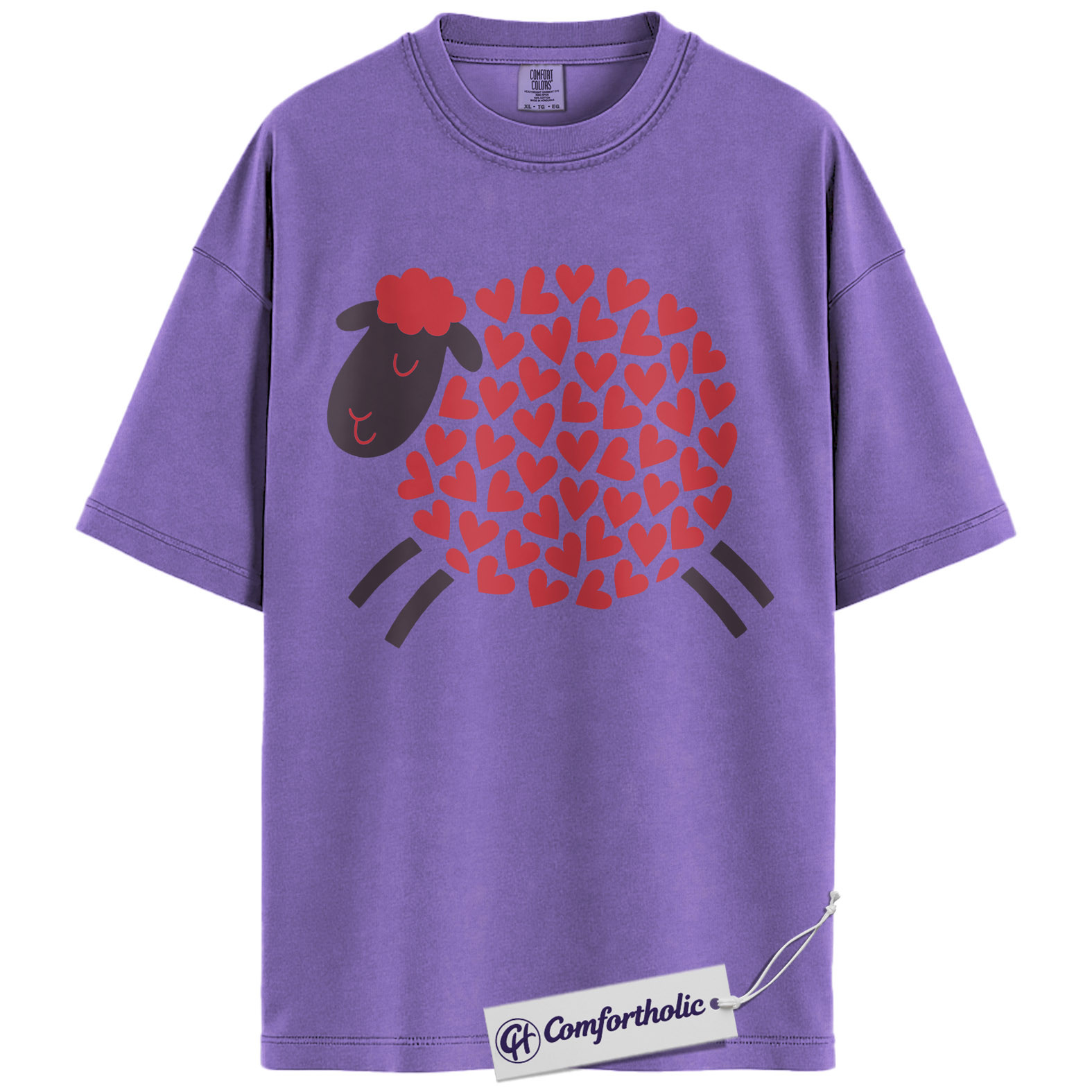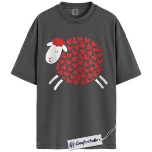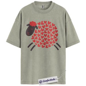 Valentine Sheep Shirt, Cute Heart Farm Graphic Tee, Sheep Lover T-Shirt, Valentine’s Day Gift for Animal Lovers, Comfort Colors Shirt