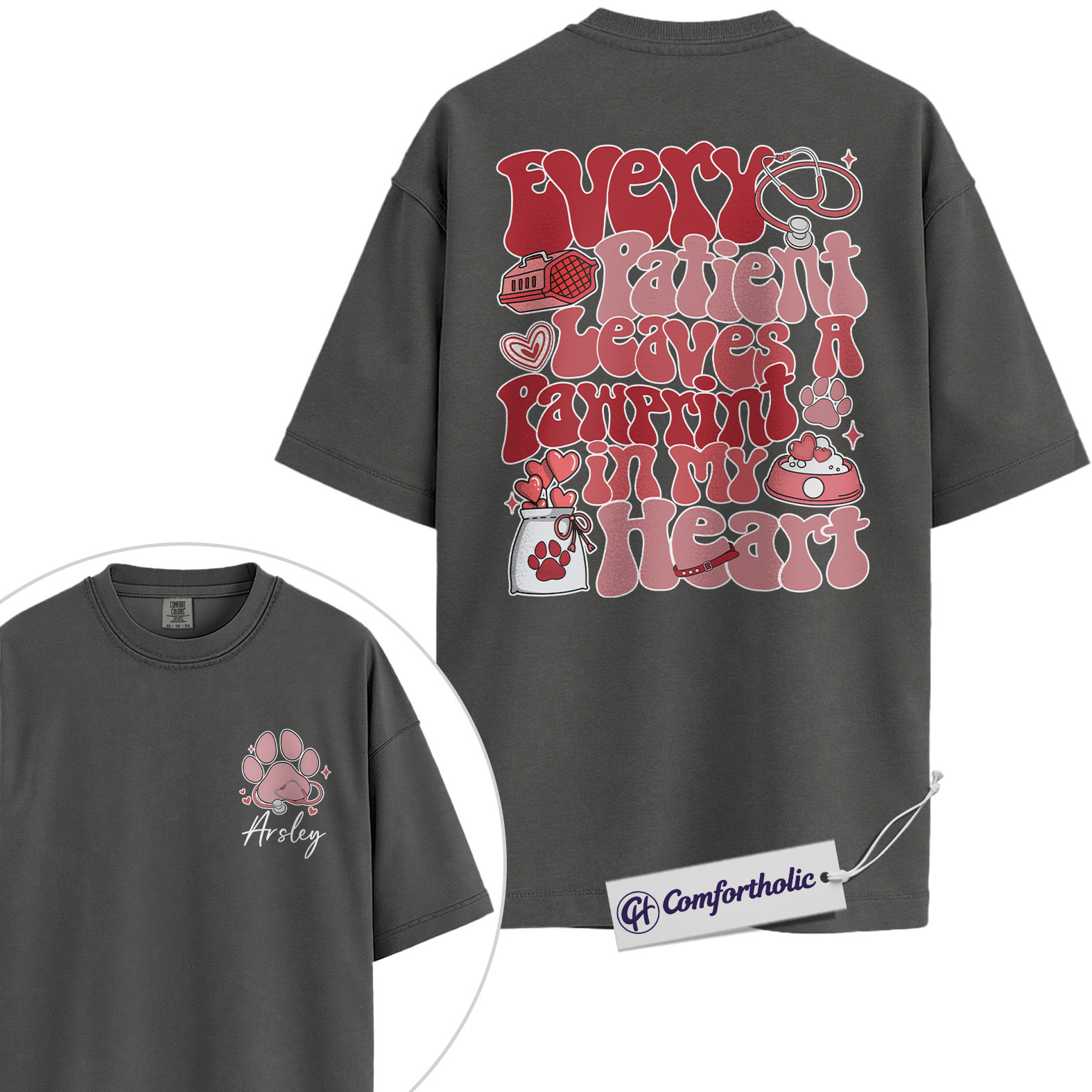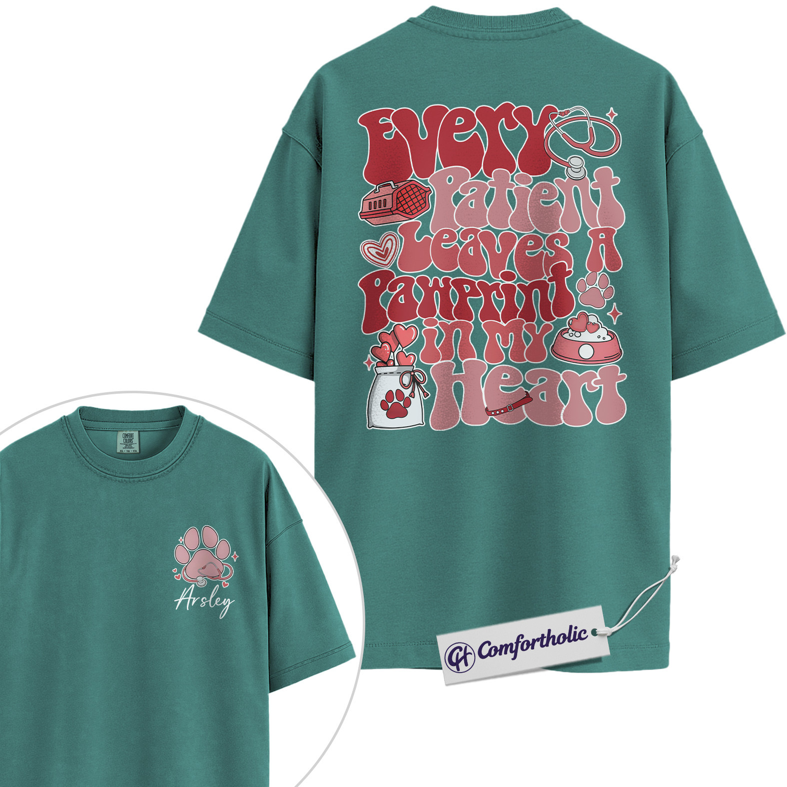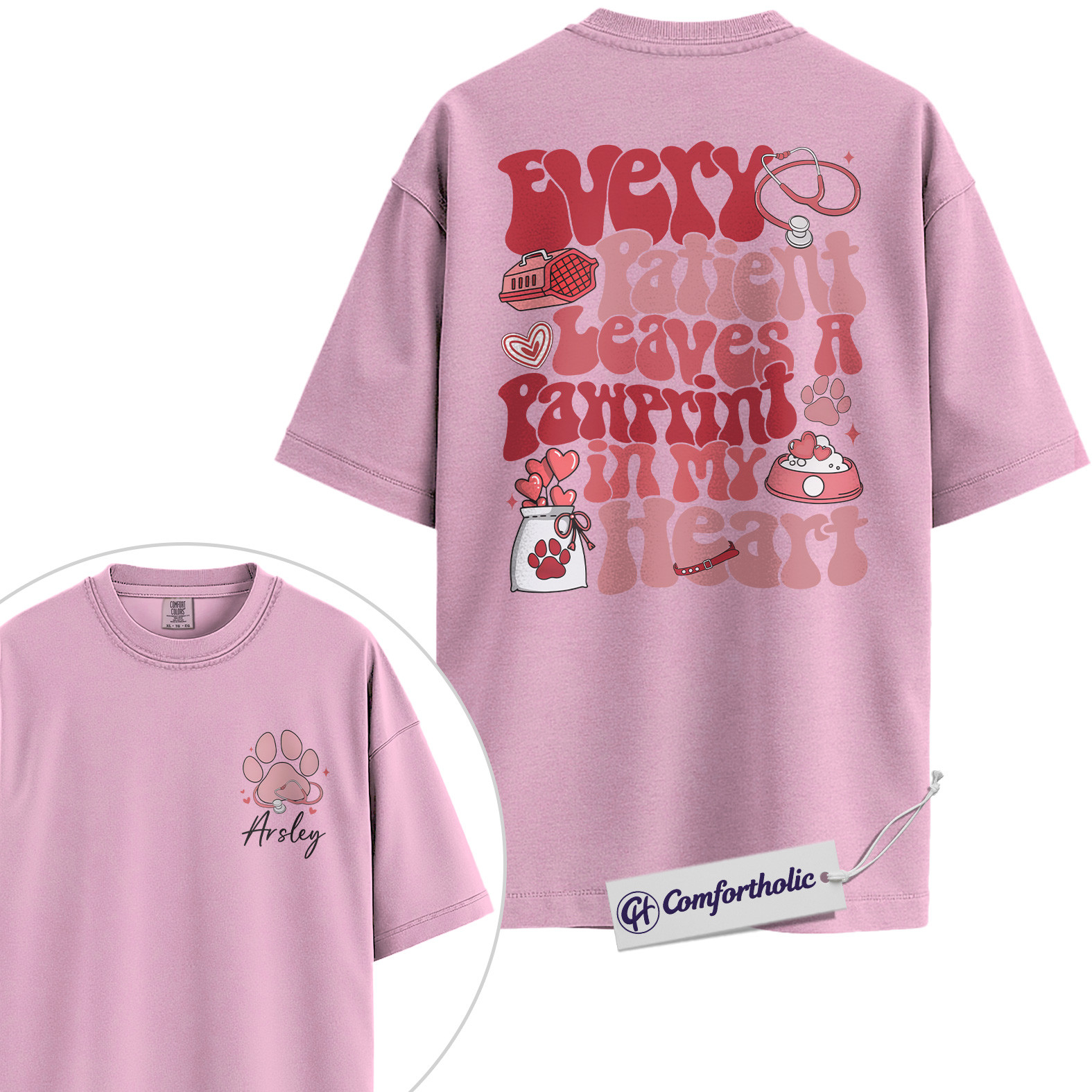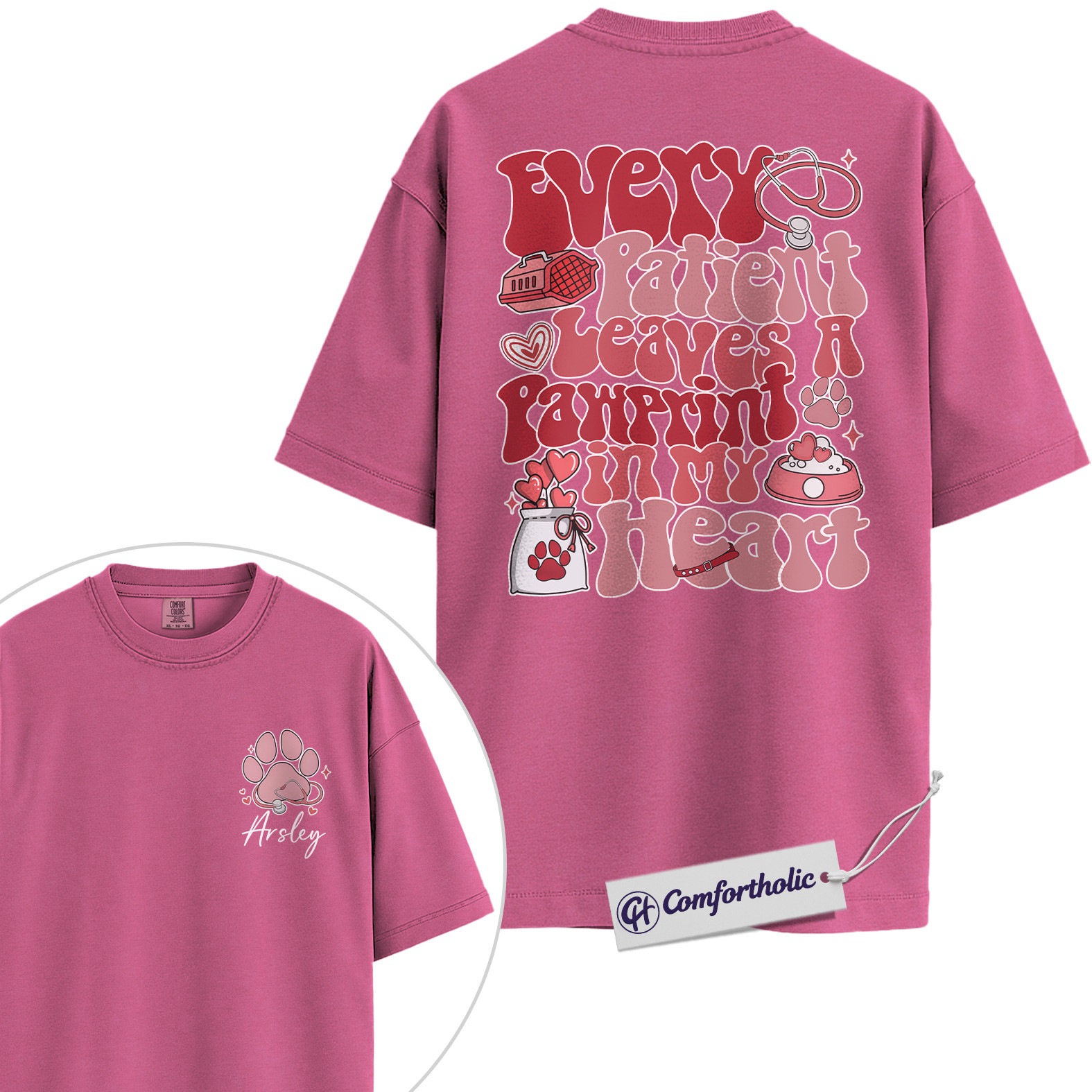 Valentine Vet Tech Pawprint Shirt, Personalized Veterinary Technician Graphic Tee, Cute Animal Clinic T-Shirt, Custom Name Gift for Vet Techs & Pet Lovers, Comfort Colors Shirt 2-Sided