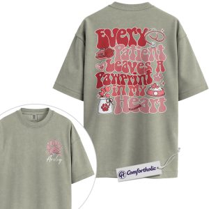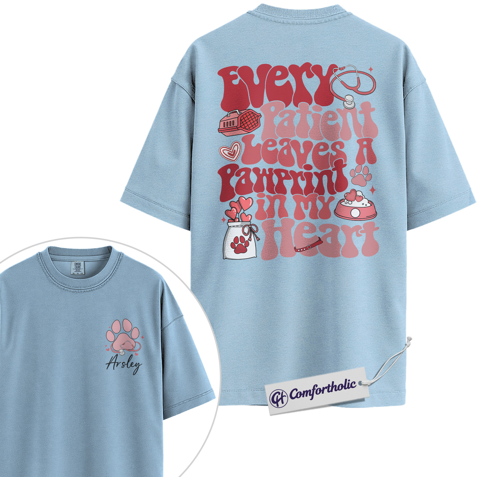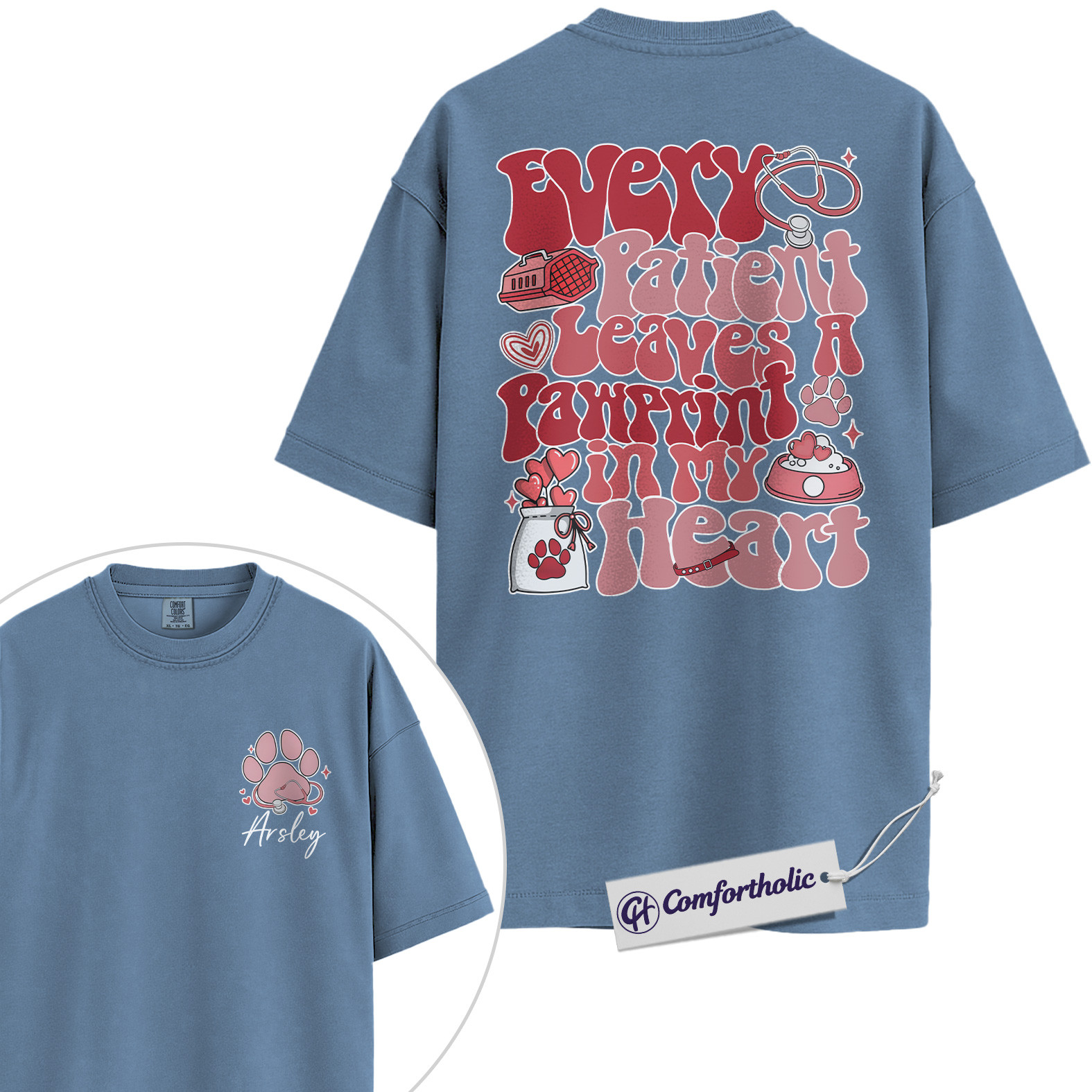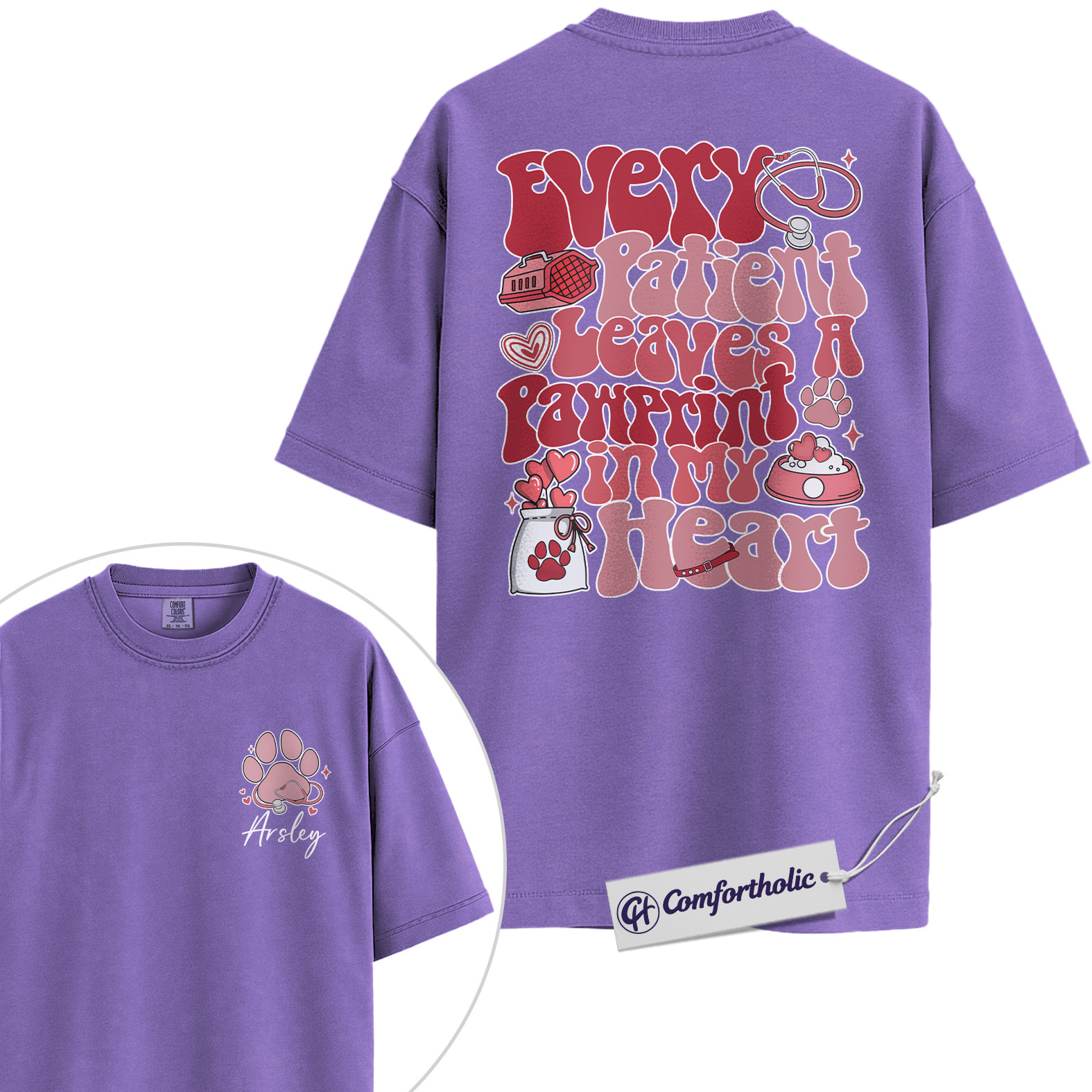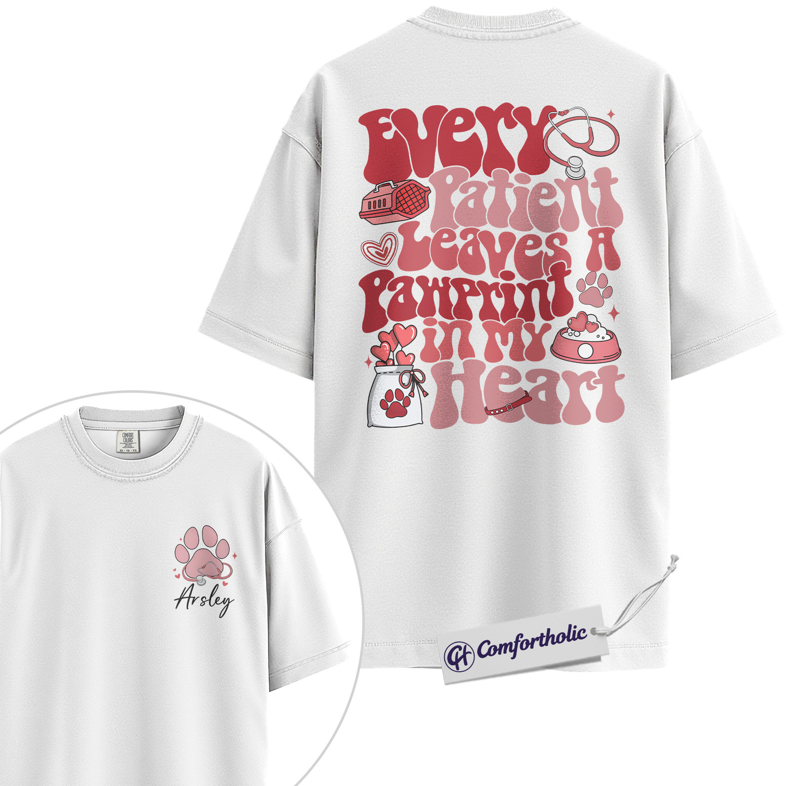 Valentine Vet Tech Pawprint Shirt, Personalized Veterinary Technician Graphic Tee, Cute Animal Clinic T-Shirt, Custom Name Gift for Vet Techs & Pet Lovers, Comfort Colors Shirt 2-Sided