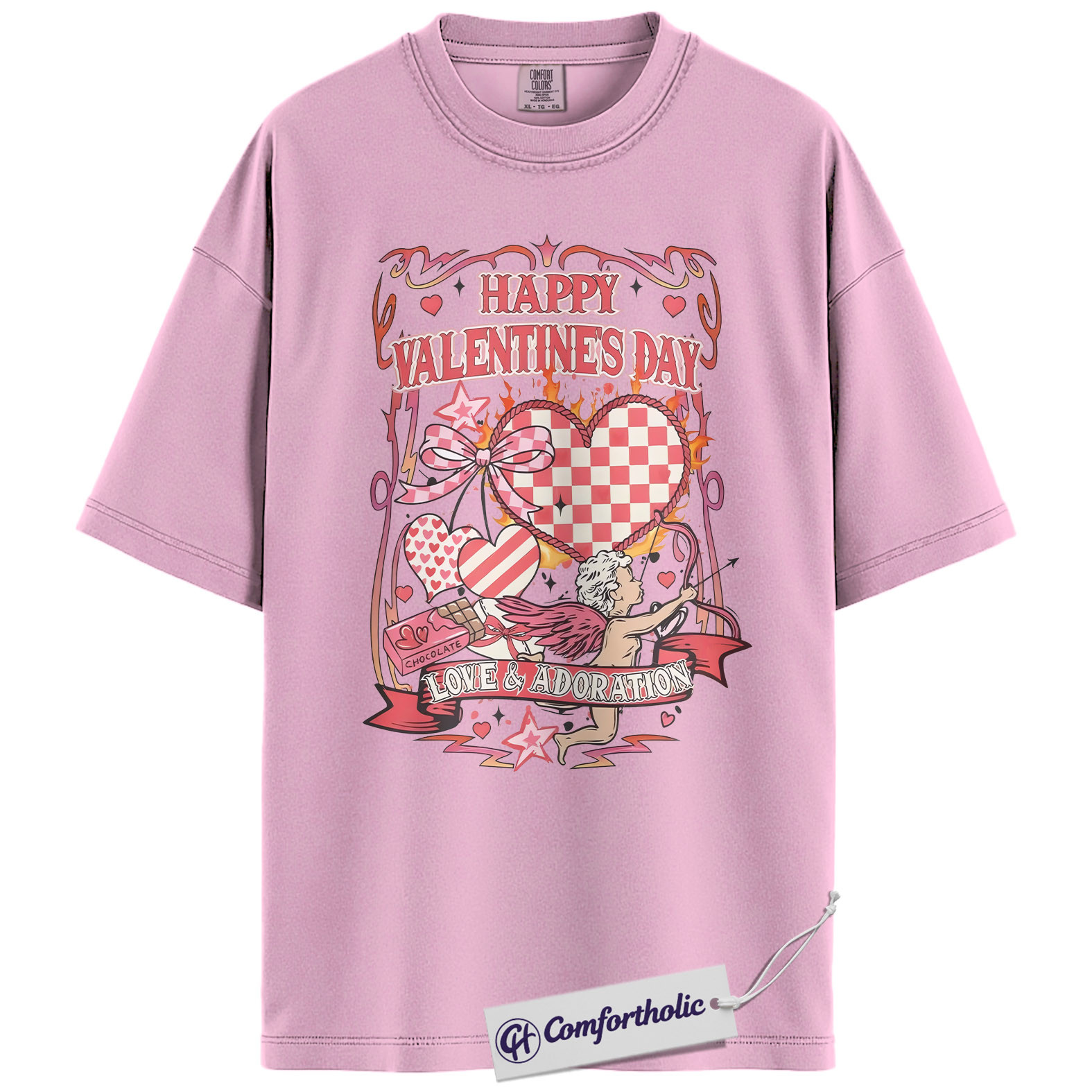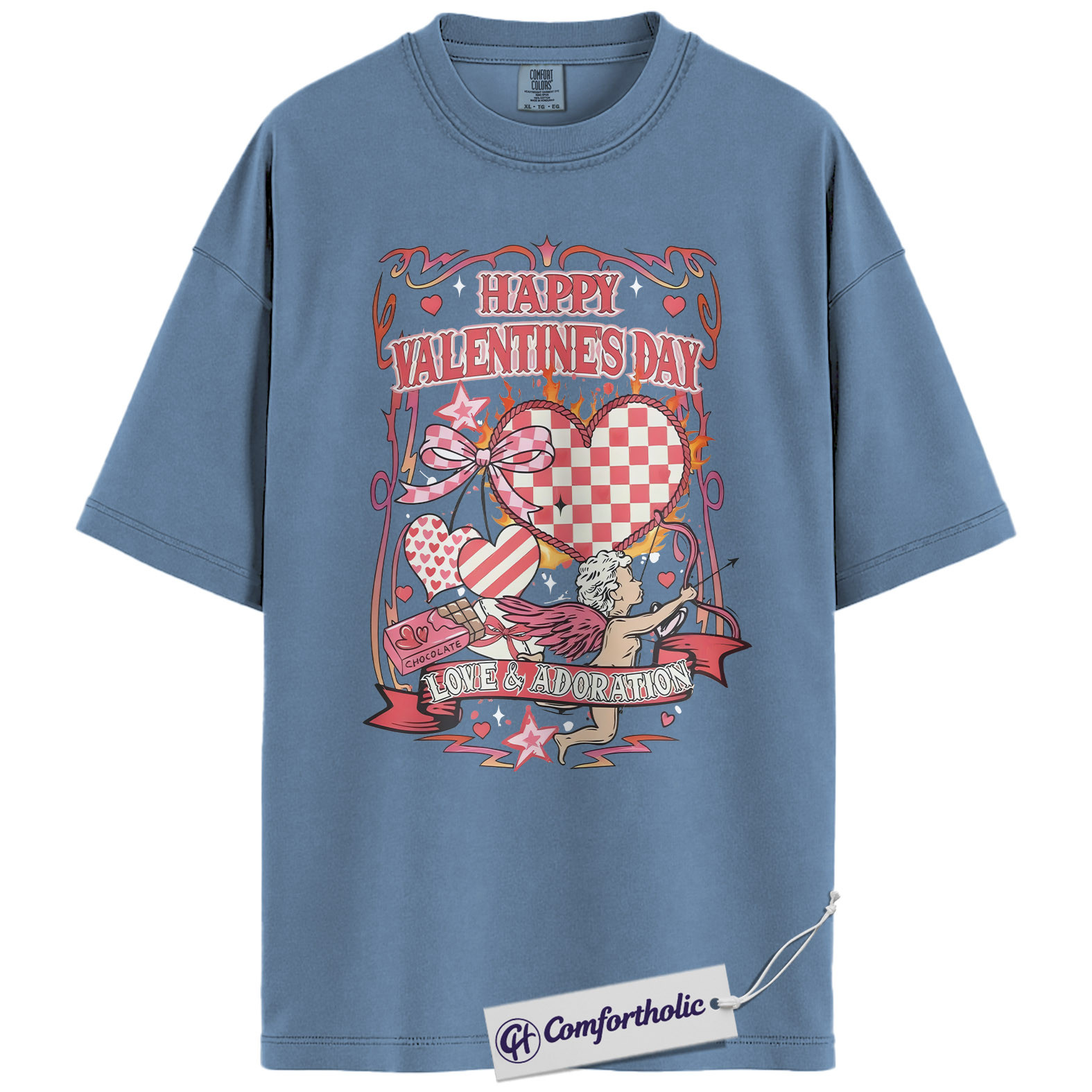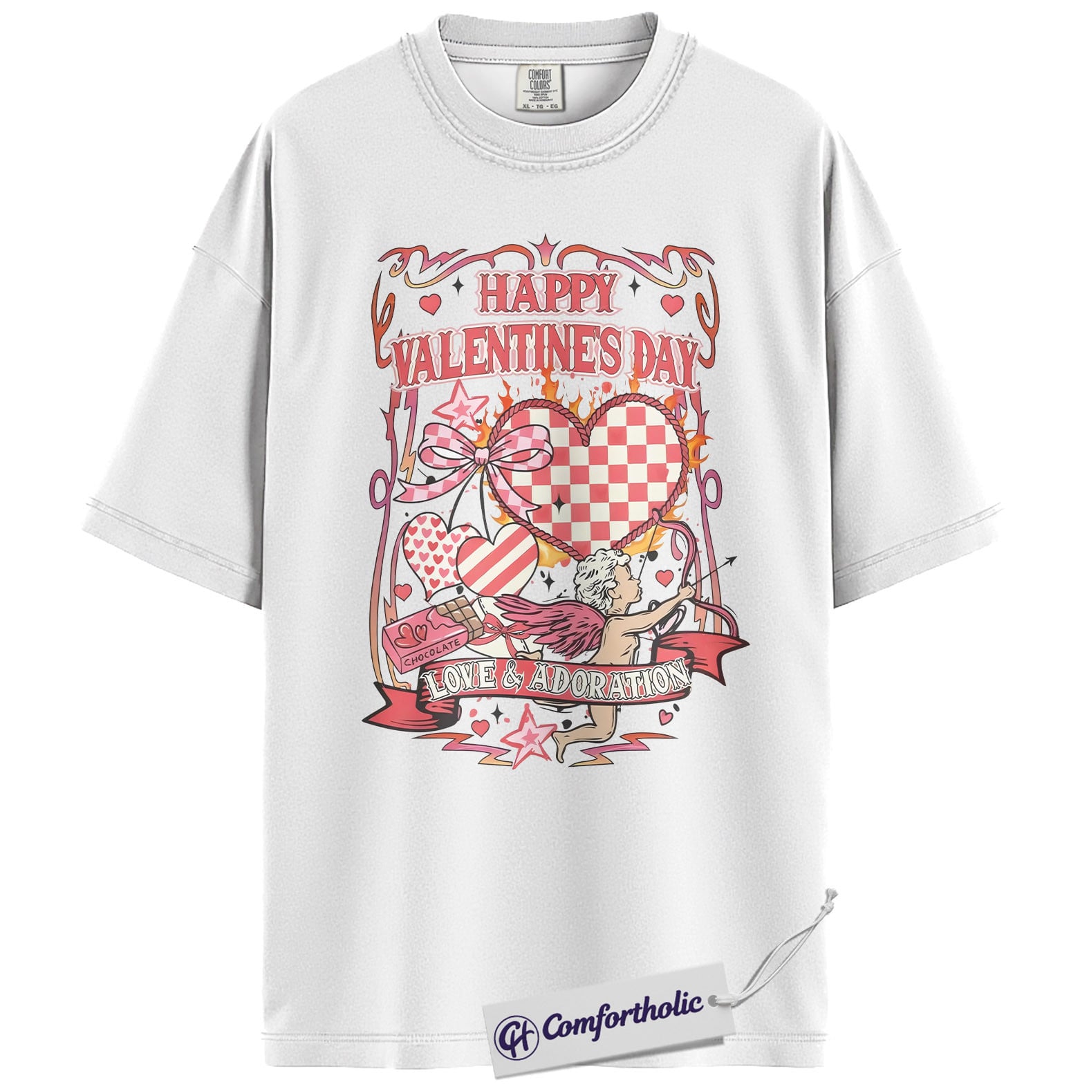 Valentine’s Day Cupid Shirt, Retro Coquette Heart Graphic Tee, Romantic Love & Adoration T-Shirt, Cute Valentine Gift for Her, Comfort Colors Shirt