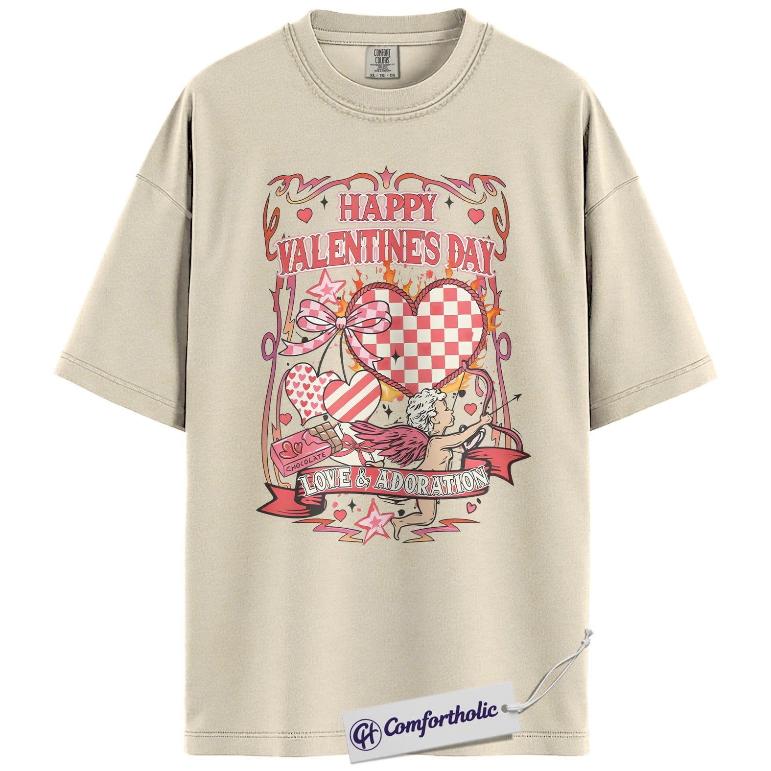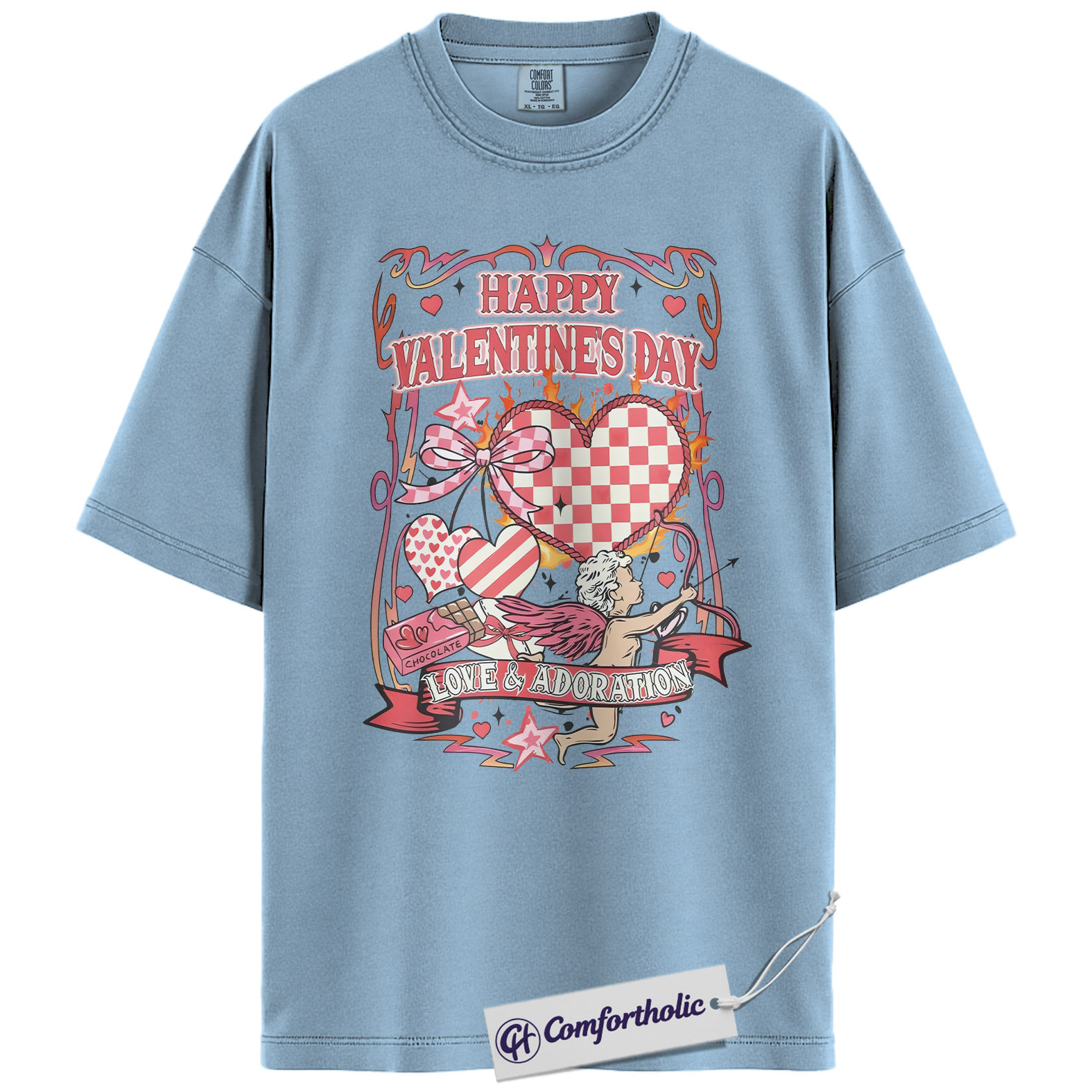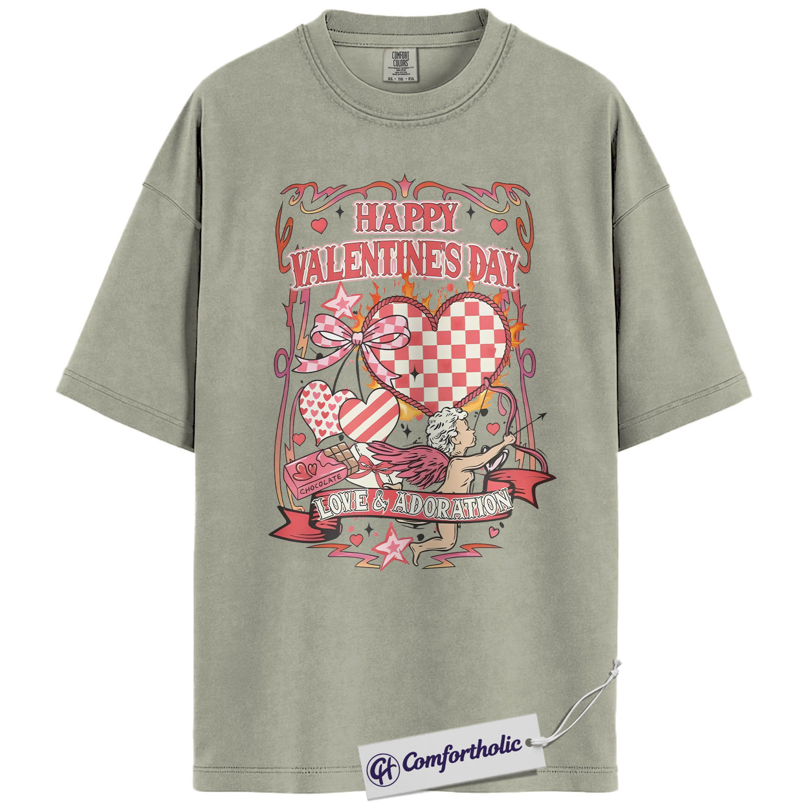 Valentine’s Day Cupid Shirt, Retro Coquette Heart Graphic Tee, Romantic Love & Adoration T-Shirt, Cute Valentine Gift for Her, Comfort Colors Shirt