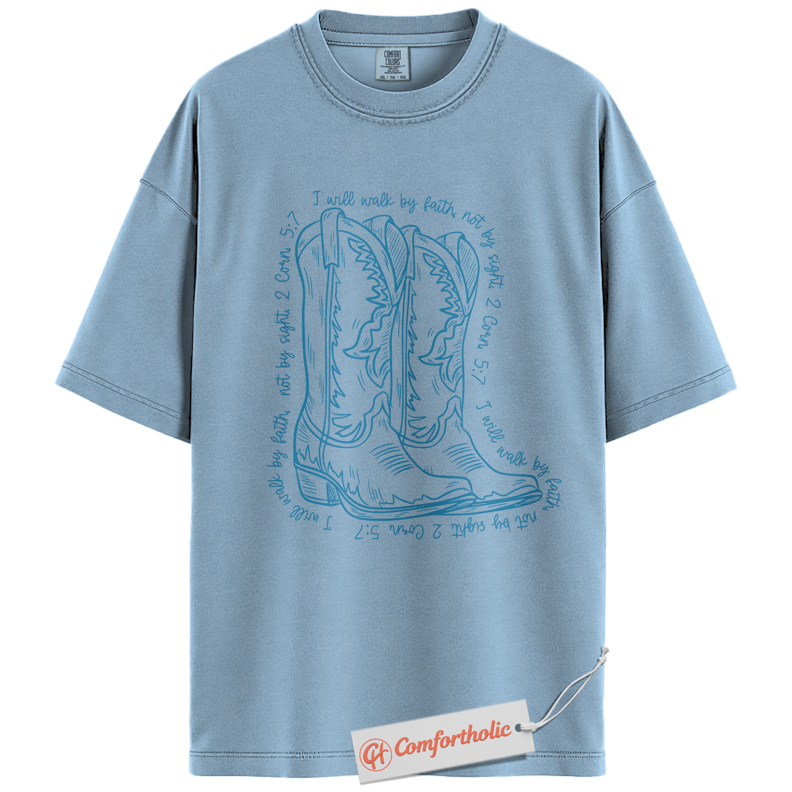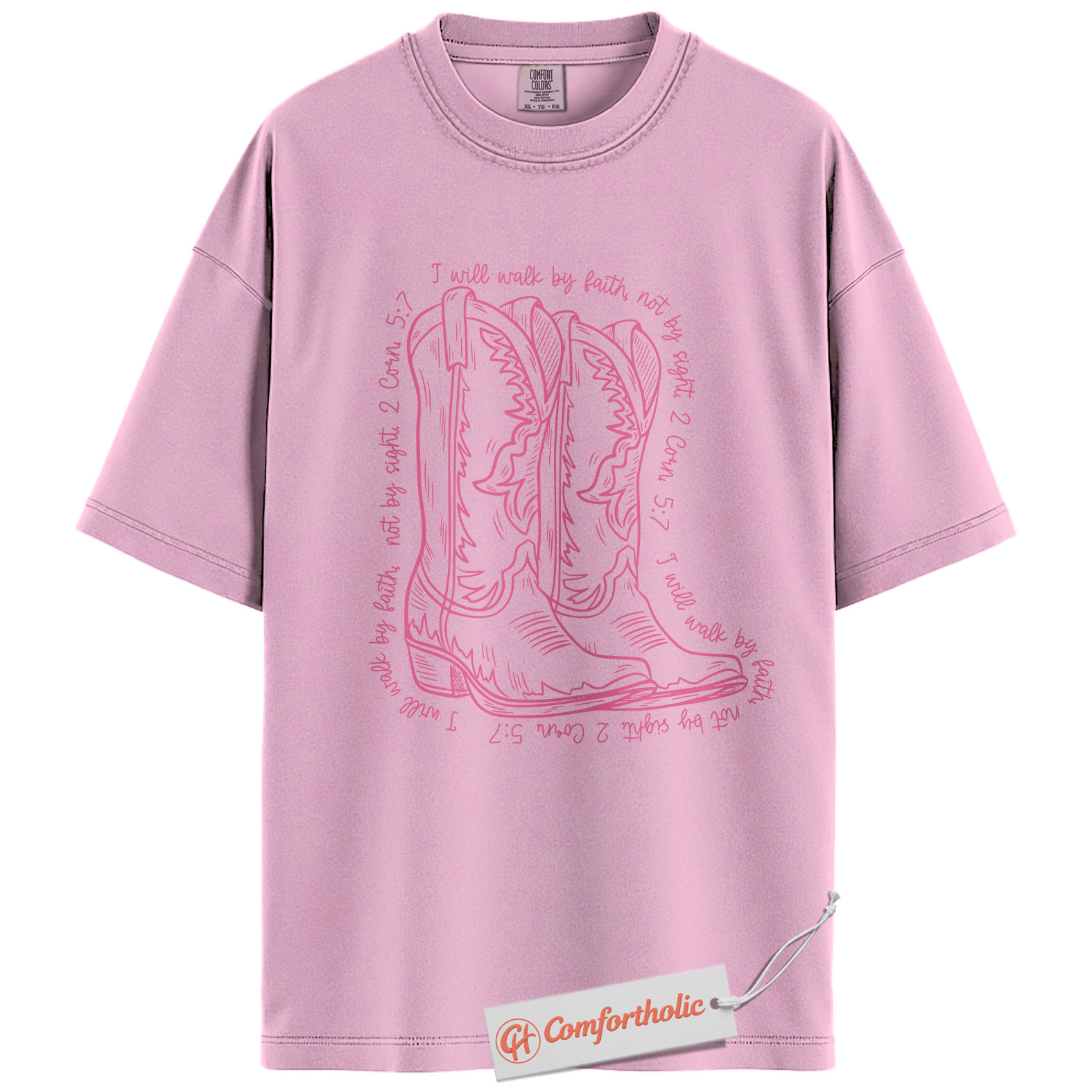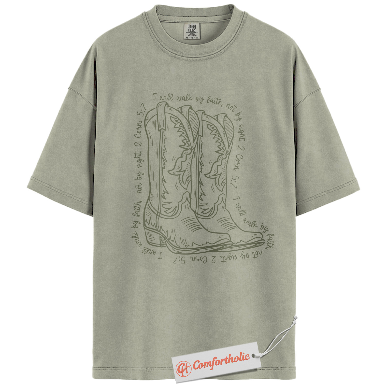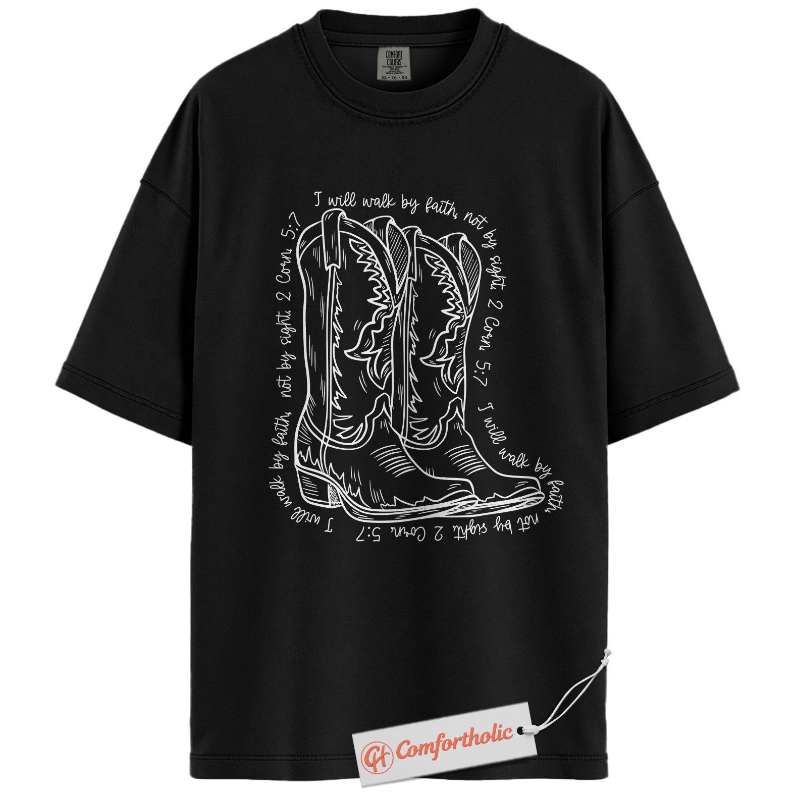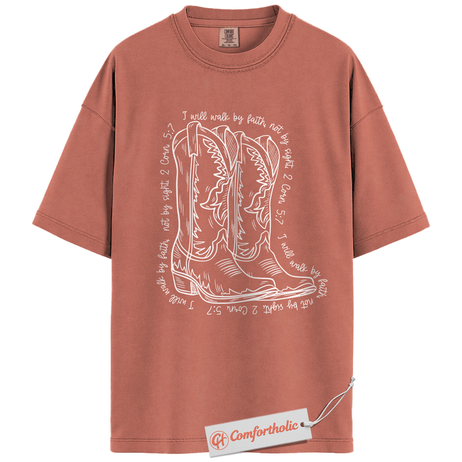 Walk by Faith Shirt, 2 Corinthians 5:7 Bible Verse Tee, Cowgirl Christian T-Shirt, Western Comfort Colors Shirt