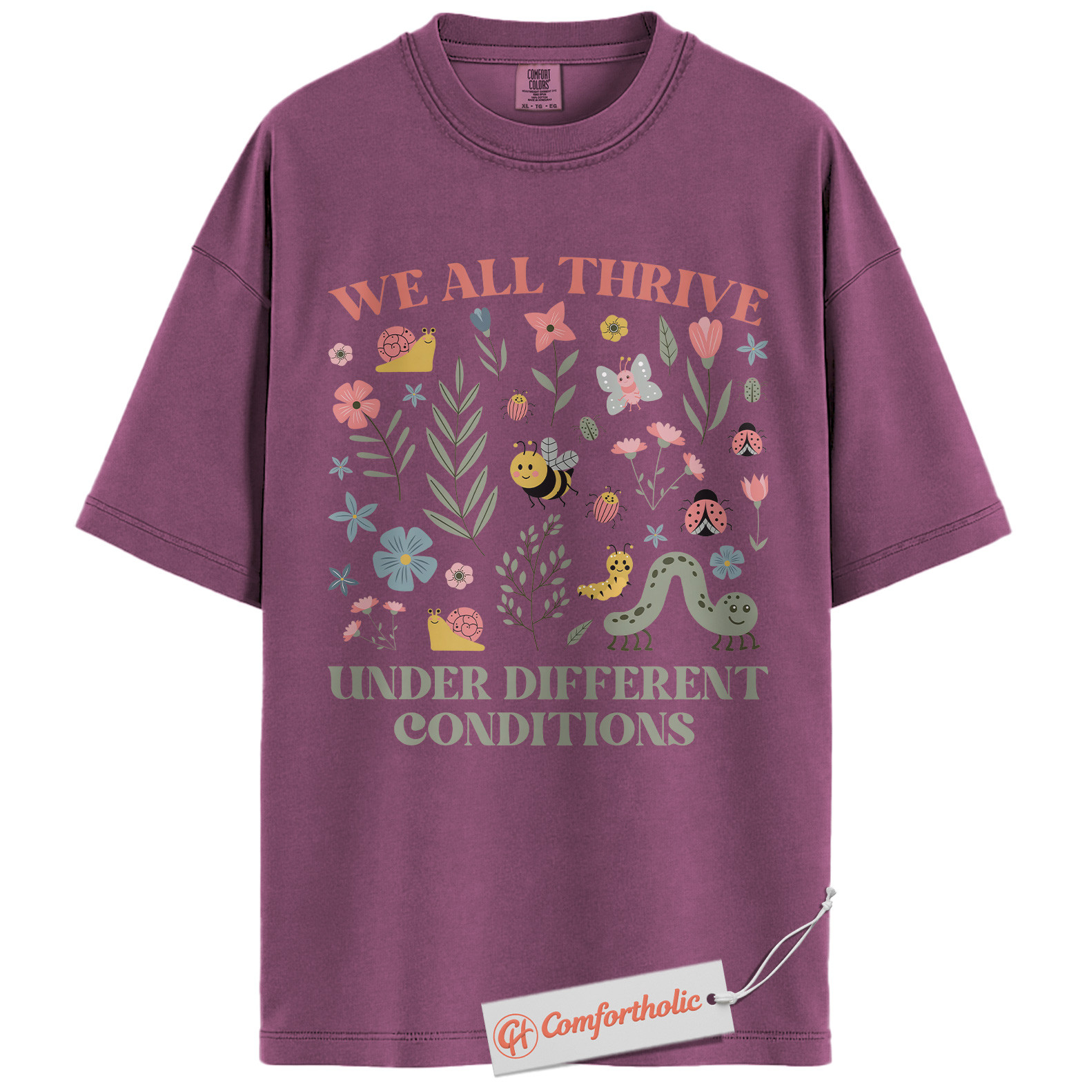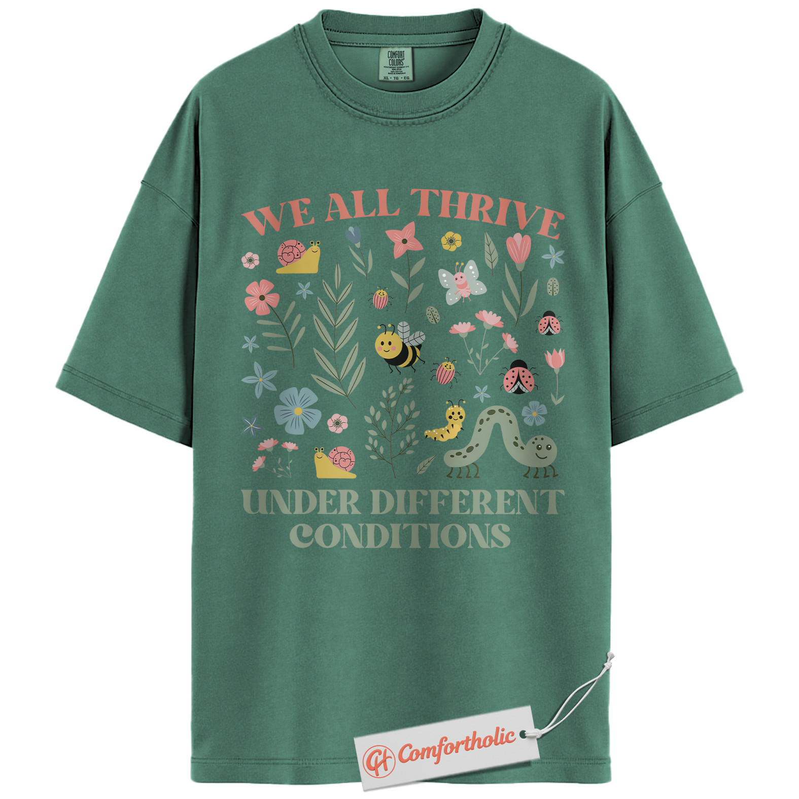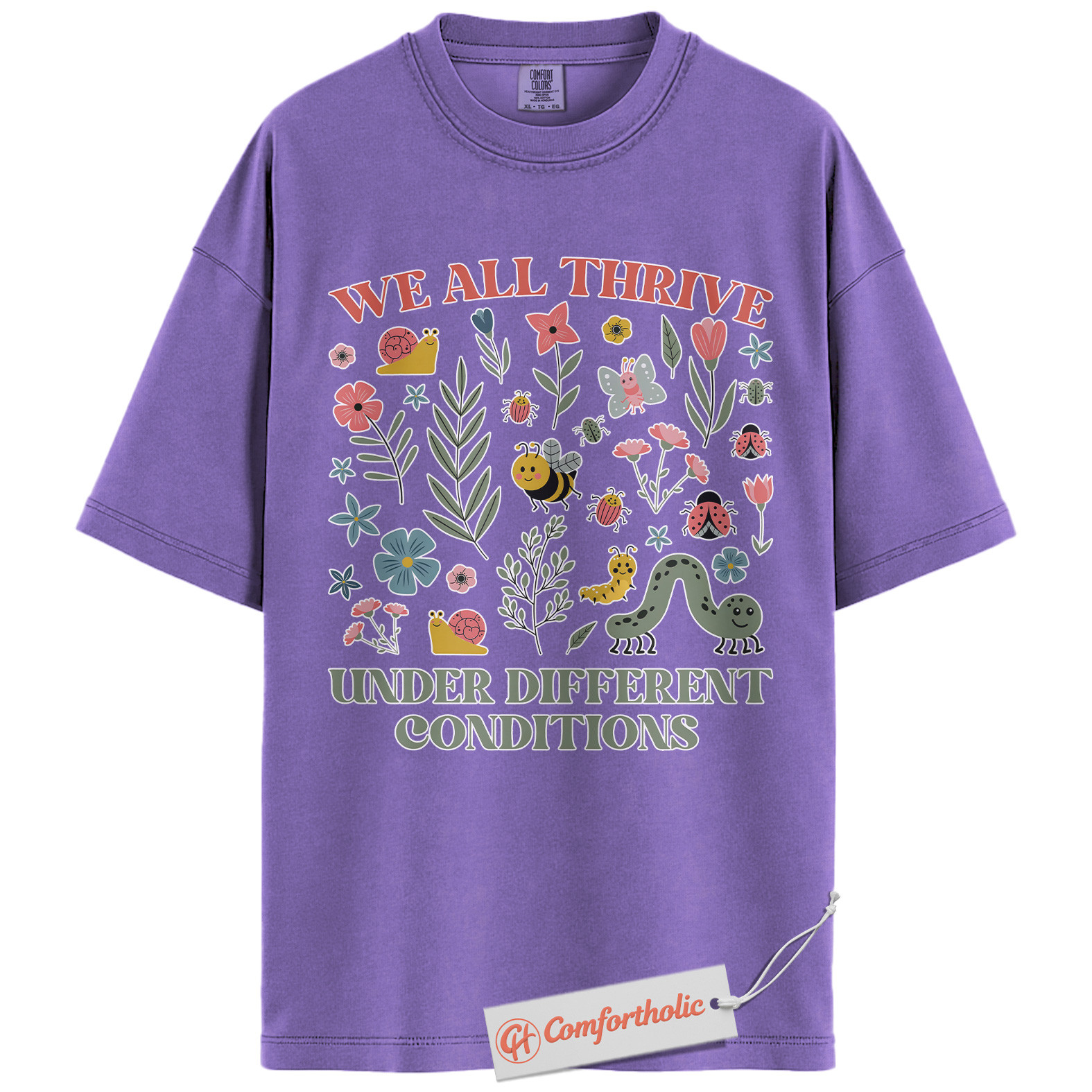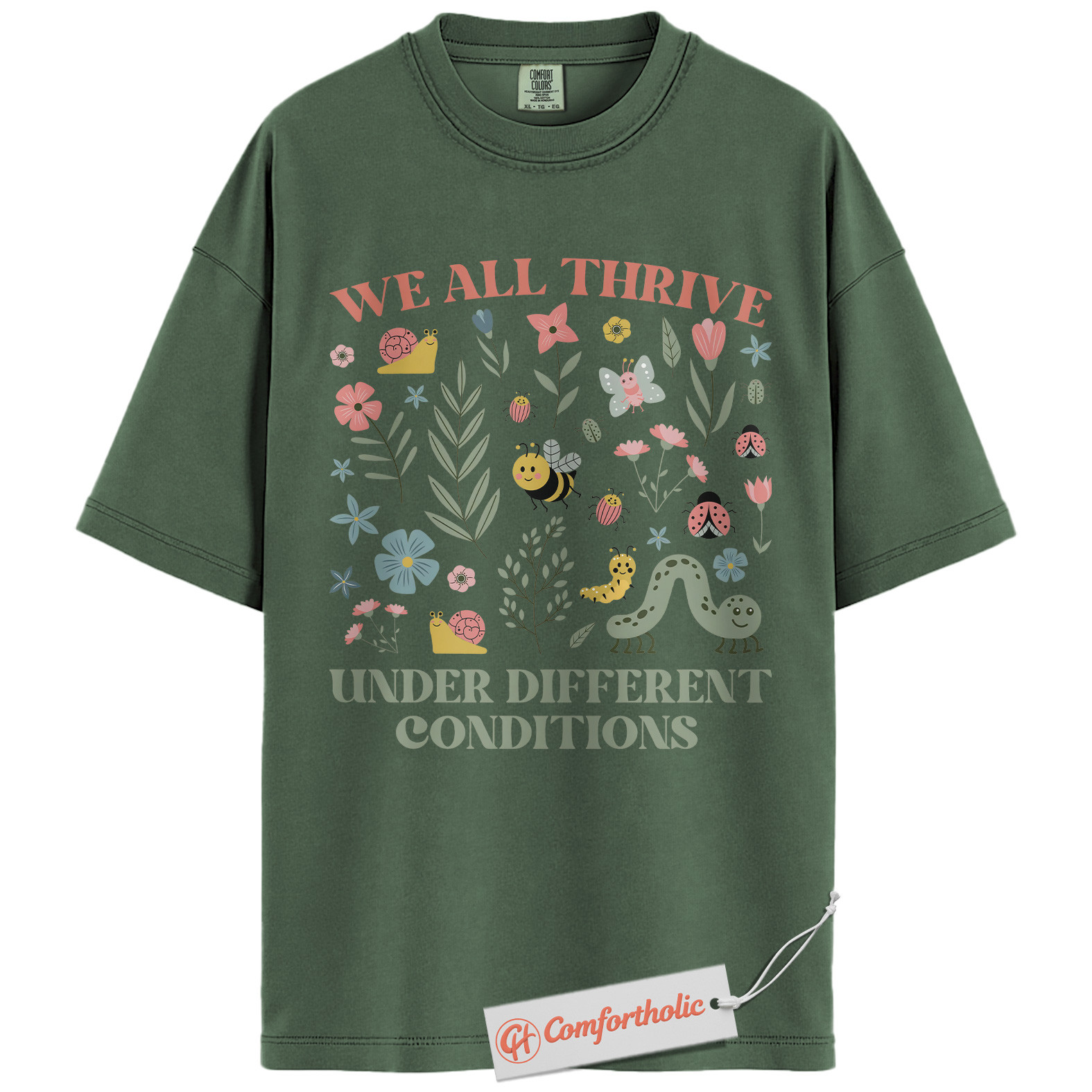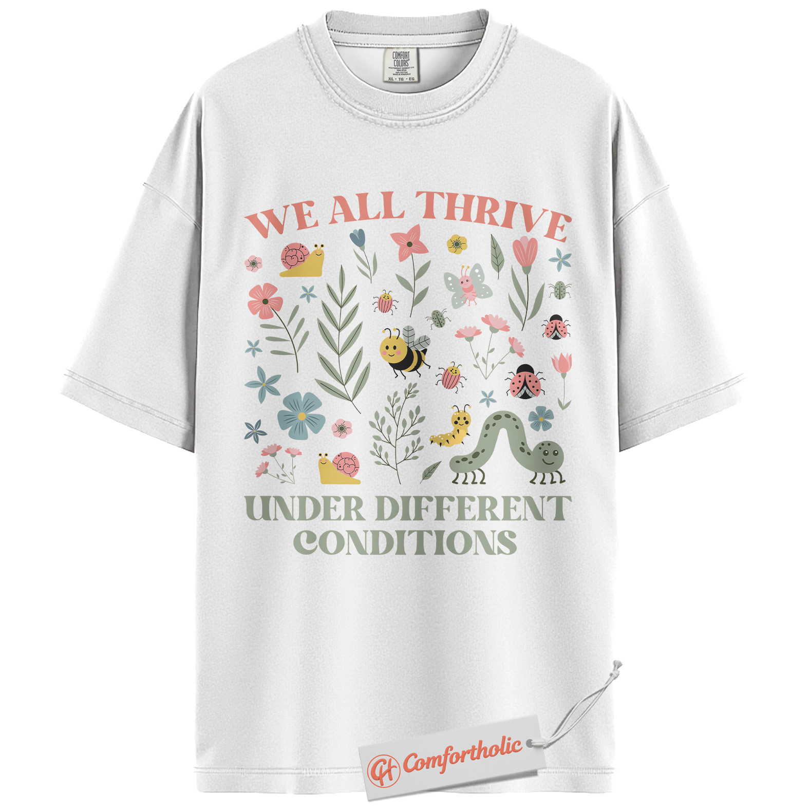 We All Thrive Shirt, Mental Health Awareness Shirt, Inclusive Garden Insects Shirt, Positive Affirmation Nature Tee, Comfort Colors T-Shirt