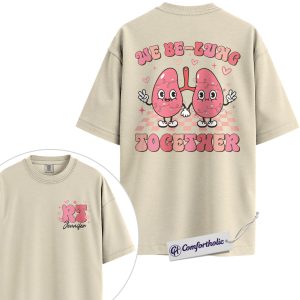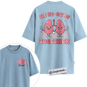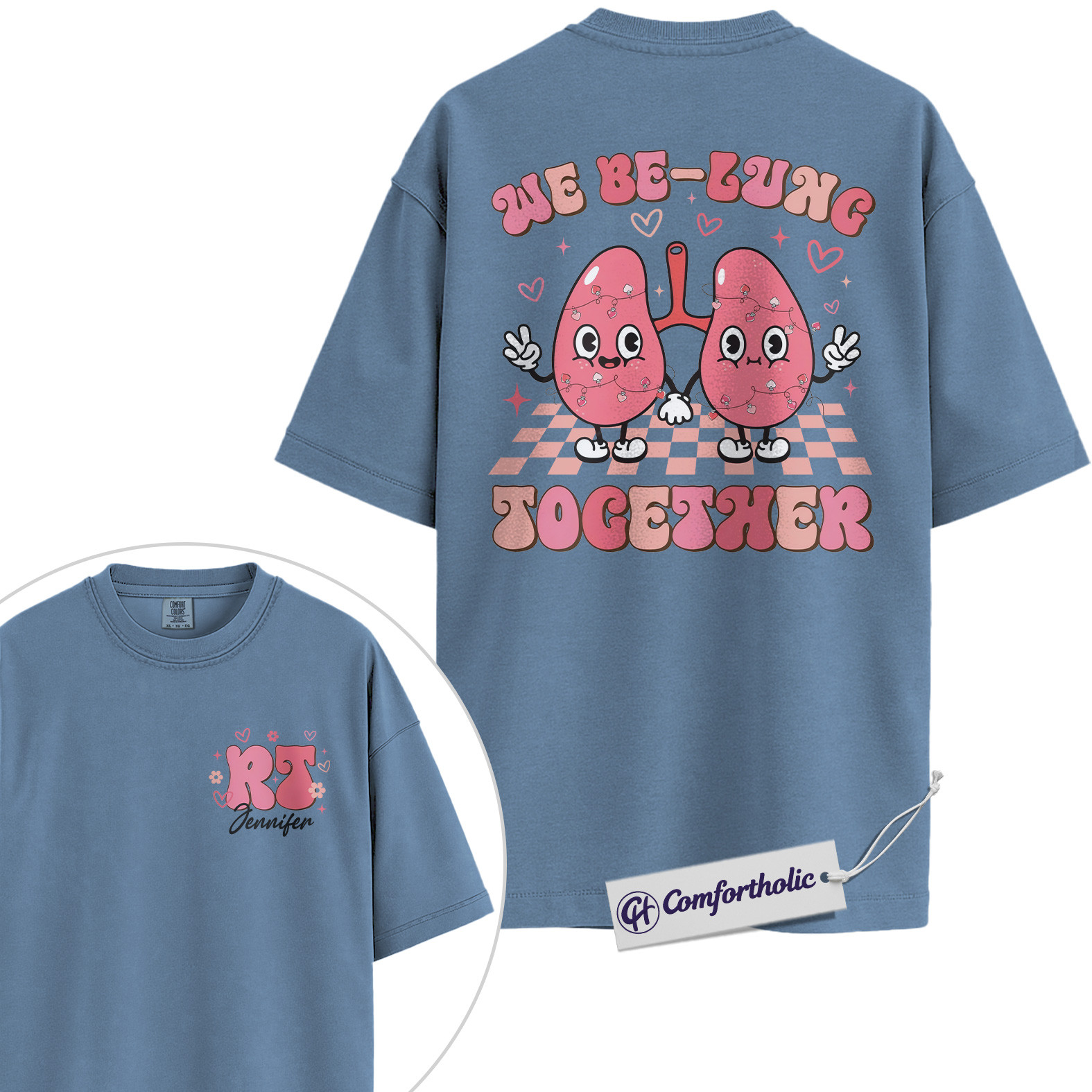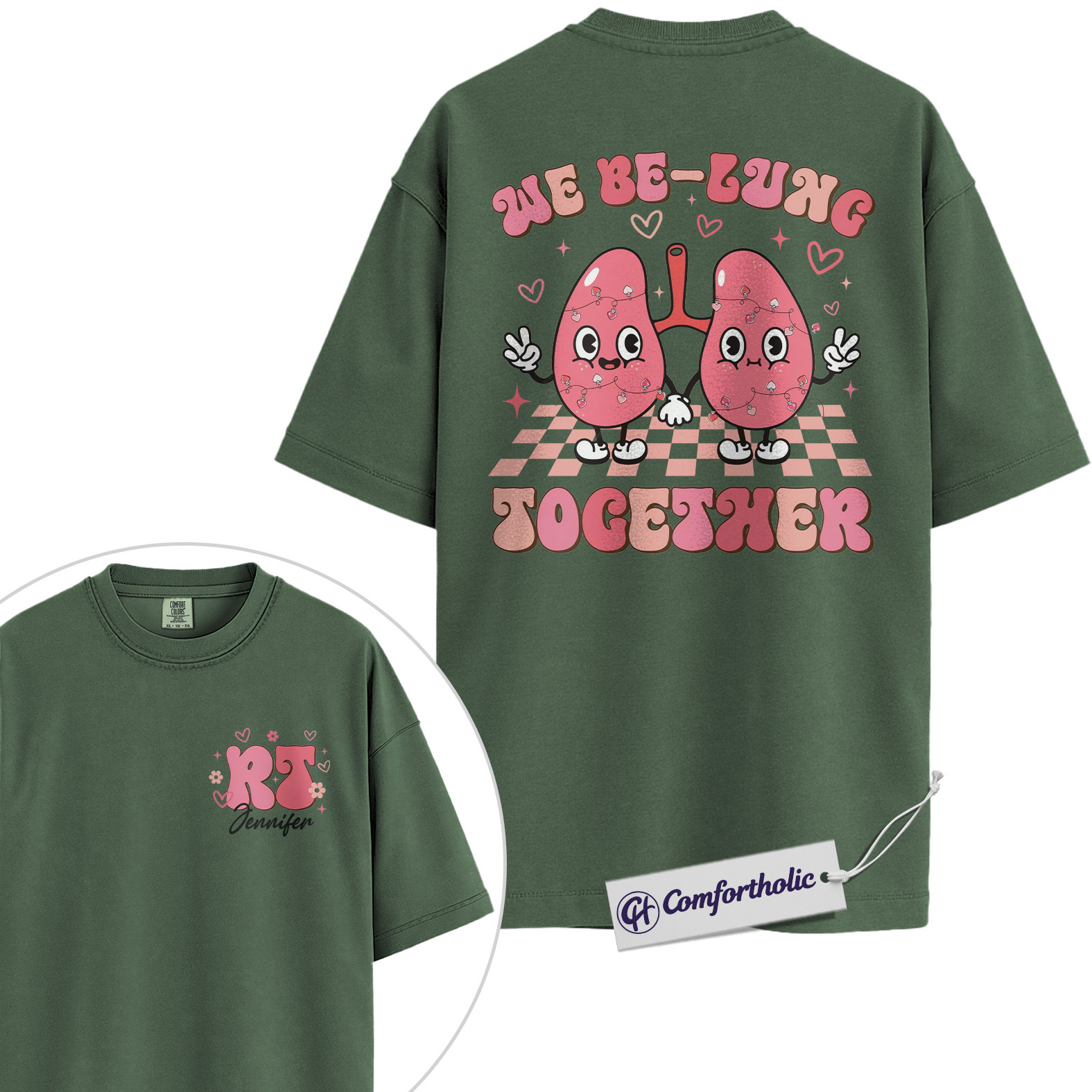 We Be-Lung Together Shirt, Personalized Respiratory Therapist T-Shirt, Custom Name Medical Valentine Graphic Tee, Cute Healthcare Gift for RTs, Comfort Colors Shirt 2-Sided