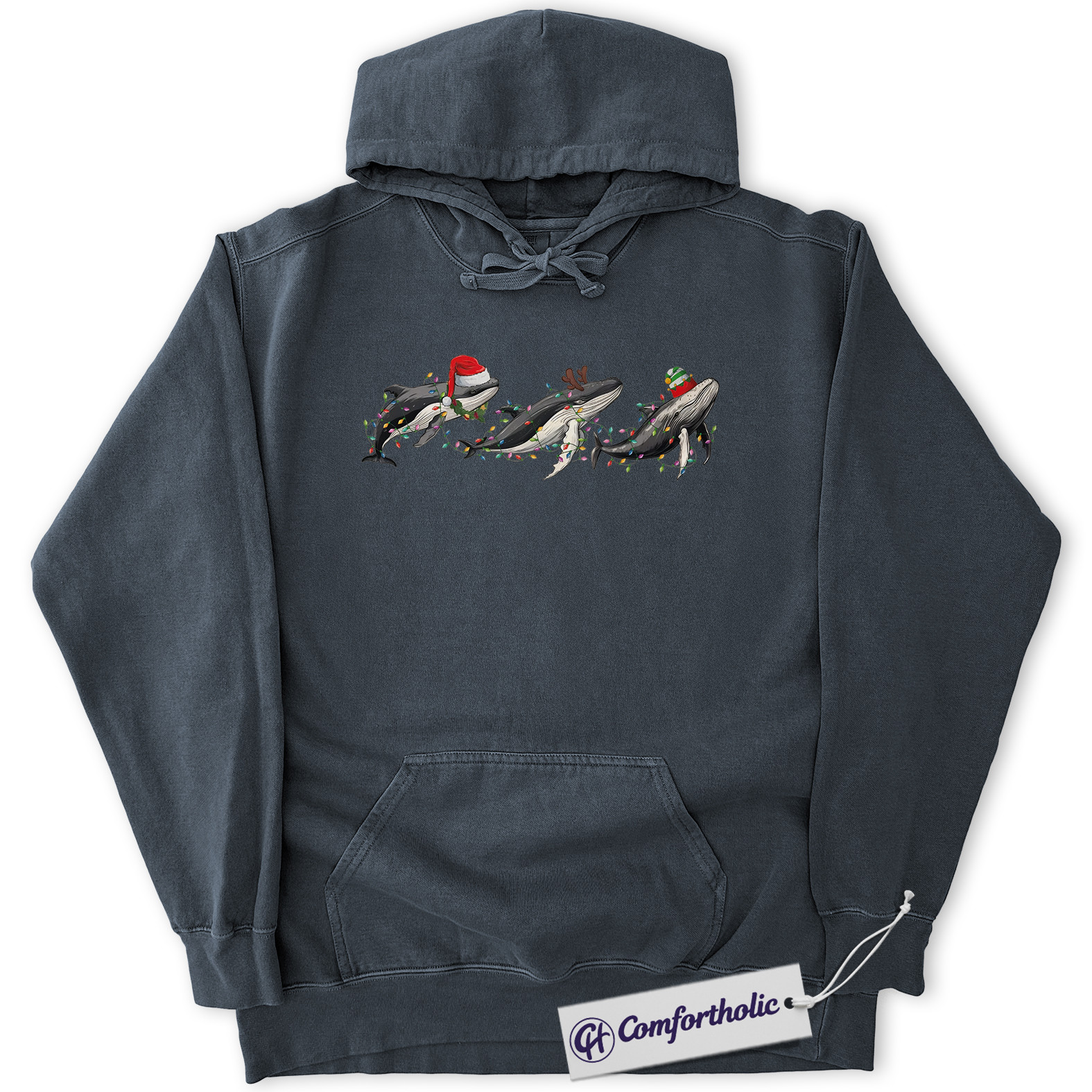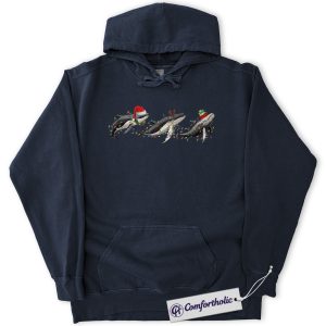 Whale Christmas Hoodie, Cute Sea Animal Holiday Hoodie, Festive Ocean Lover Graphic Pullover, Marine Animal Christmas Gift, Christmas Comfort Colors Hoodie