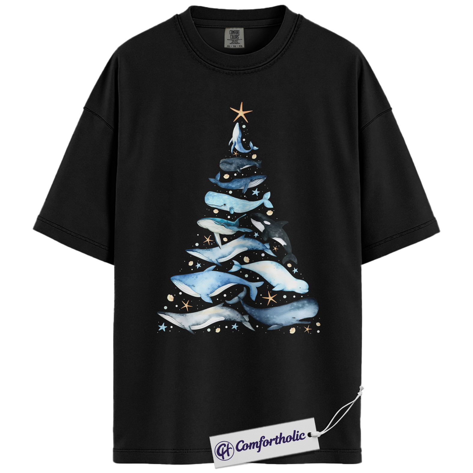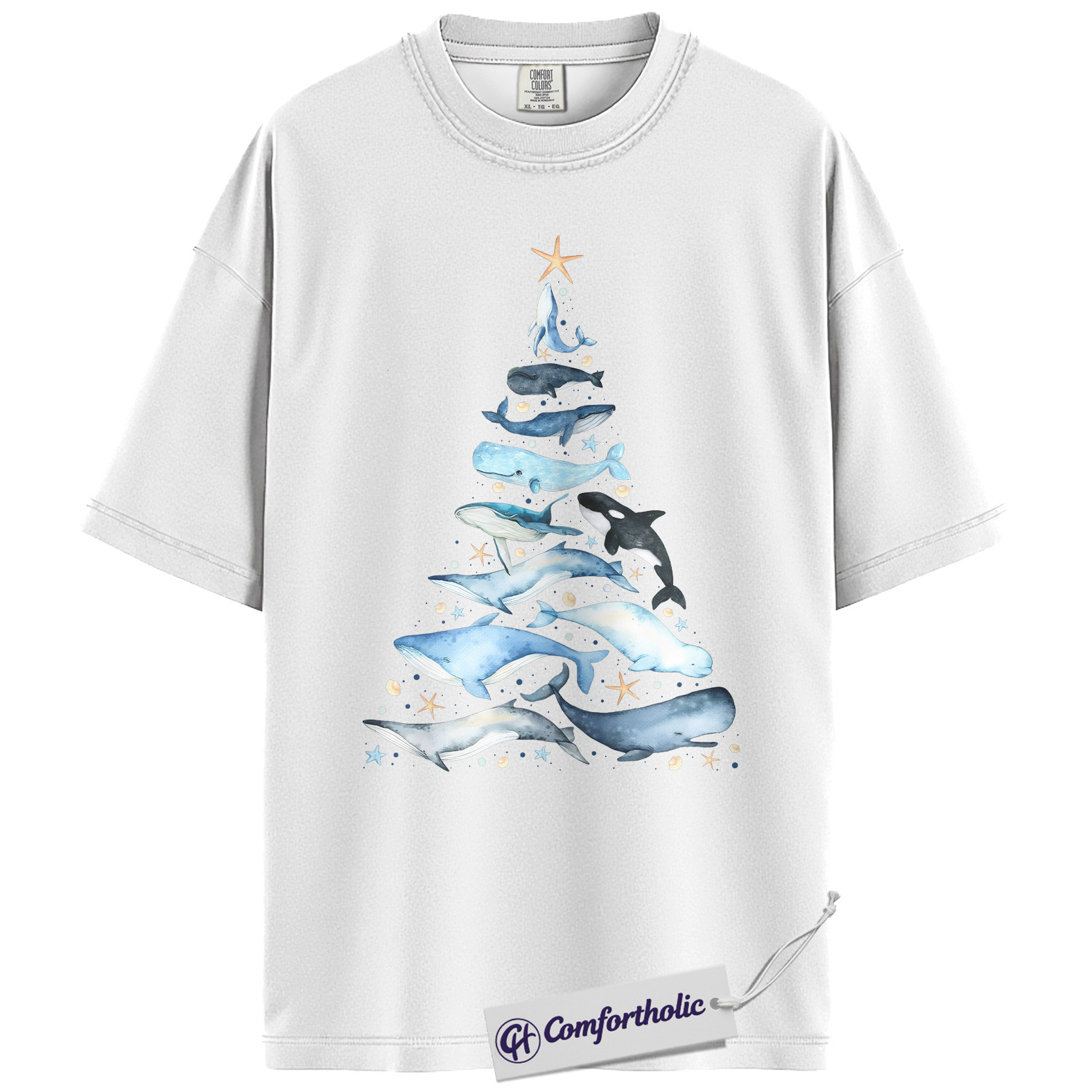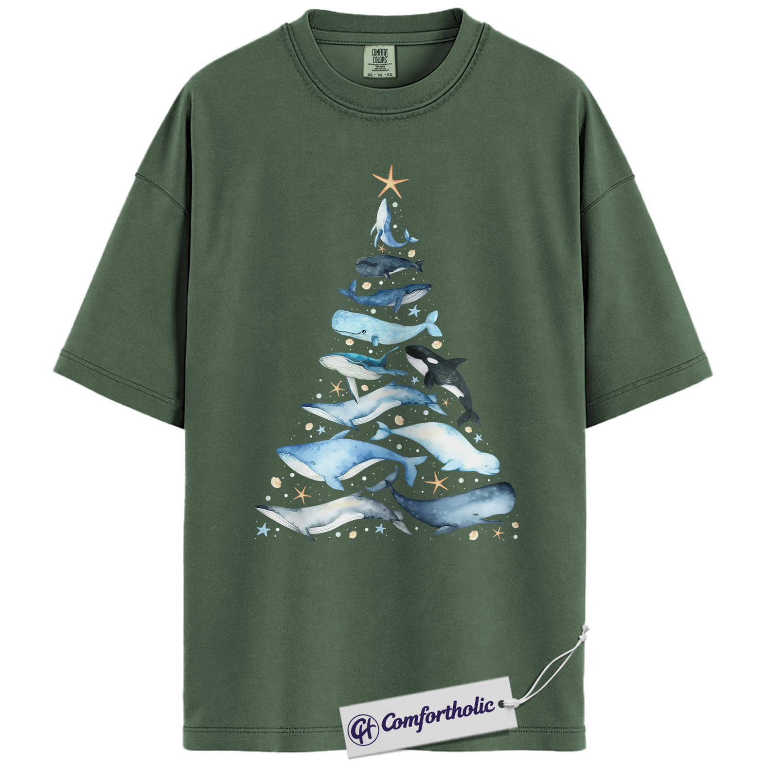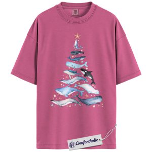 Whale Christmas Tree Shirt, Ocean Lover Holiday T-Shirt, Marine Animal Graphic Tee, Christmas Gift for Nature Lovers, Sea Life Comfort Colors Shirt