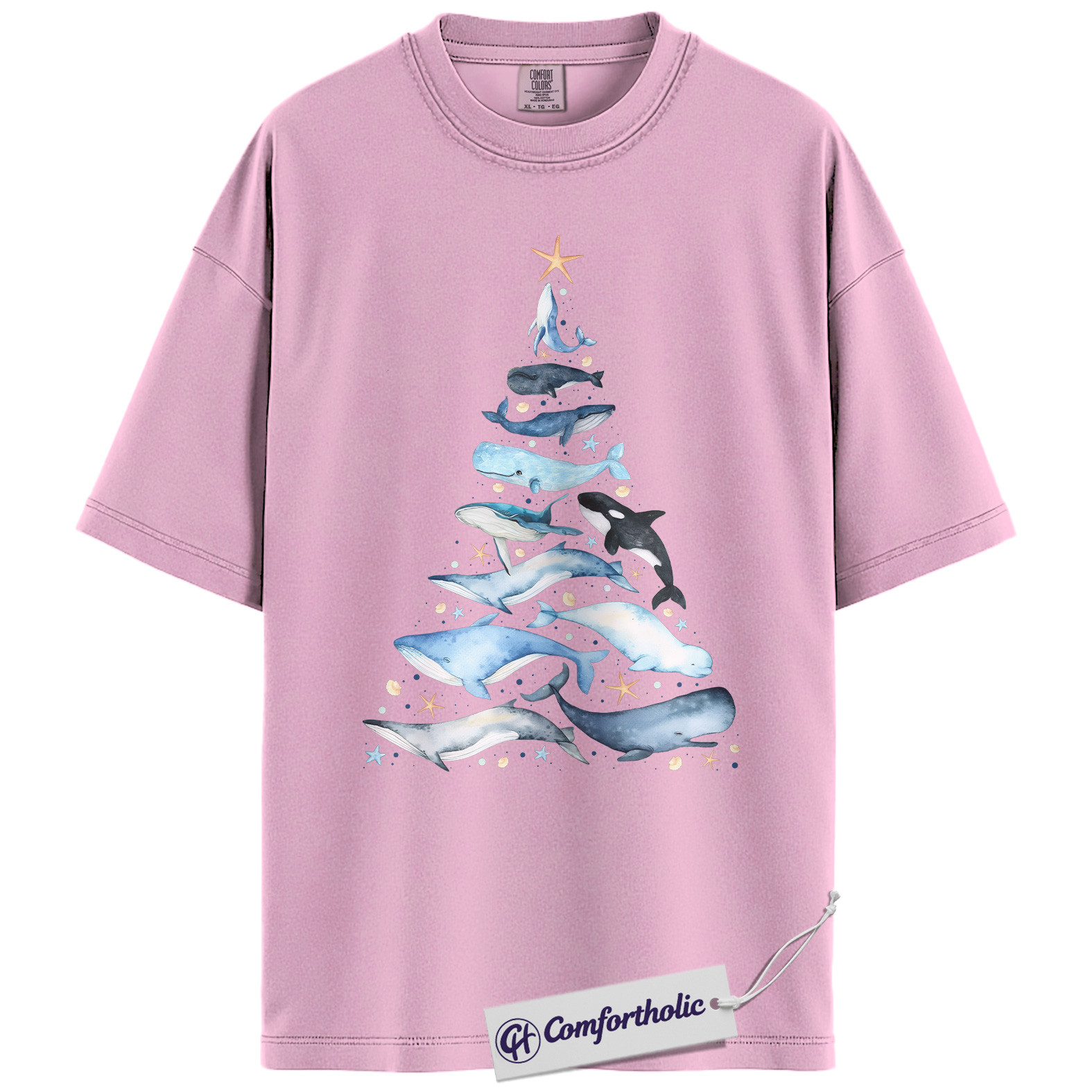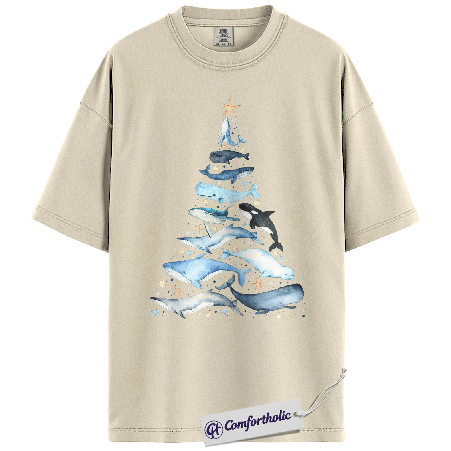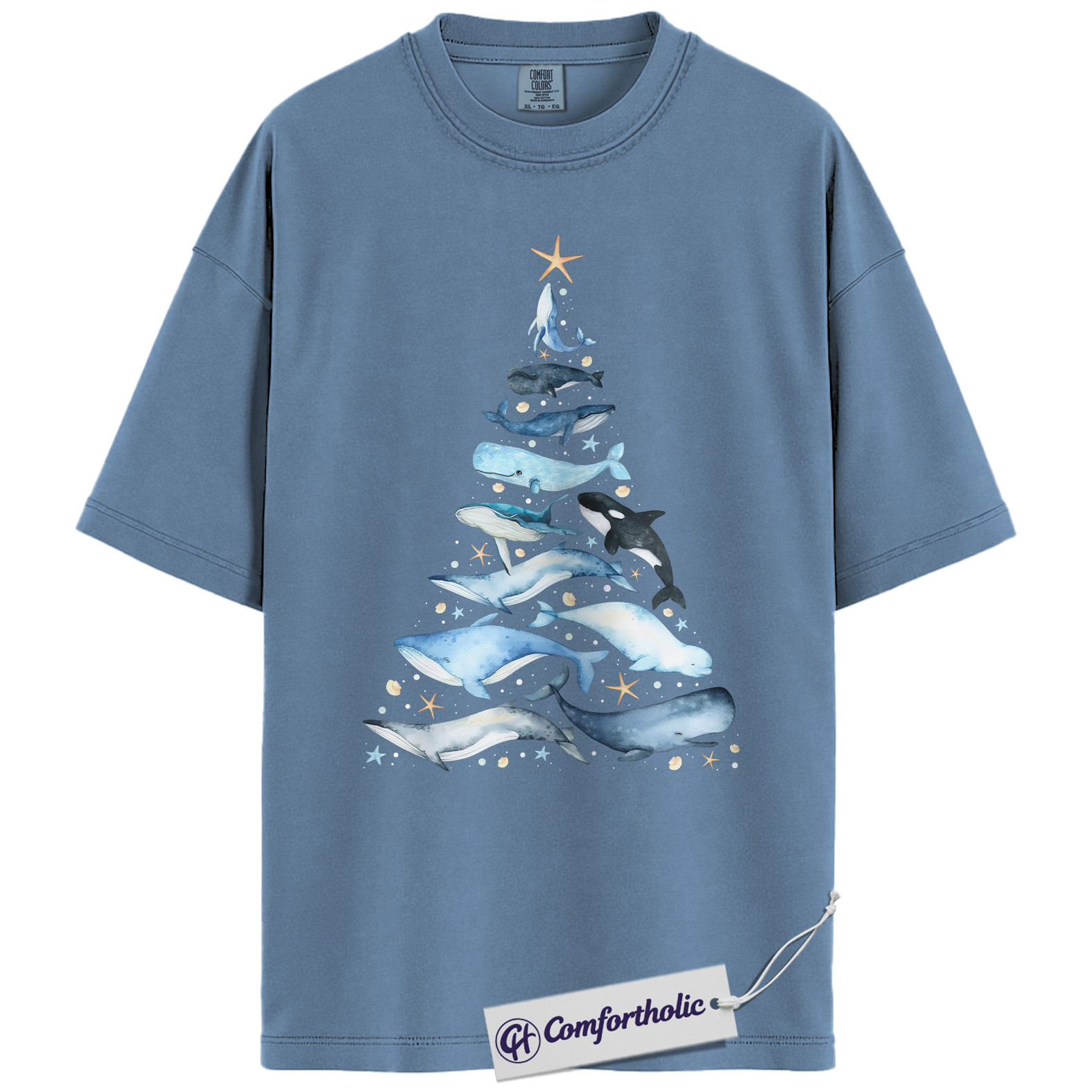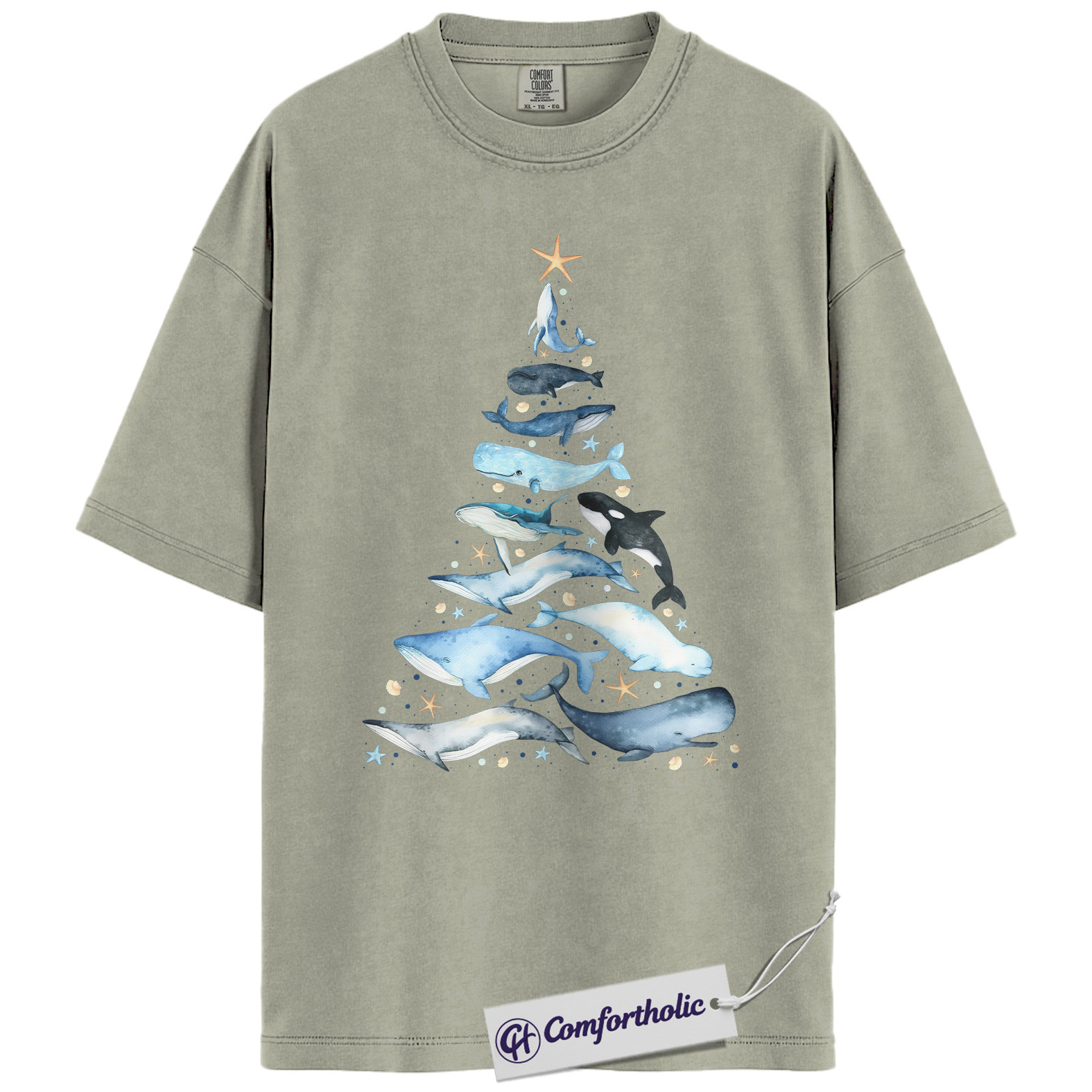 Whale Christmas Tree Shirt, Ocean Lover Holiday T-Shirt, Marine Animal Graphic Tee, Christmas Gift for Nature Lovers, Sea Life Comfort Colors Shirt