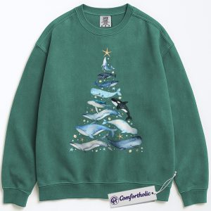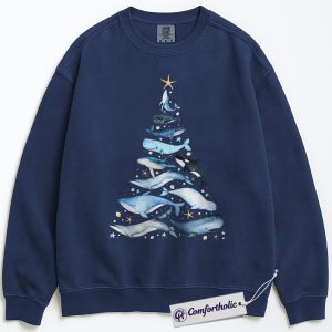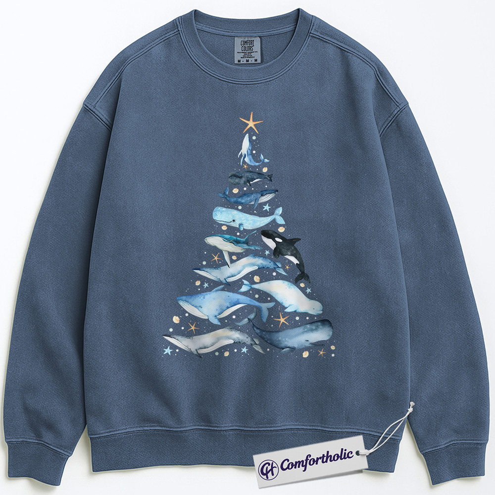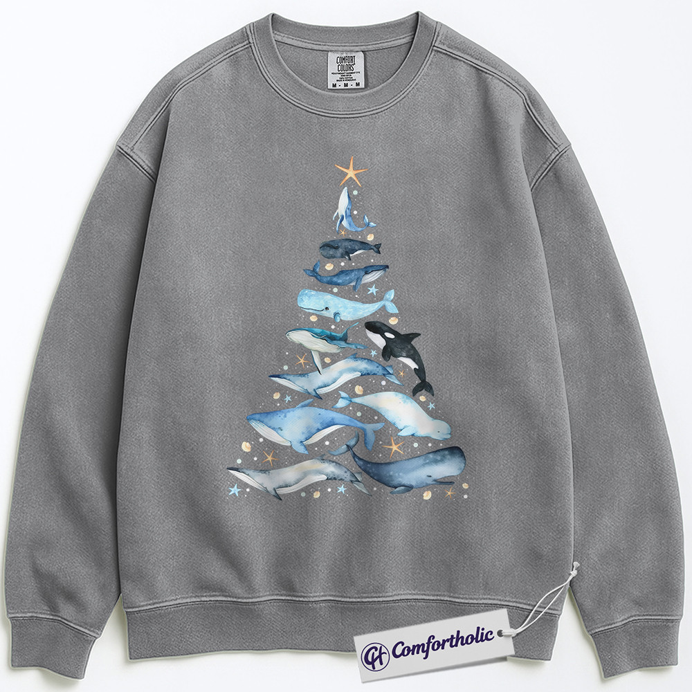 Whale Christmas Tree Sweatshirt, Ocean Lover Holiday Pullover, Marine Animal Graphic Sweatshirt, Sea Life Christmas Gift for Nature Lovers, Christmas Comfort Colors Sweatshirt