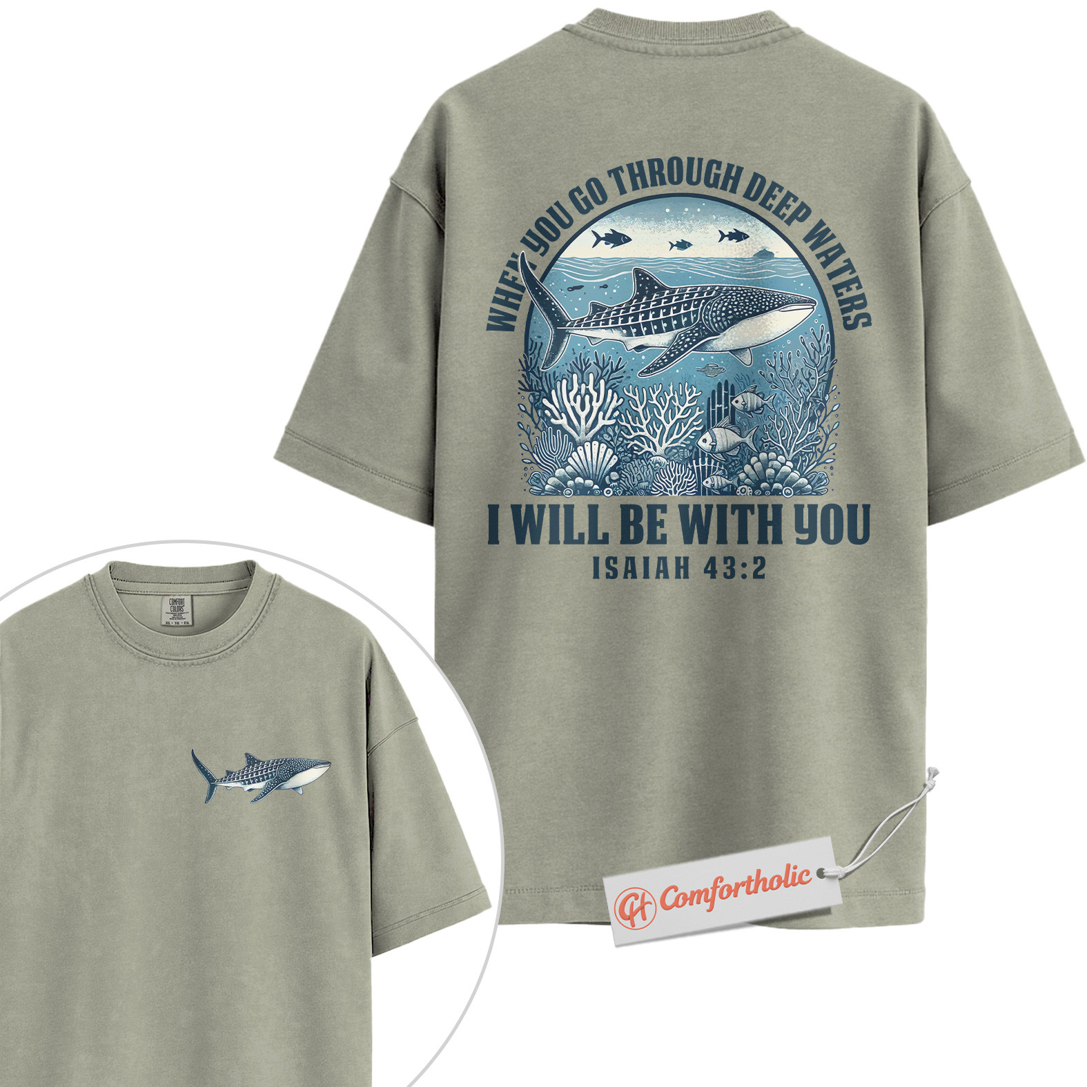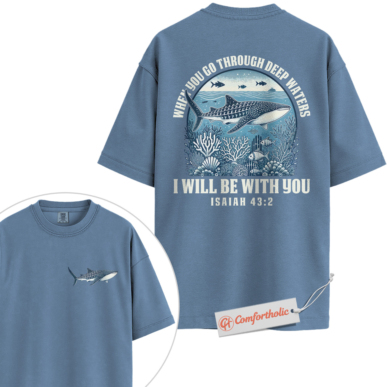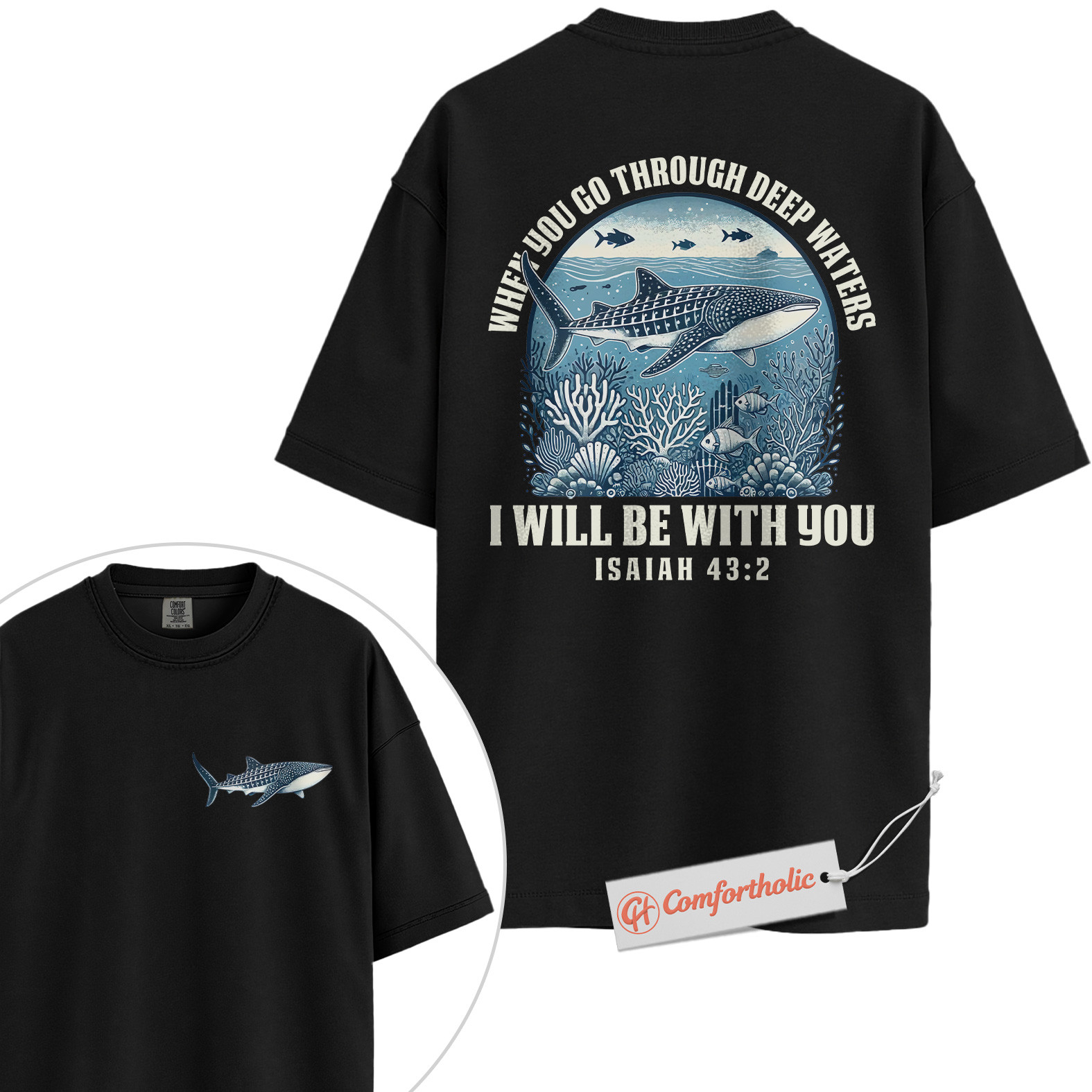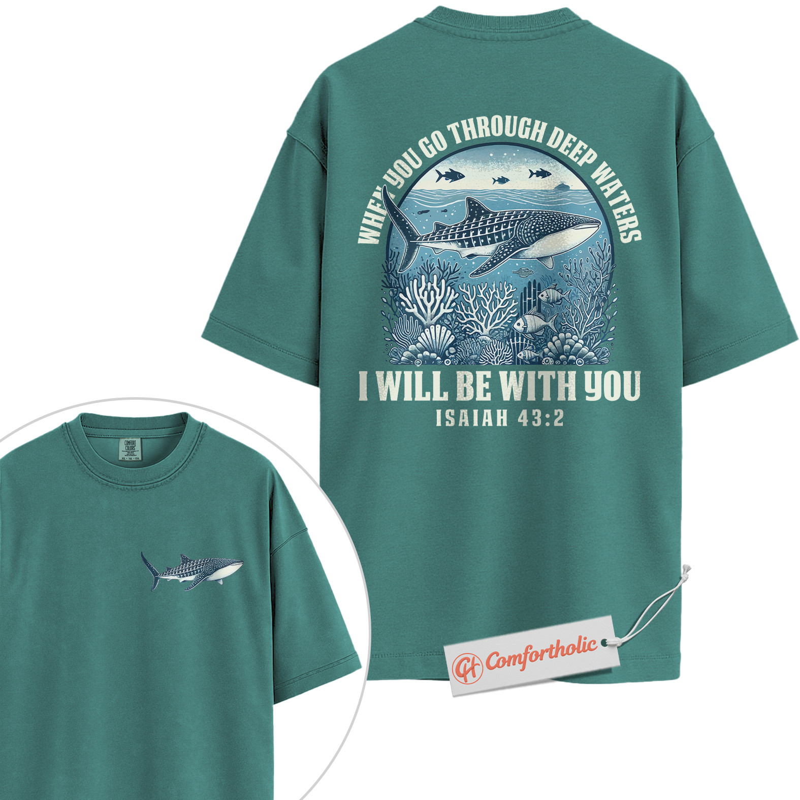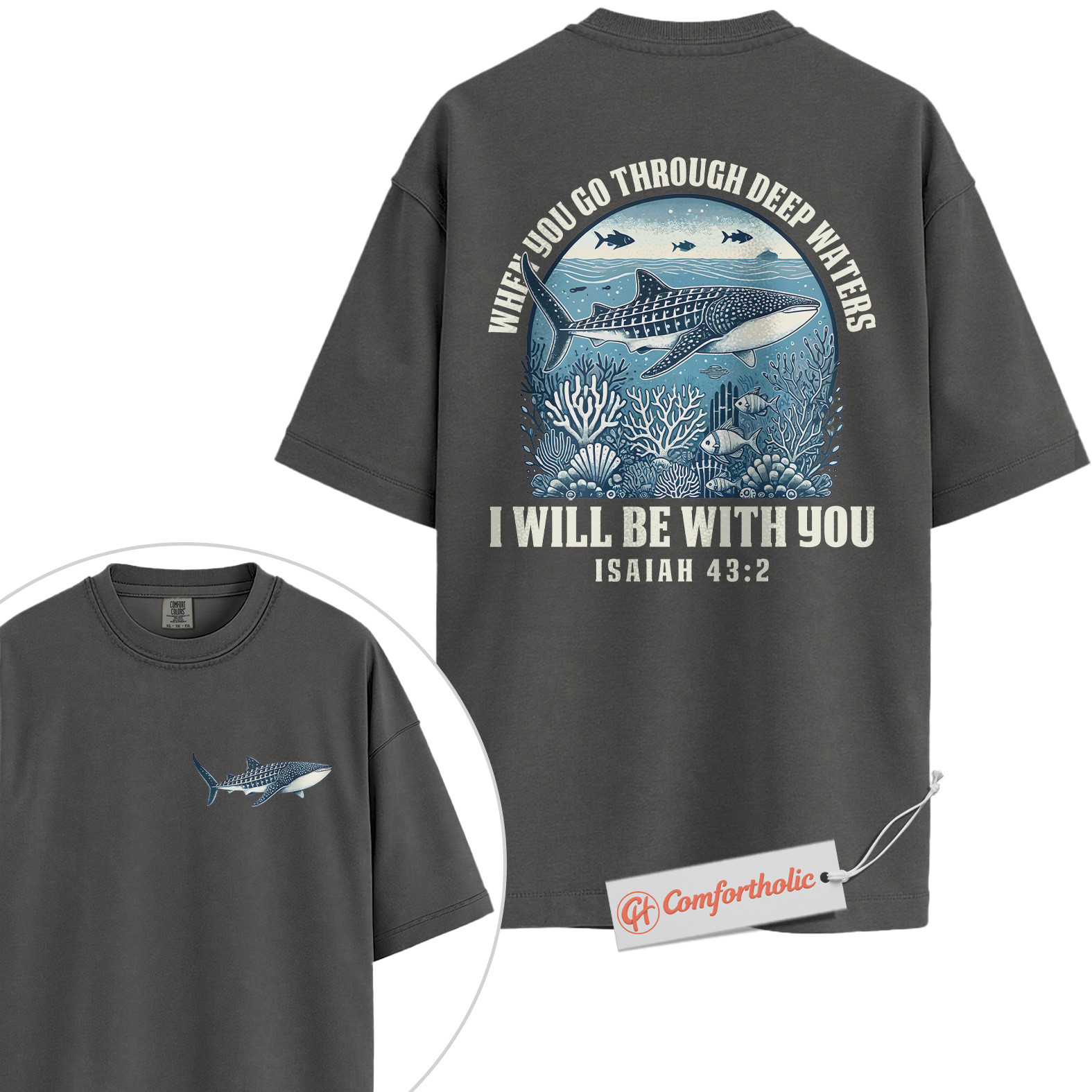 When You Go Through Deep Waters Shirt, Isaiah 43:2 Bible Verse Shirt, Christian Shirt, Whale Shark Shirt, Faith-Based Ocean Shirt, God Is With You Comfort Colors Shirt 2-Sided