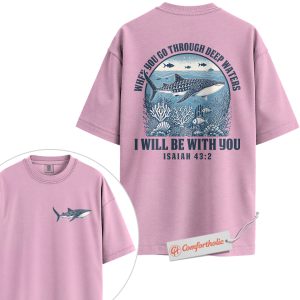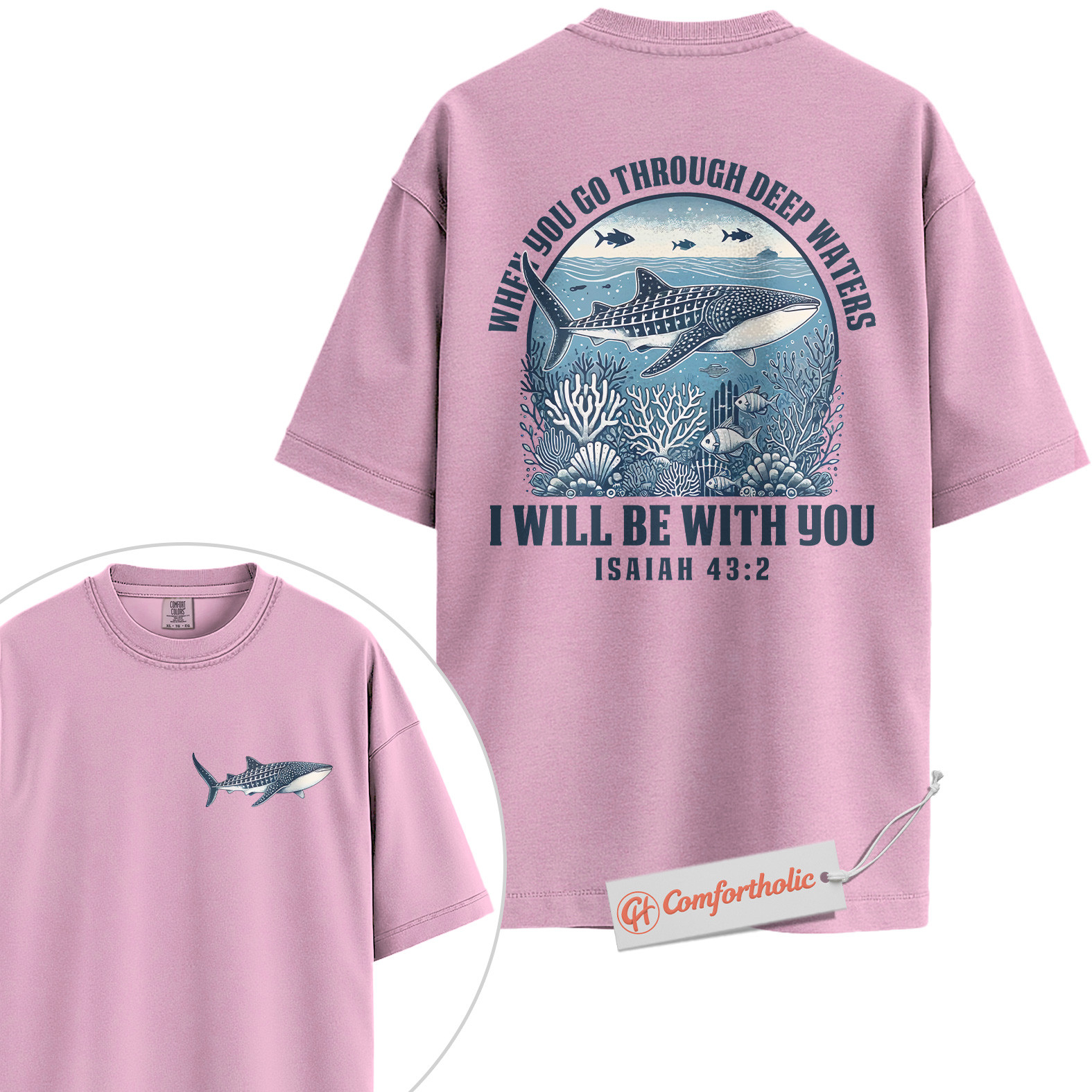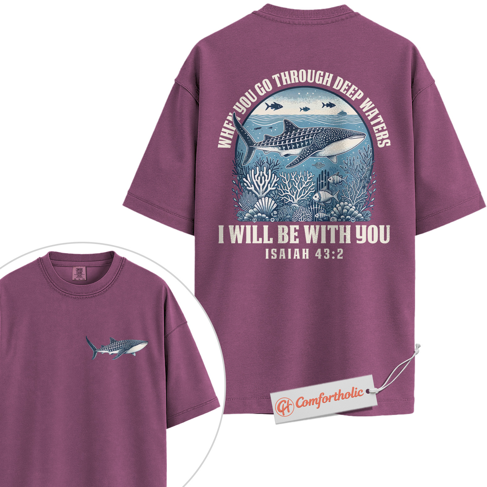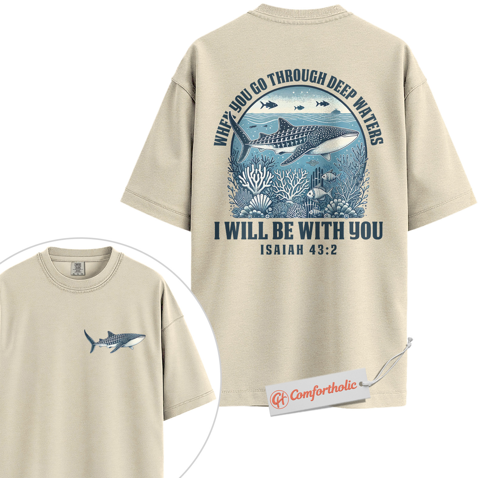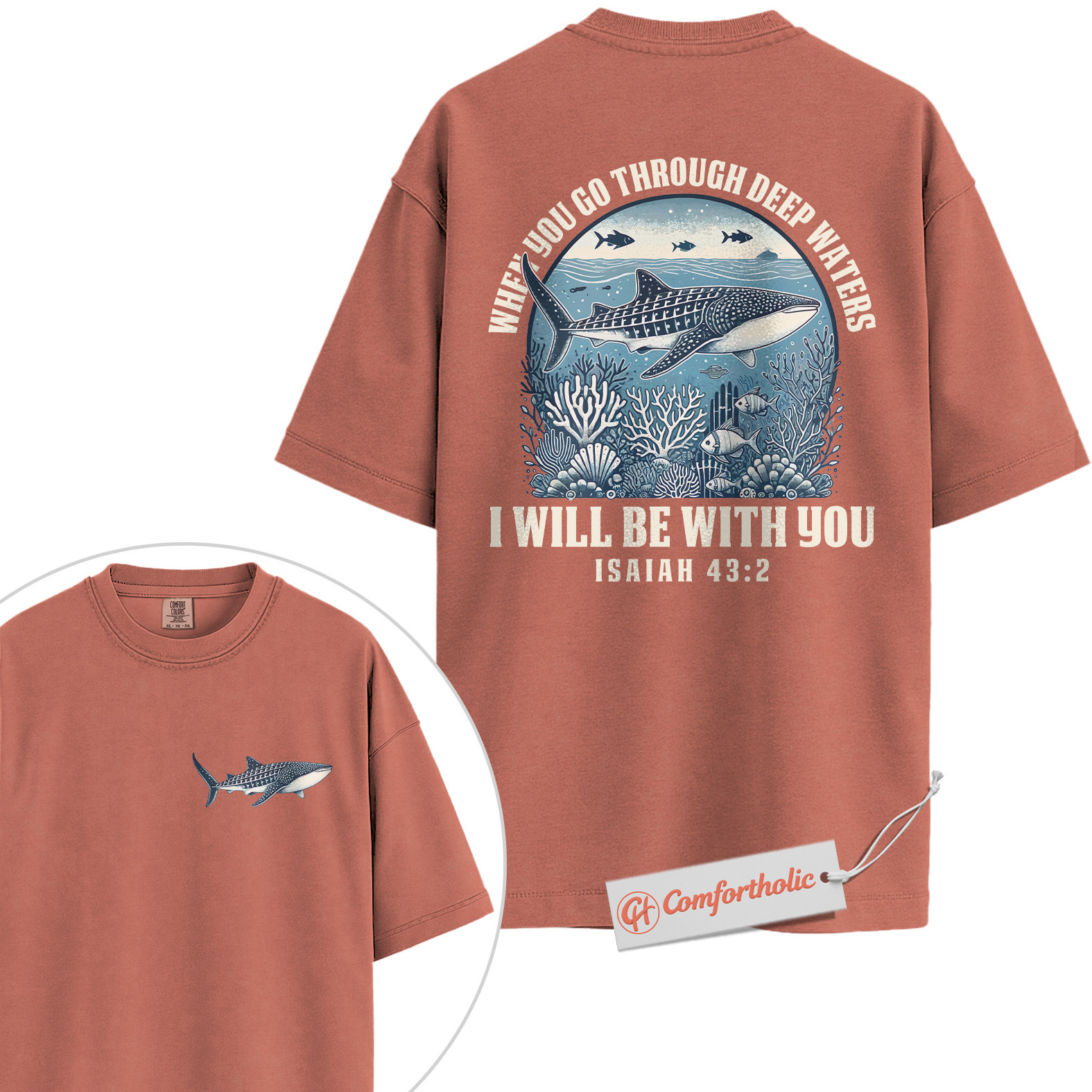 When You Go Through Deep Waters Shirt, Isaiah 43:2 Bible Verse Shirt, Christian Shirt, Whale Shark Shirt, Faith-Based Ocean Shirt, God Is With You Comfort Colors Shirt 2-Sided