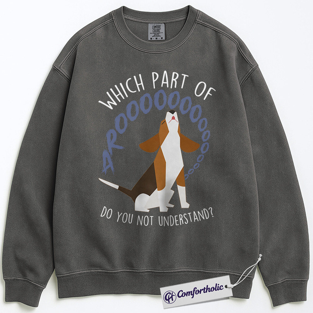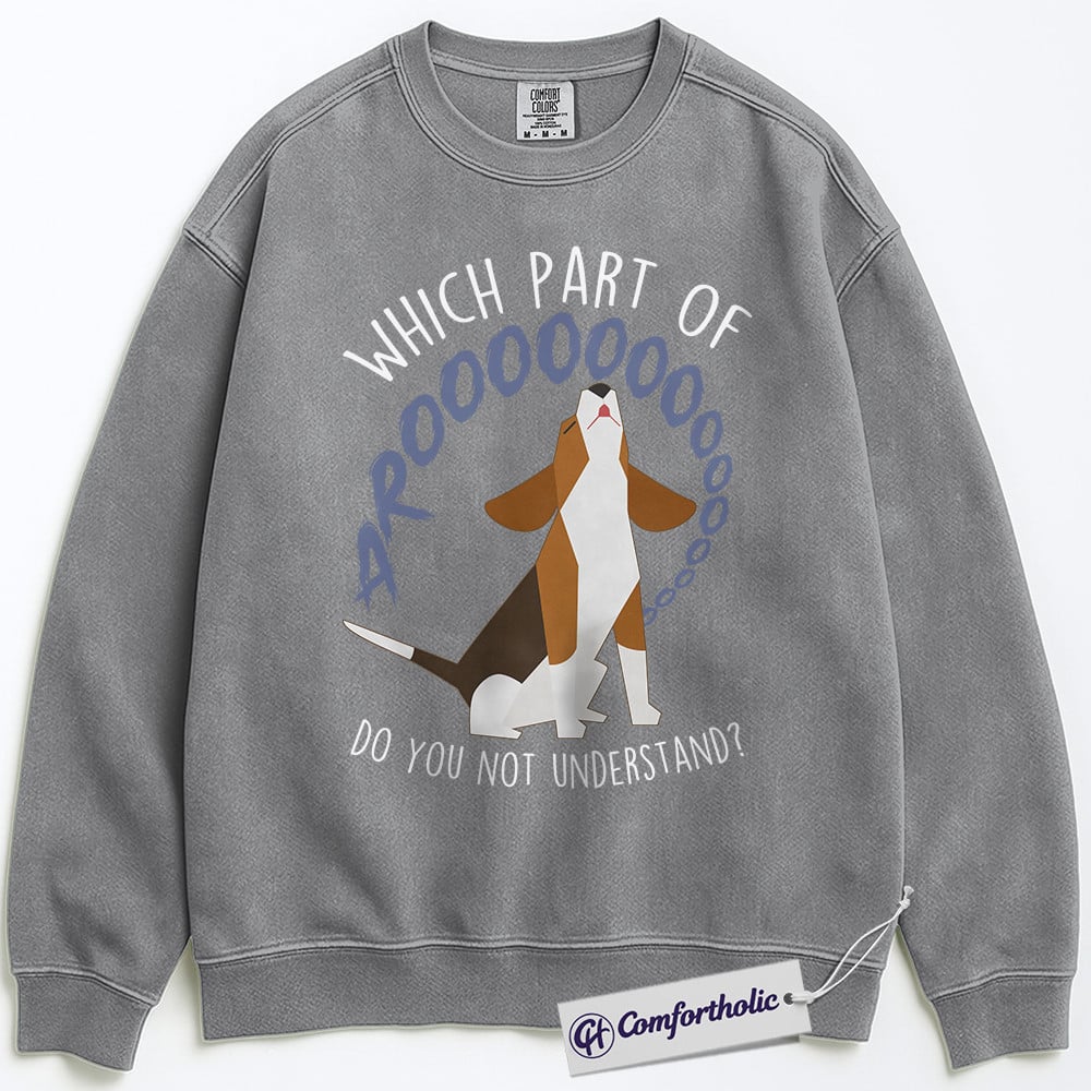 Which Part of Arooo Sweatshirt, Funny Howling Beagle Pullover, Cute Puppy Graphic Crewneck, Humorous Gift for Dog Lovers, Comfort Colors Sweatshirt