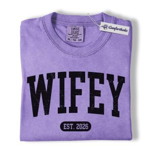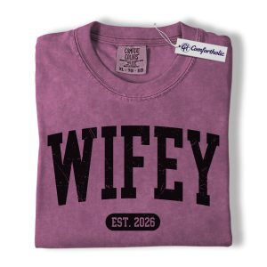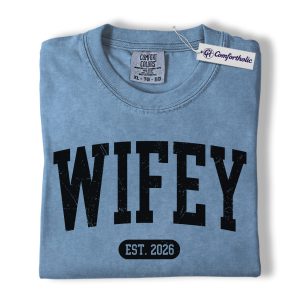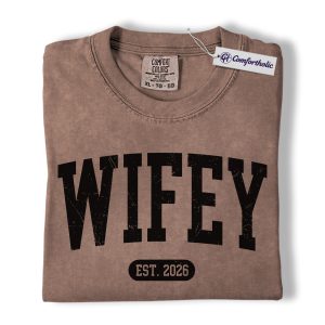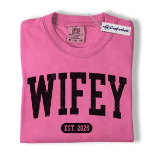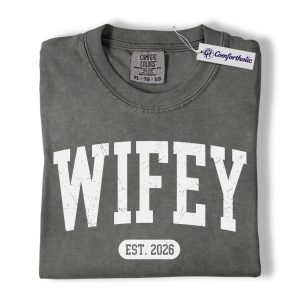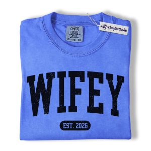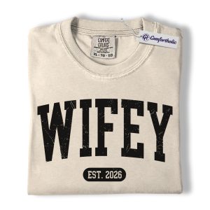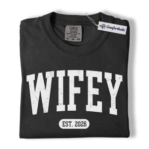 Wifey Shirt, Custom EST Year Newlywed Graphic Tee, Bride To Be Wedding T-Shirt for Wives, Engagement Anniversary Gift, Comfort Colors Shirt