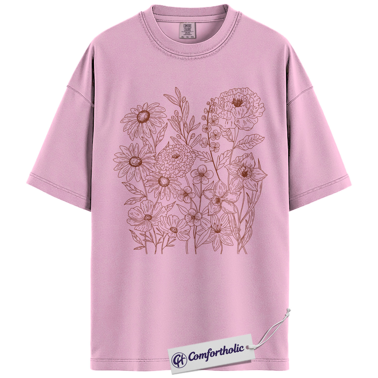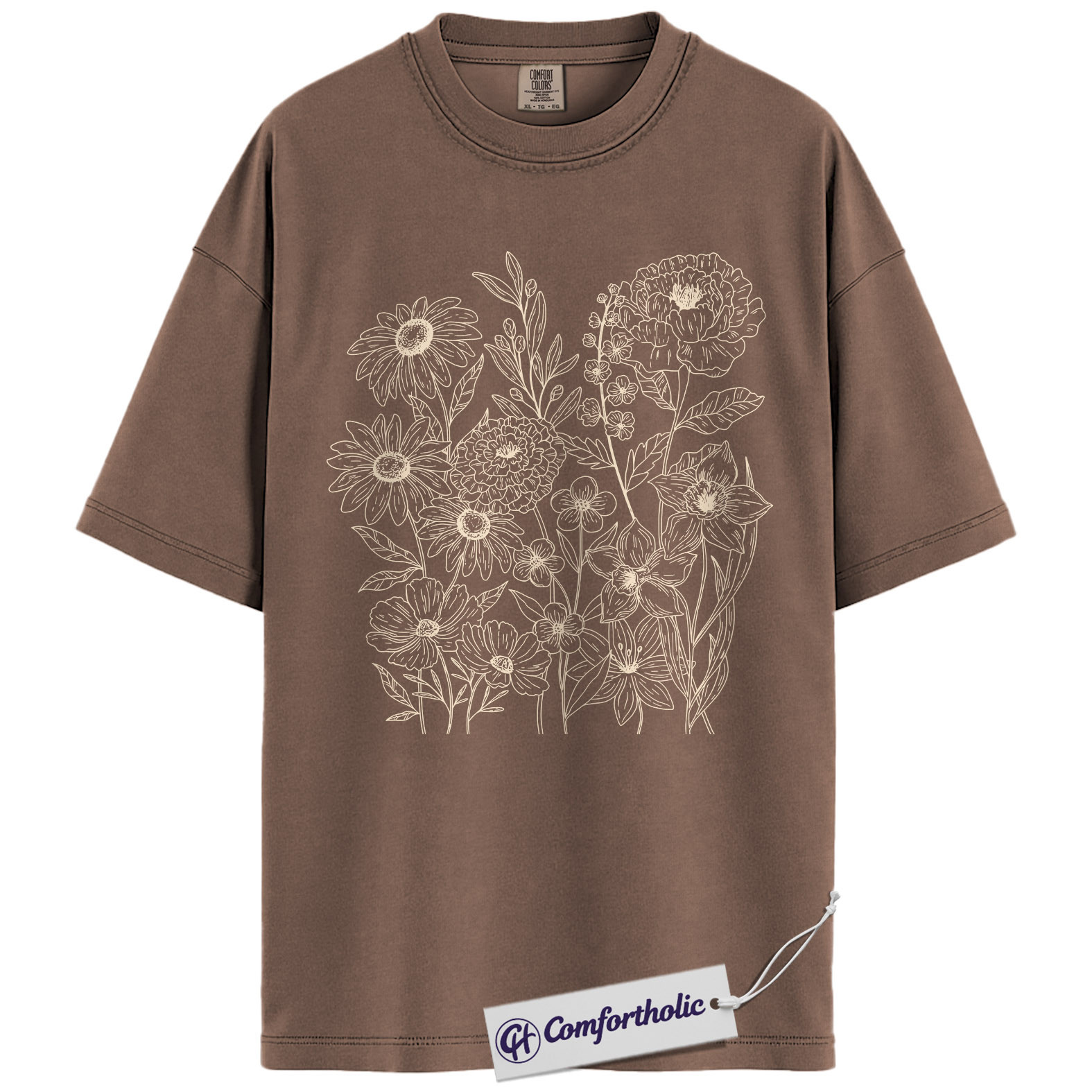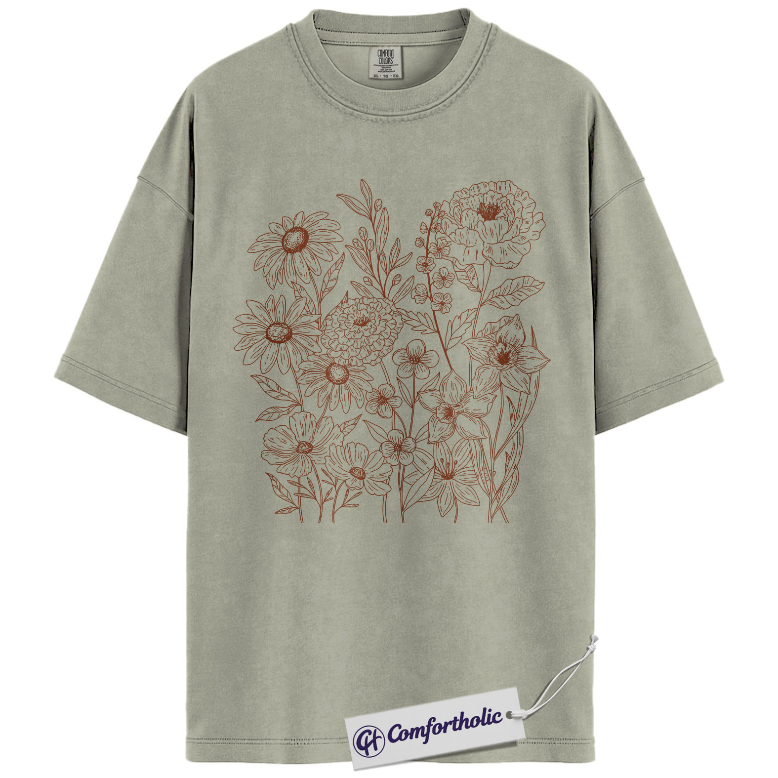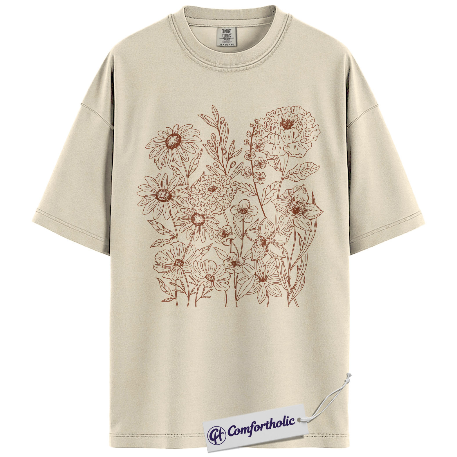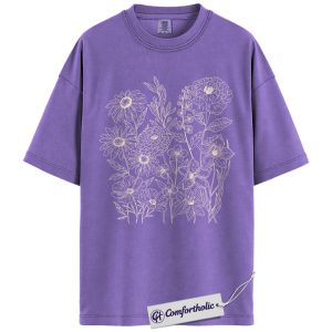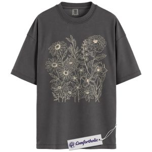 Wildflower Bouquet Shirt, Minimalist Line Art Graphic Tee, Botanical Floral Outline T-Shirt, Gift for Women & Flower Lovers, Comfort Colors Shirt