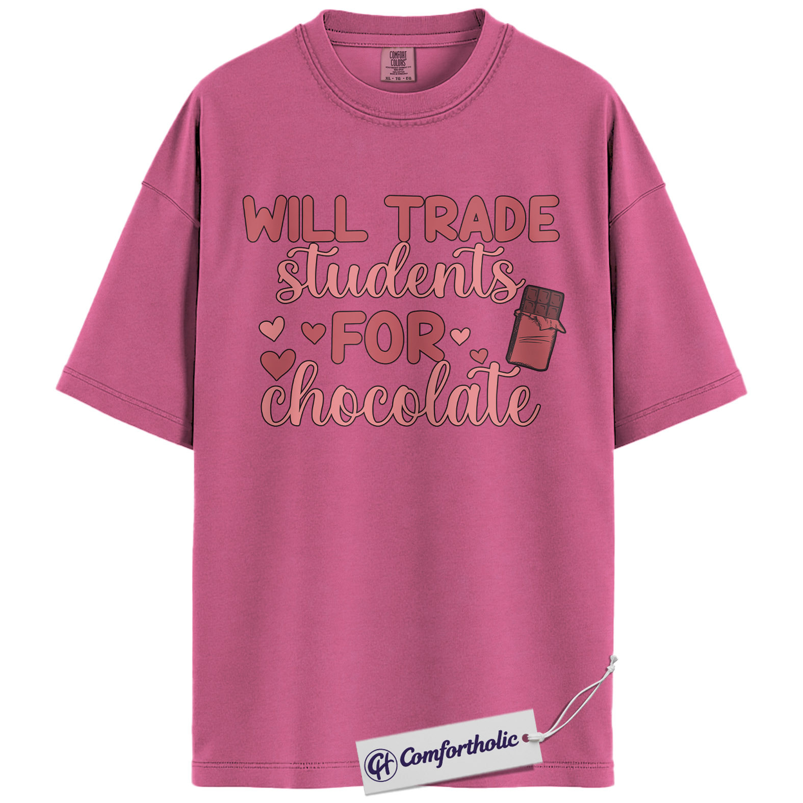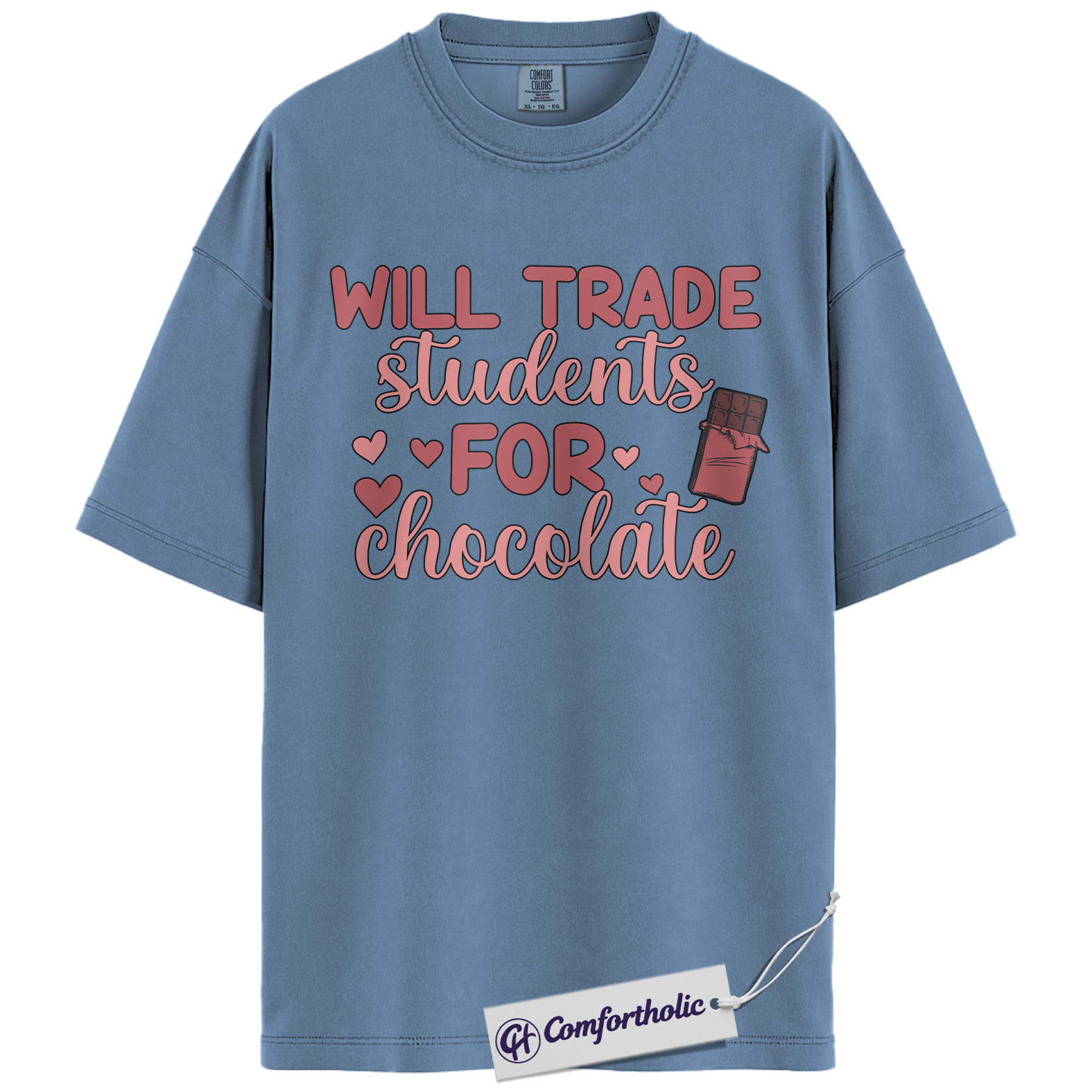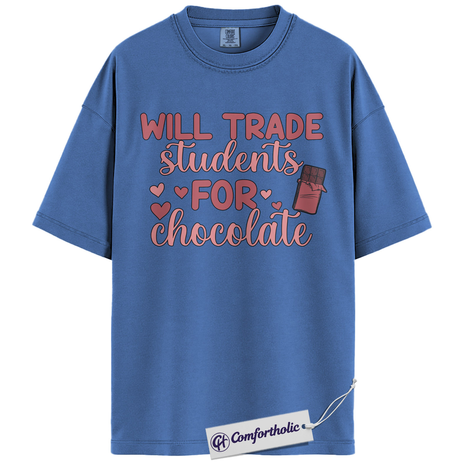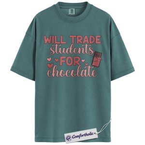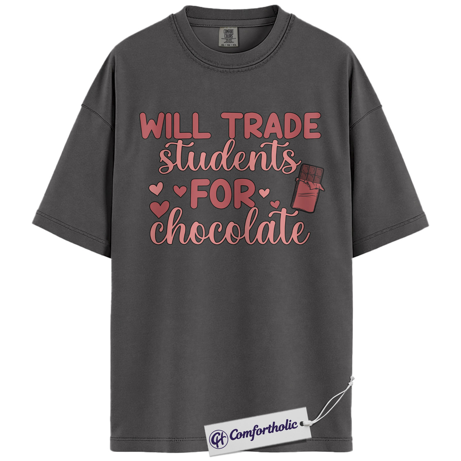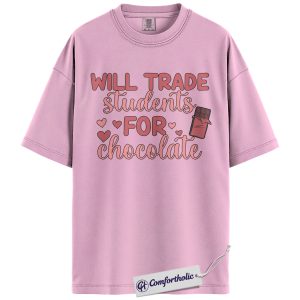 Will Trade Students For Chocolate Shirt, Funny Teacher Graphic Tee, Cute Teacher Humor T-Shirt, Valentine’s Day Gift for Teachers, Comfort Colors Shirt