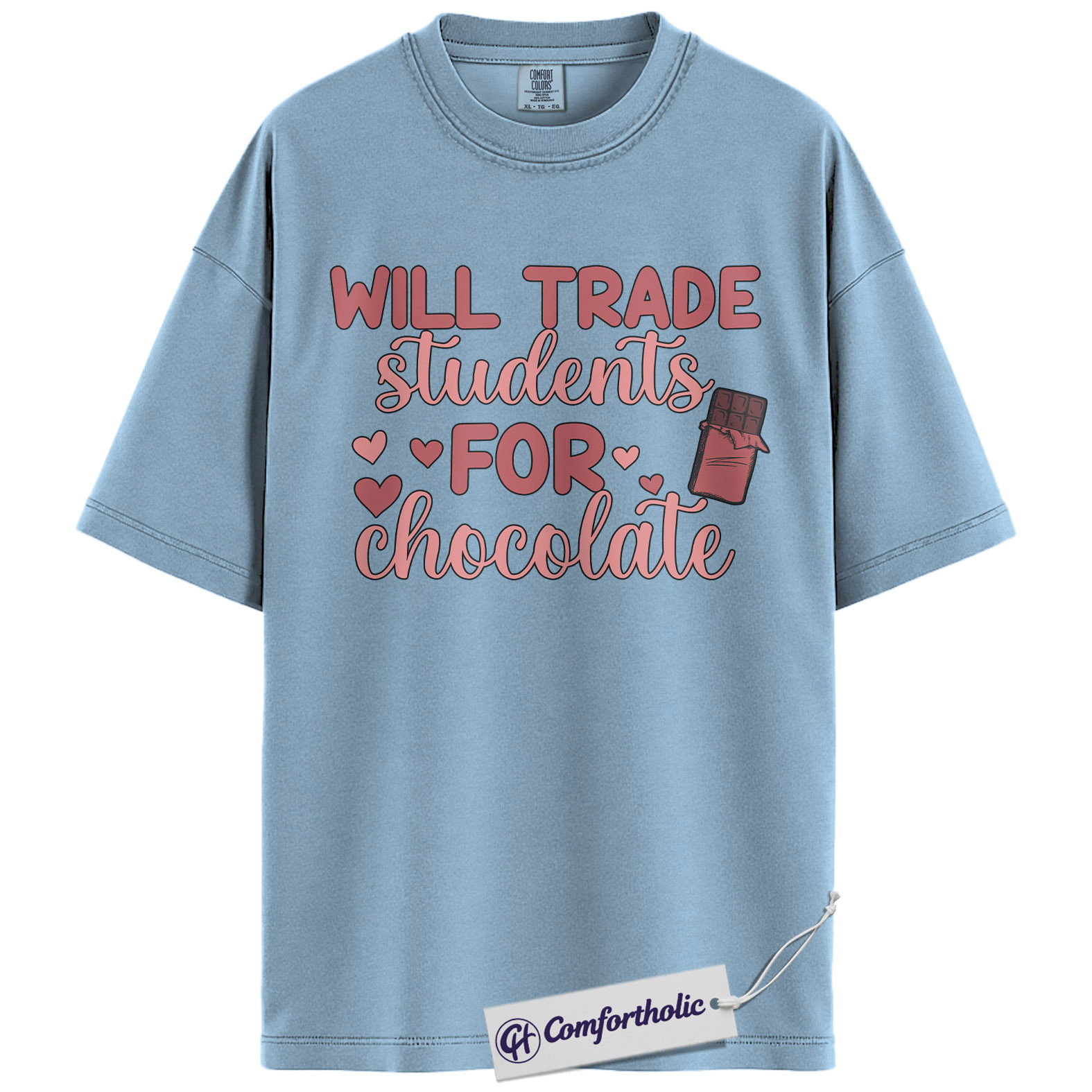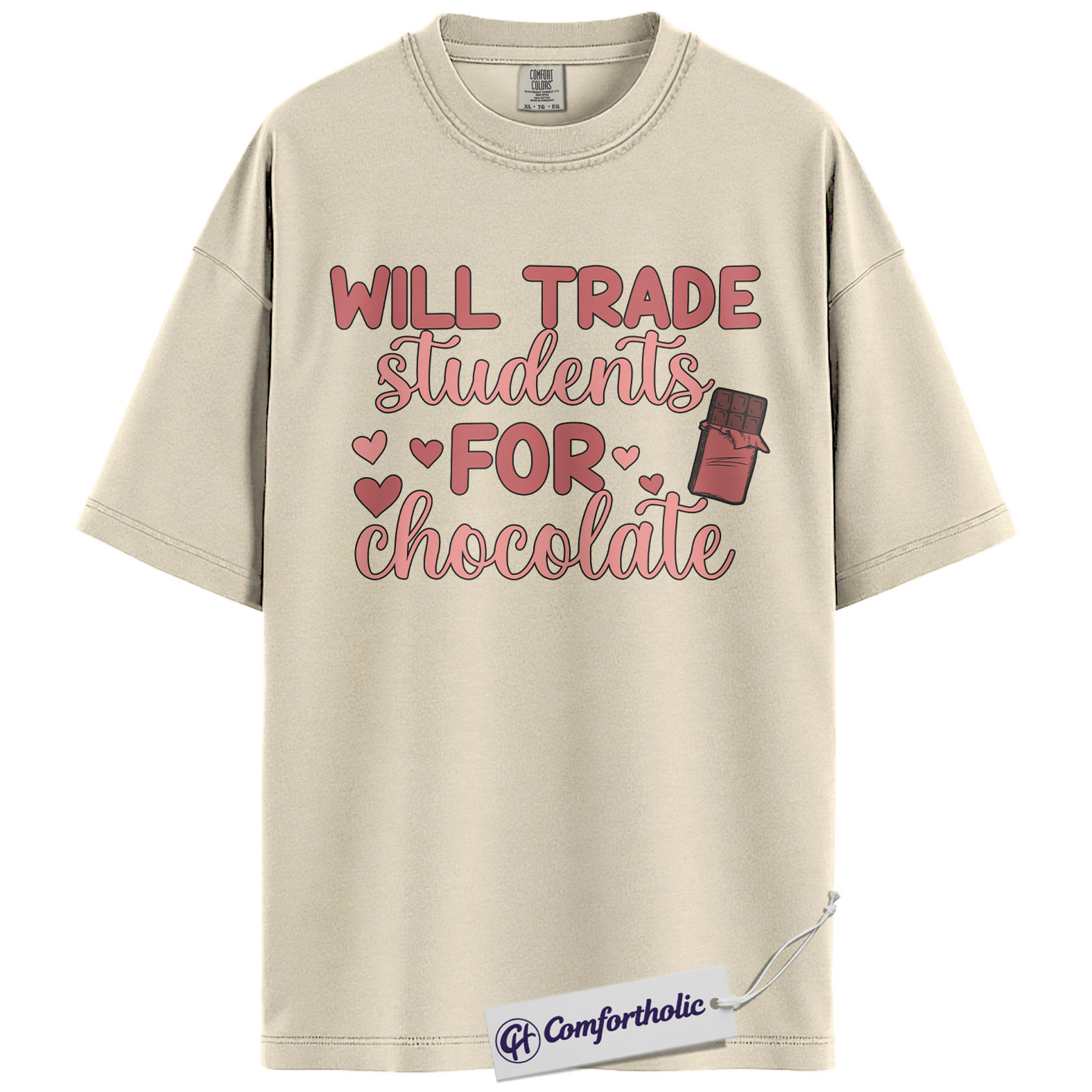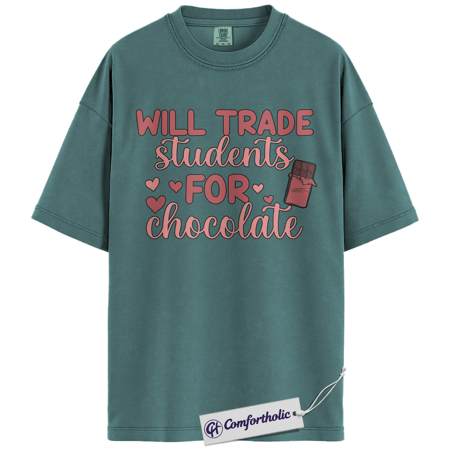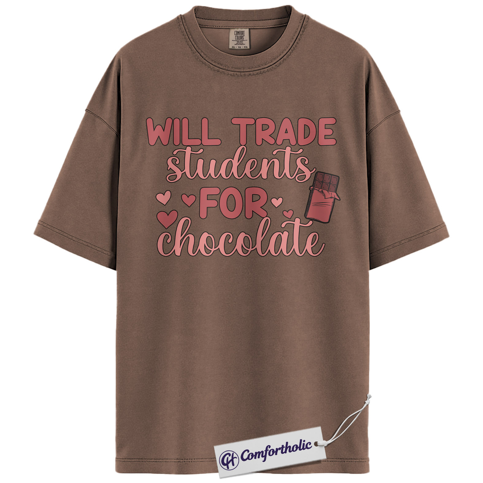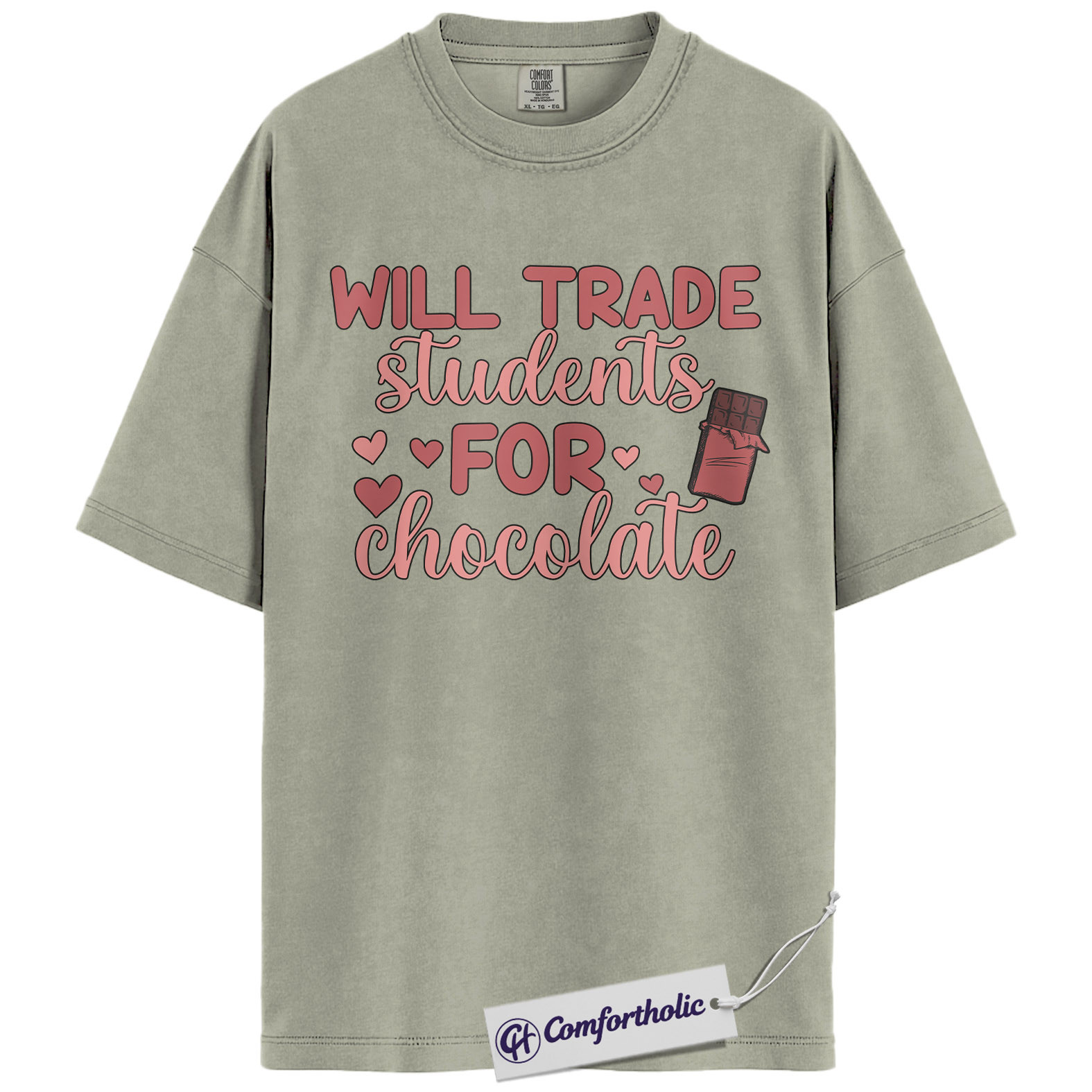 Will Trade Students For Chocolate Shirt, Funny Teacher Graphic Tee, Cute Teacher Humor T-Shirt, Valentine’s Day Gift for Teachers, Comfort Colors Shirt