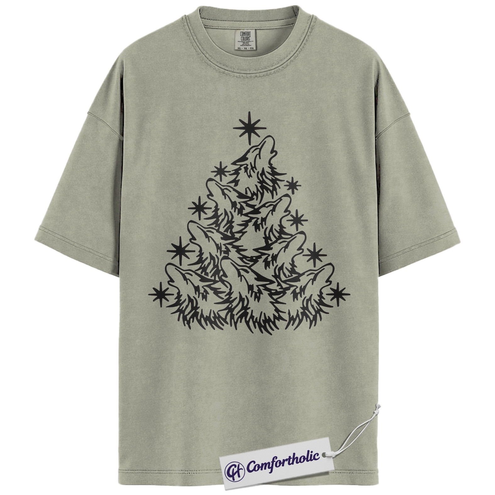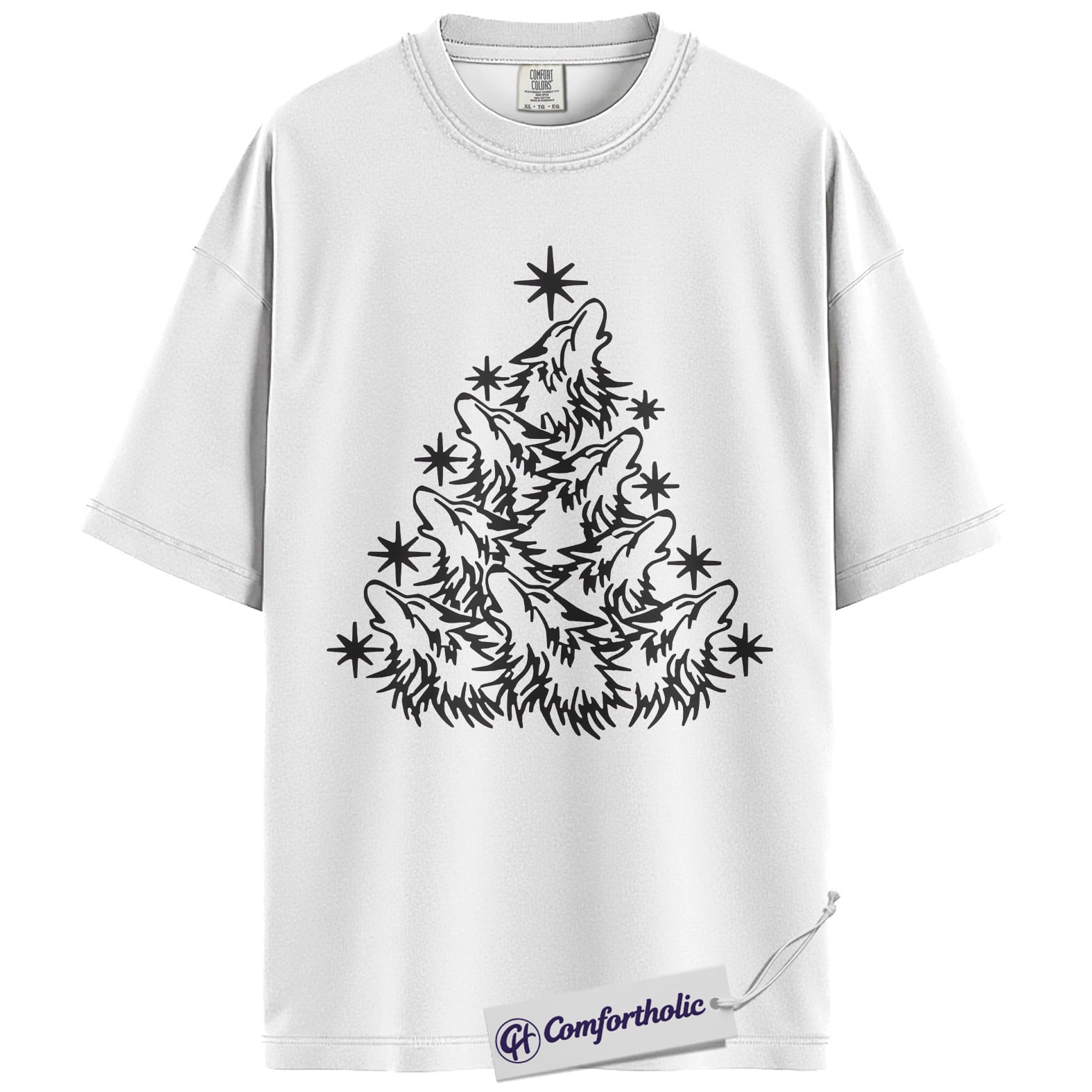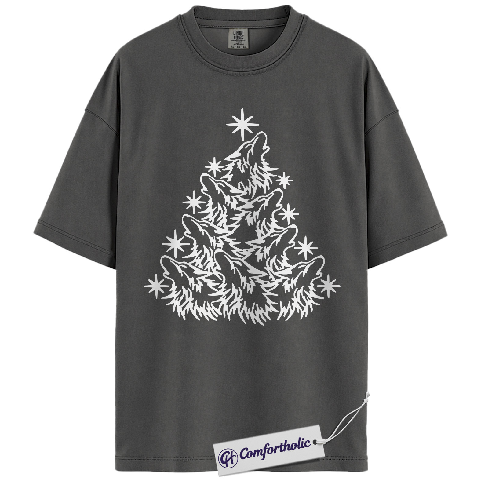 Wolf Christmas Tree Shirt, Wild Animal Holiday T-Shirt, Minimalist Nature Lover Graphic Tee, Rustic Gift for Wolf Lovers, Christmas Comfort Colors Shirt