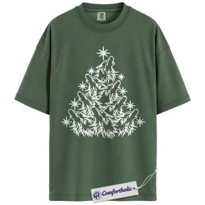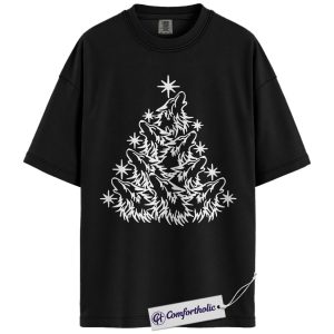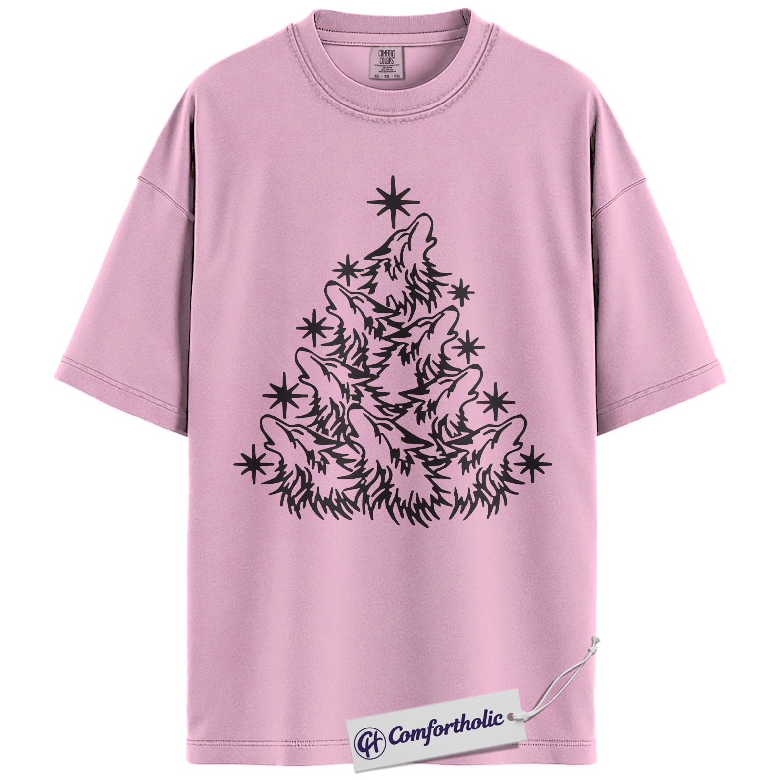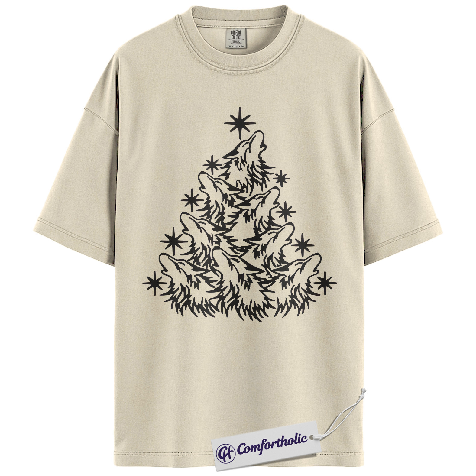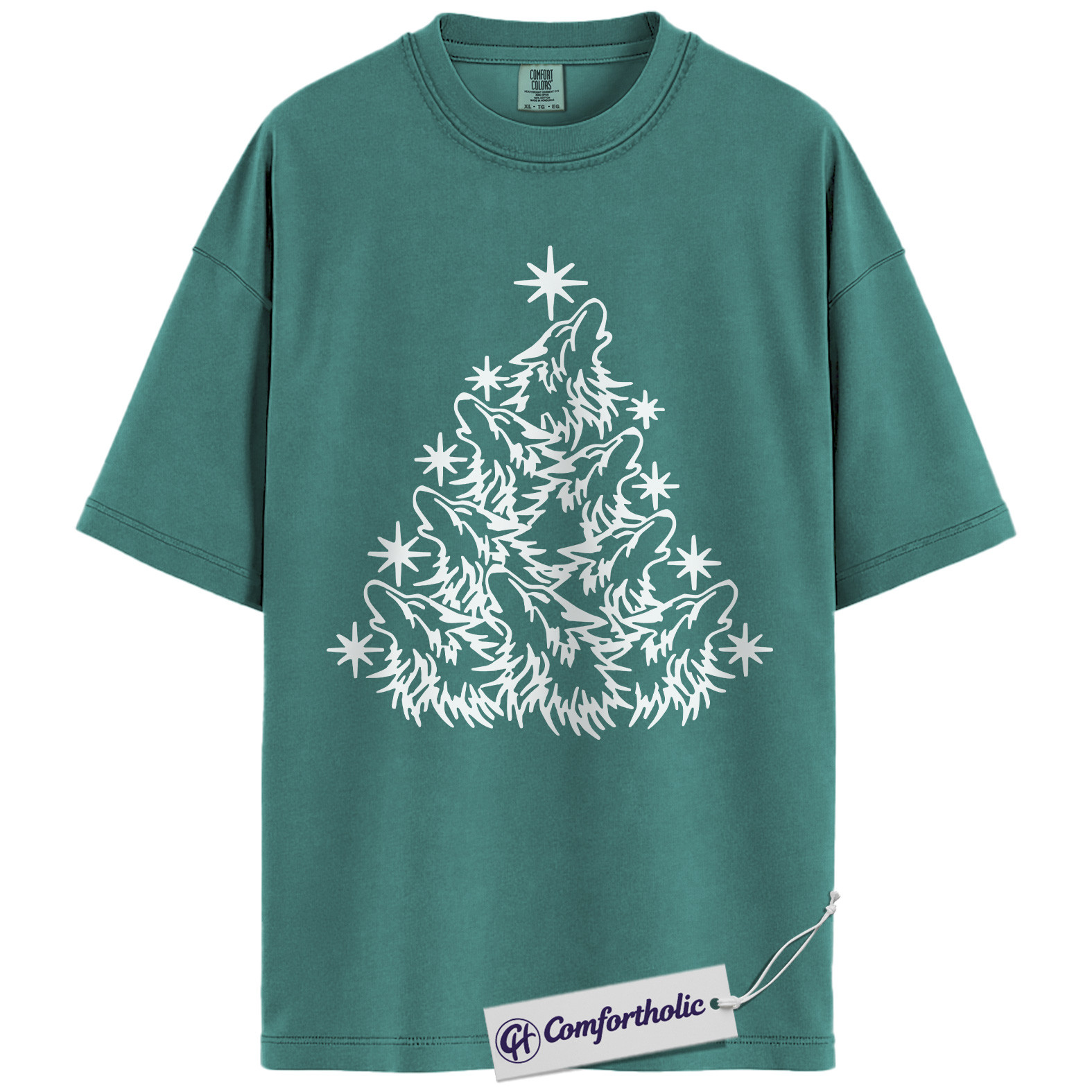 Wolf Christmas Tree Shirt, Wild Animal Holiday T-Shirt, Minimalist Nature Lover Graphic Tee, Rustic Gift for Wolf Lovers, Christmas Comfort Colors Shirt