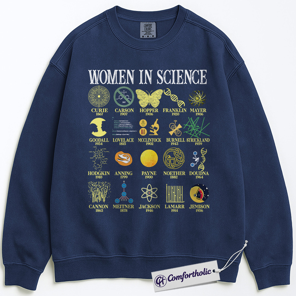 Women in Science Sweatshirt, Inspirational Female Scientists Graphic Pullover, STEM History Crewneck Sweatshirt, Educational Gift, Comfort Colors Sweatshirt