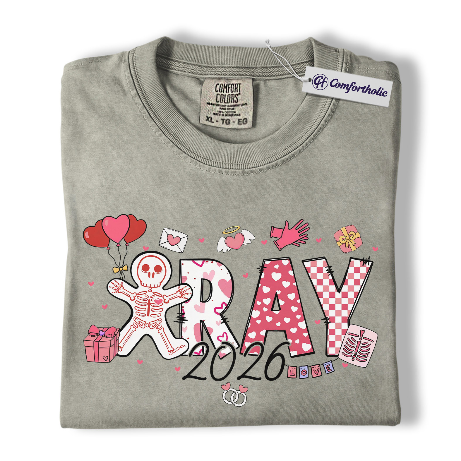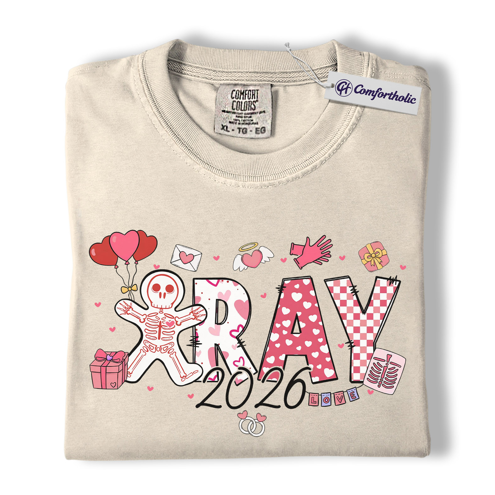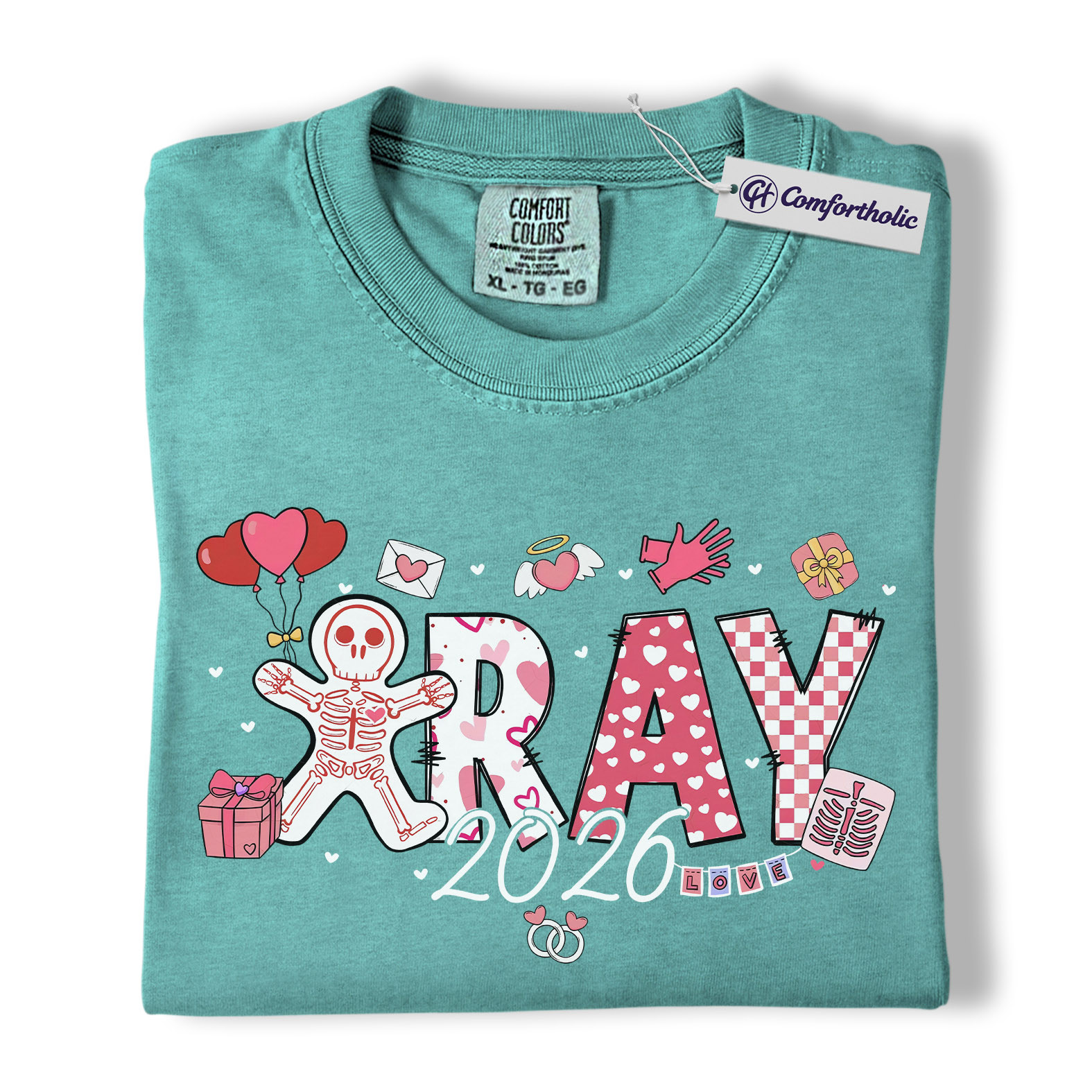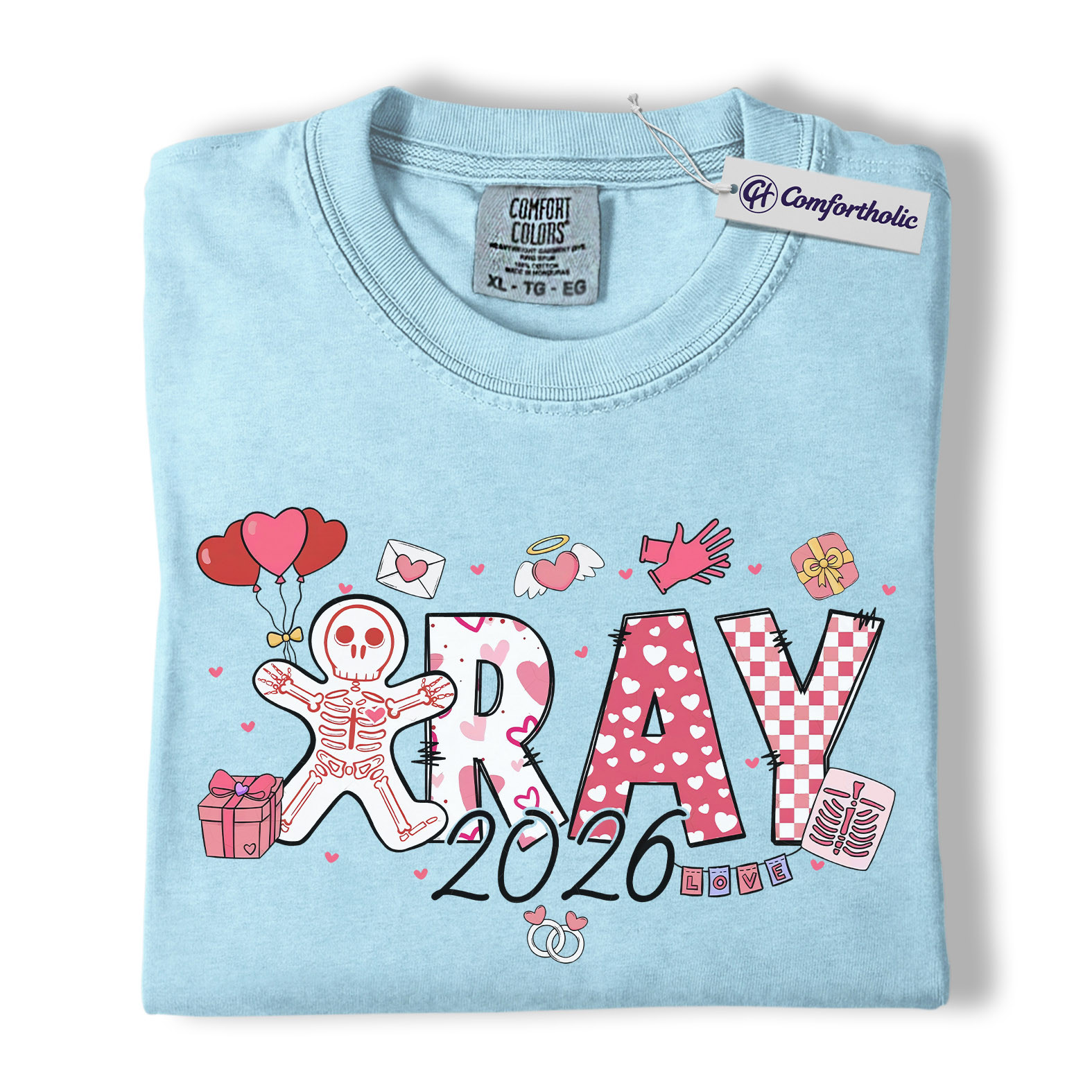 X-Ray Tech 2026 Shirt, Cute Valentine Skeleton Graphic Tee, Radiology Student Graduation T-Shirt, Gift for X Ray Techs & Radiologic Tech Students, Comfort Colors Shirt
