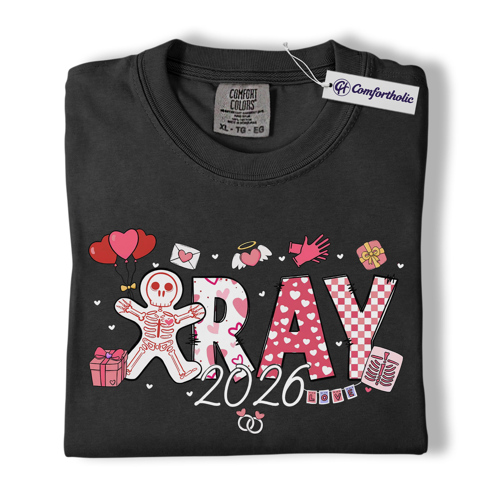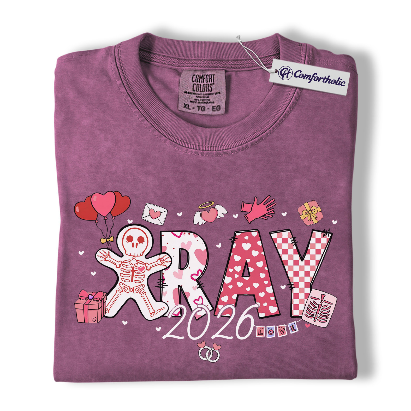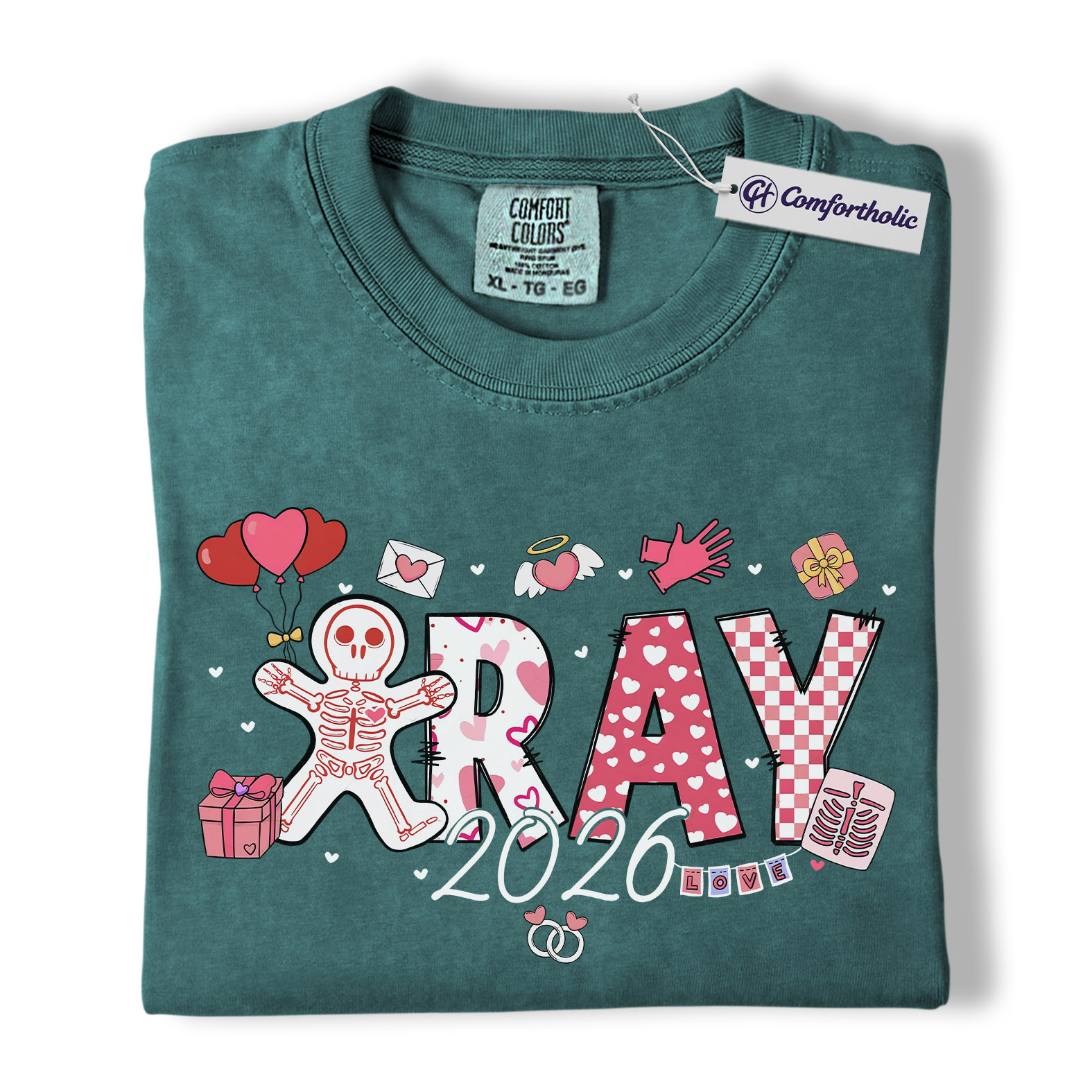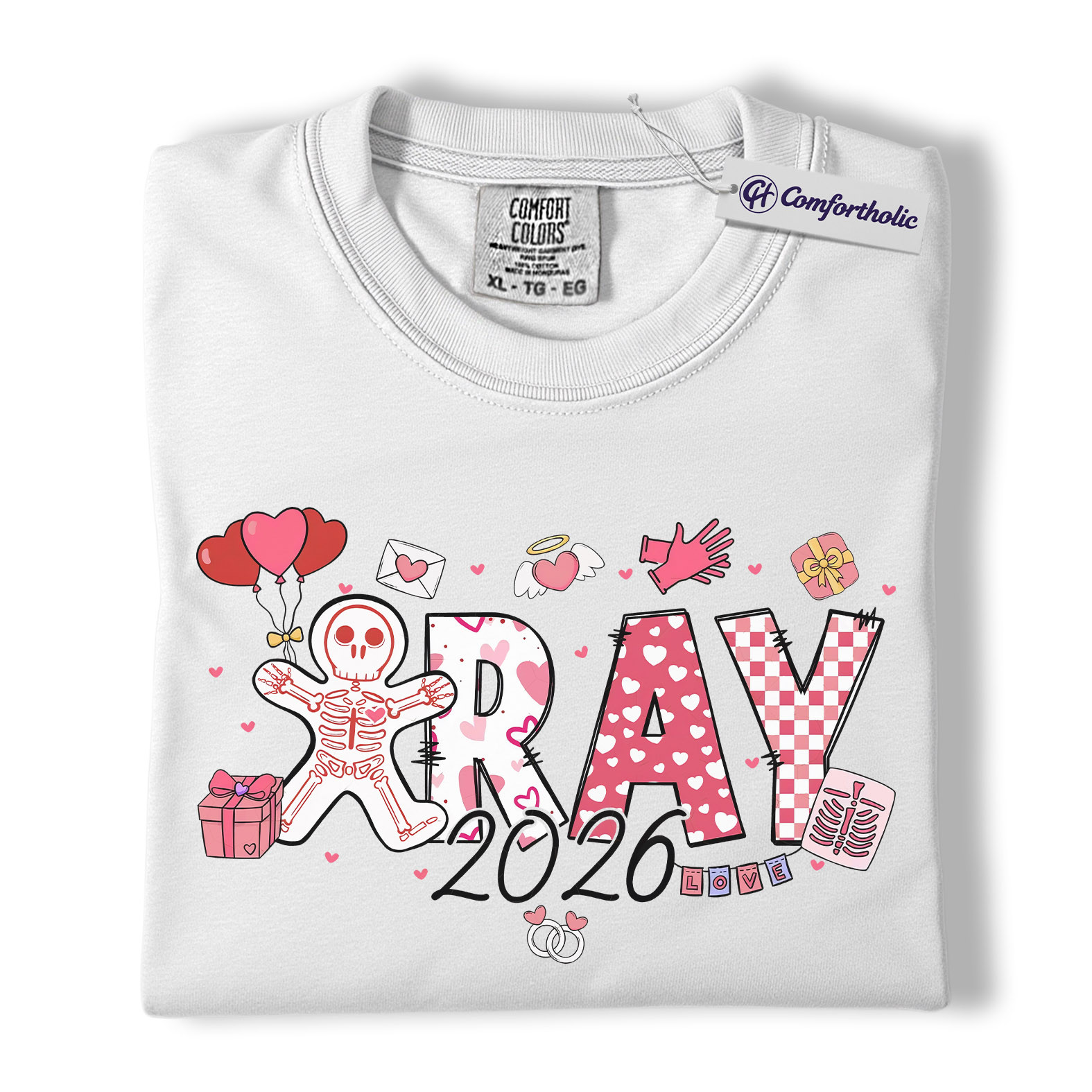 X-Ray Tech 2026 Shirt, Cute Valentine Skeleton Graphic Tee, Radiology Student Graduation T-Shirt, Gift for X Ray Techs & Radiologic Tech Students, Comfort Colors Shirt