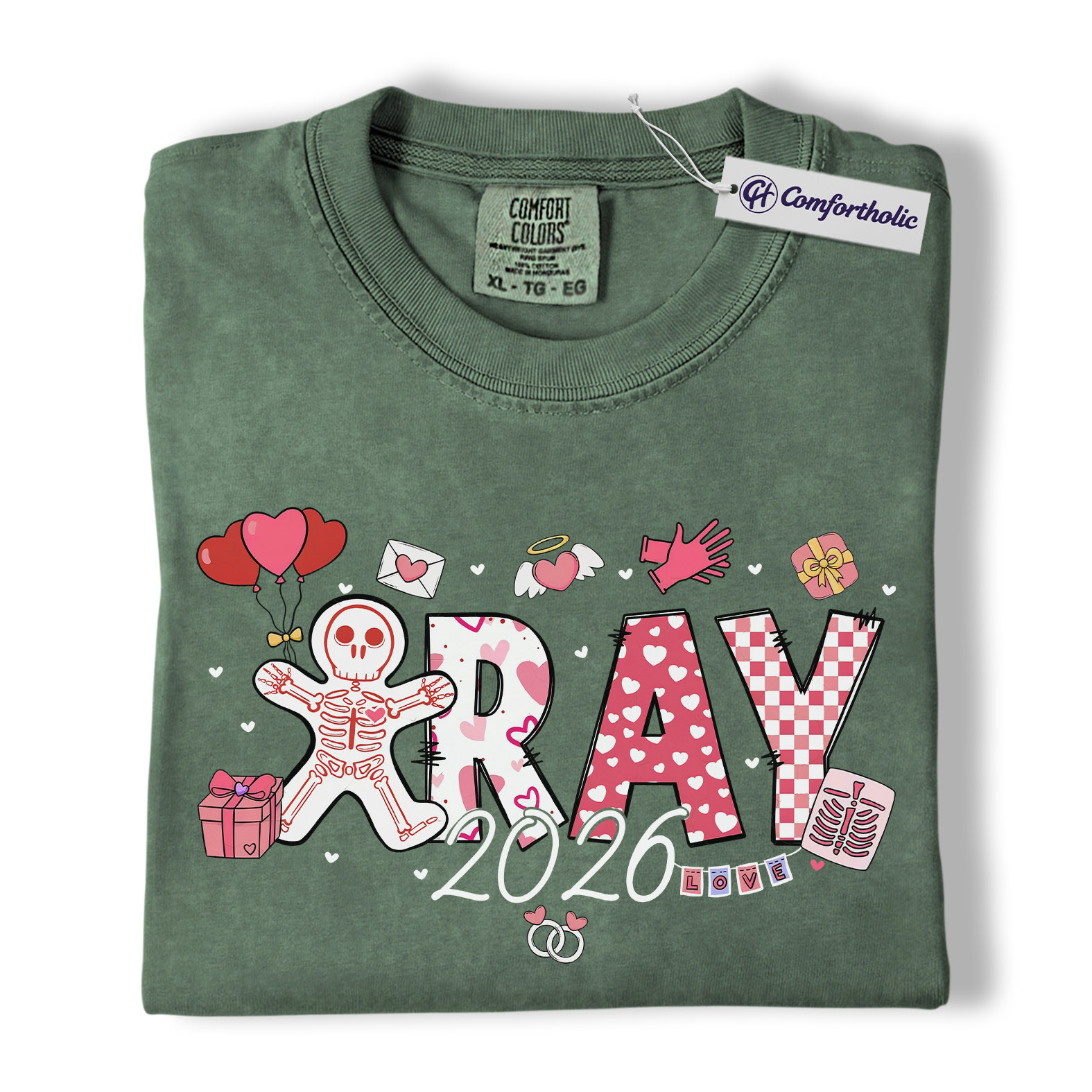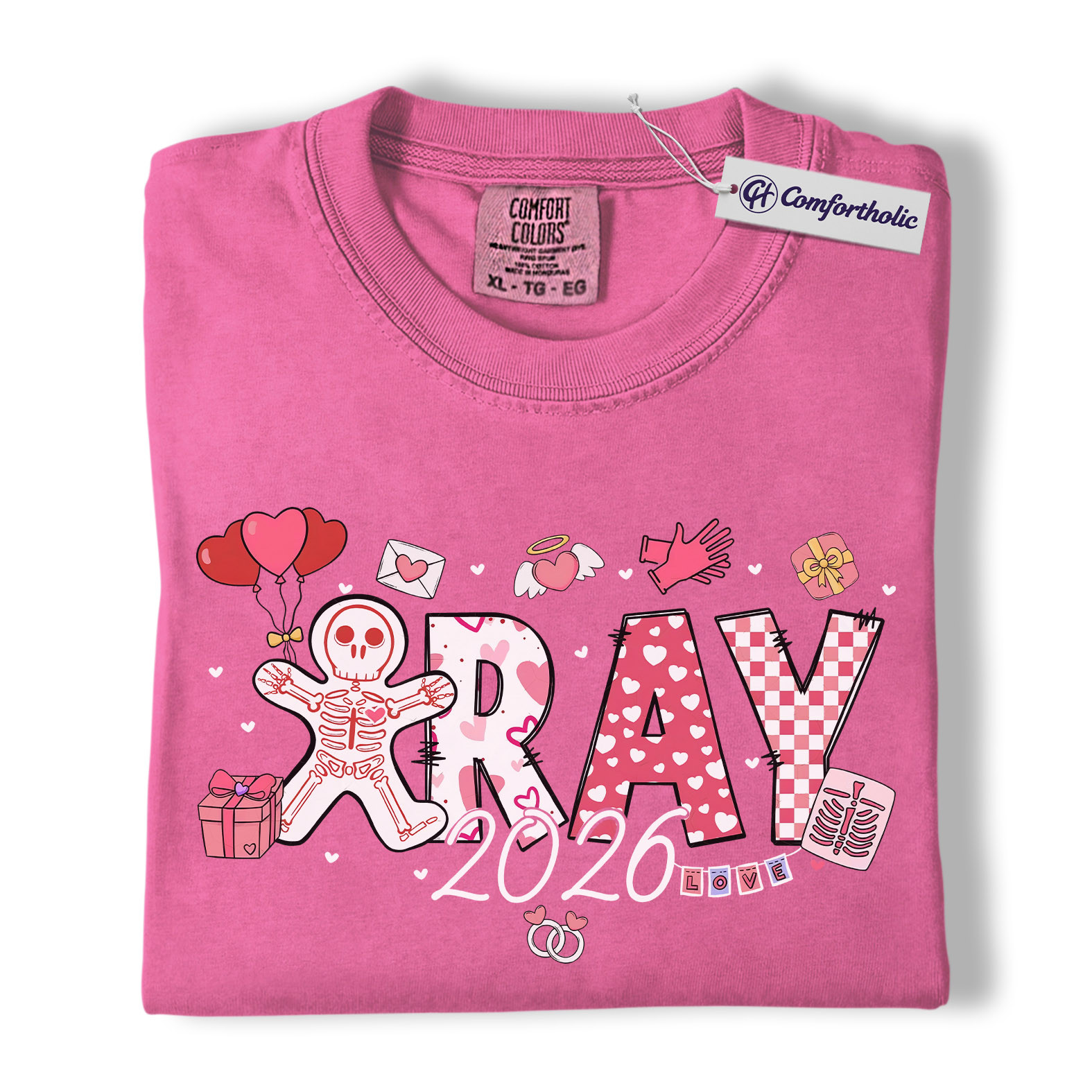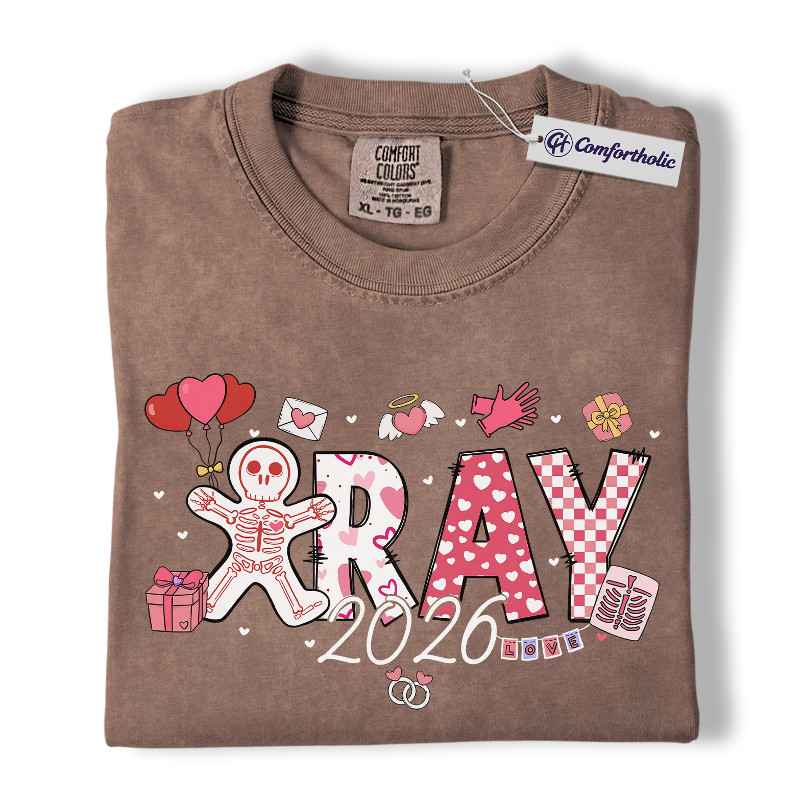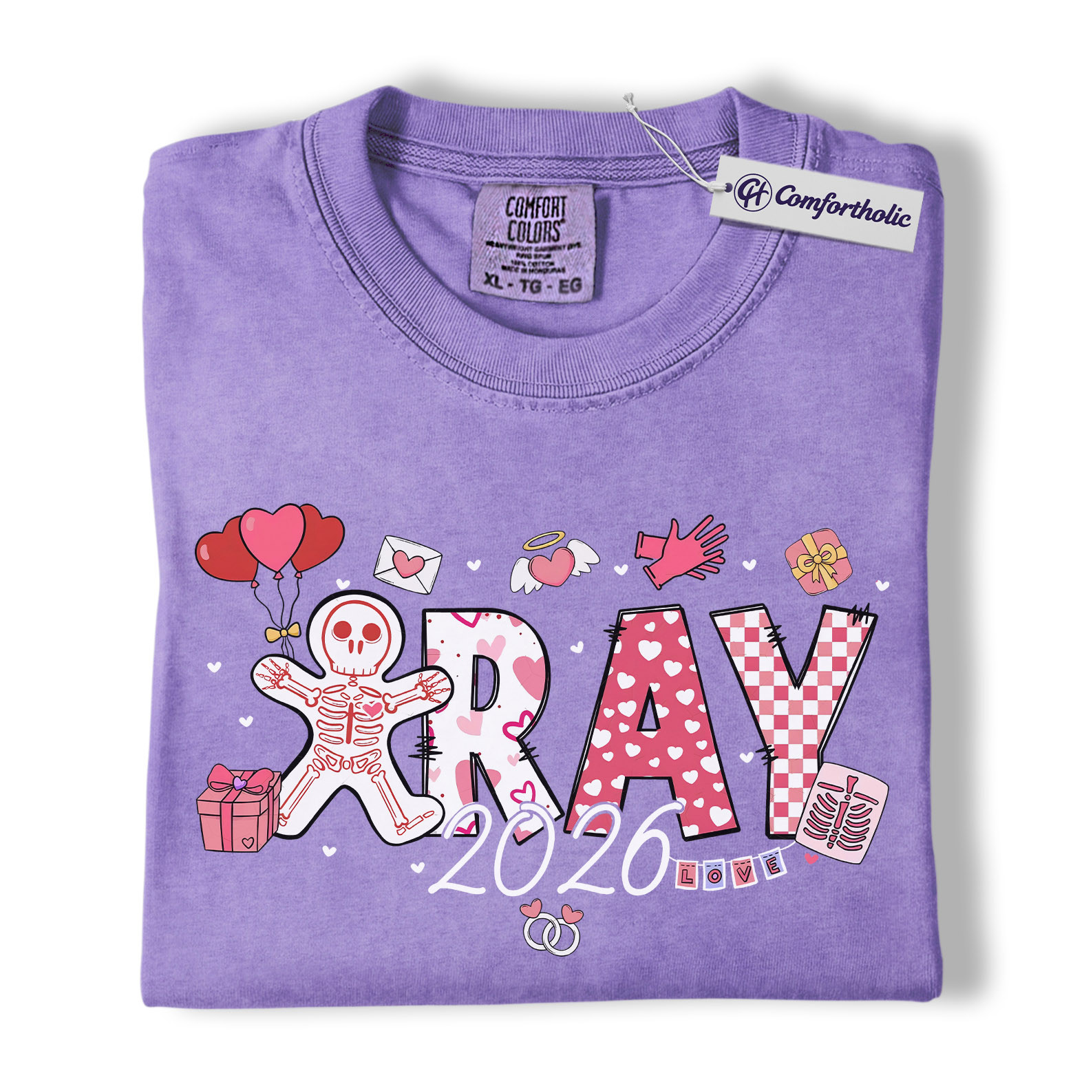 X-Ray Tech 2026 Shirt, Cute Valentine Skeleton Graphic Tee, Radiology Student Graduation T-Shirt, Gift for X Ray Techs & Radiologic Tech Students, Comfort Colors Shirt