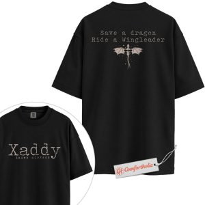Xaddy Xaden Riorson Shirt, Fourth Wing Quote T-Shirt, Save a Dragon Ride a Wingleader Tee, Romantic Fantasy Book Lover Gift, Fourth Wing Comfort Colors Shirt 2-Sided