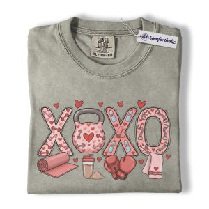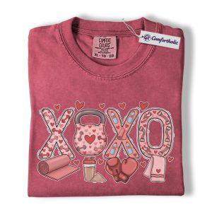 XOXO Fitness Shirt, Valentine Gym Workout Graphic Tee, Weightlifting Boxing Yoga T-Shirt, Valentine’s Day Gift for Gym Lovers, Comfort Colors Shirt