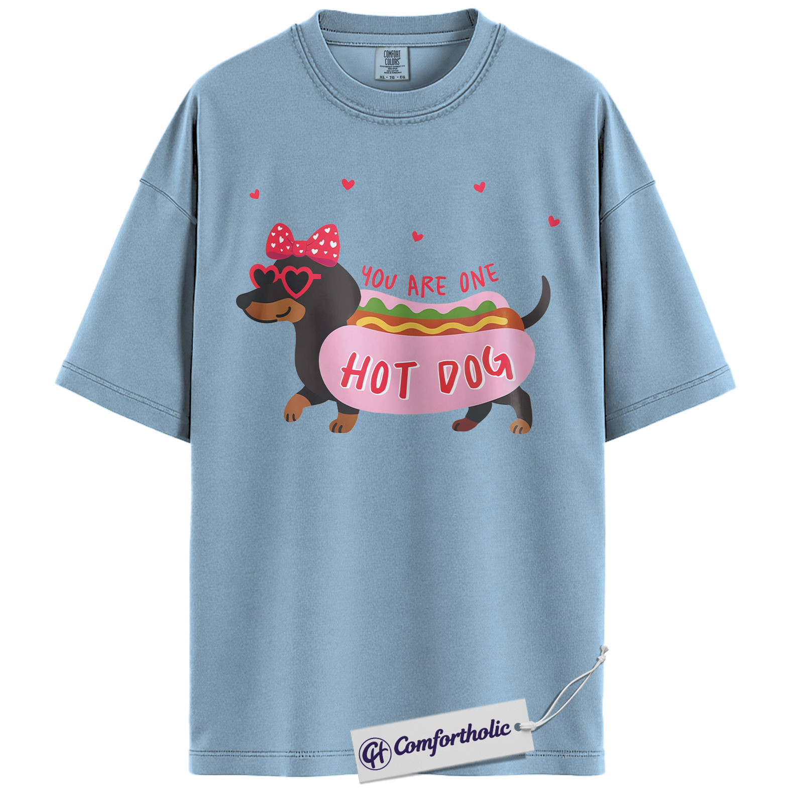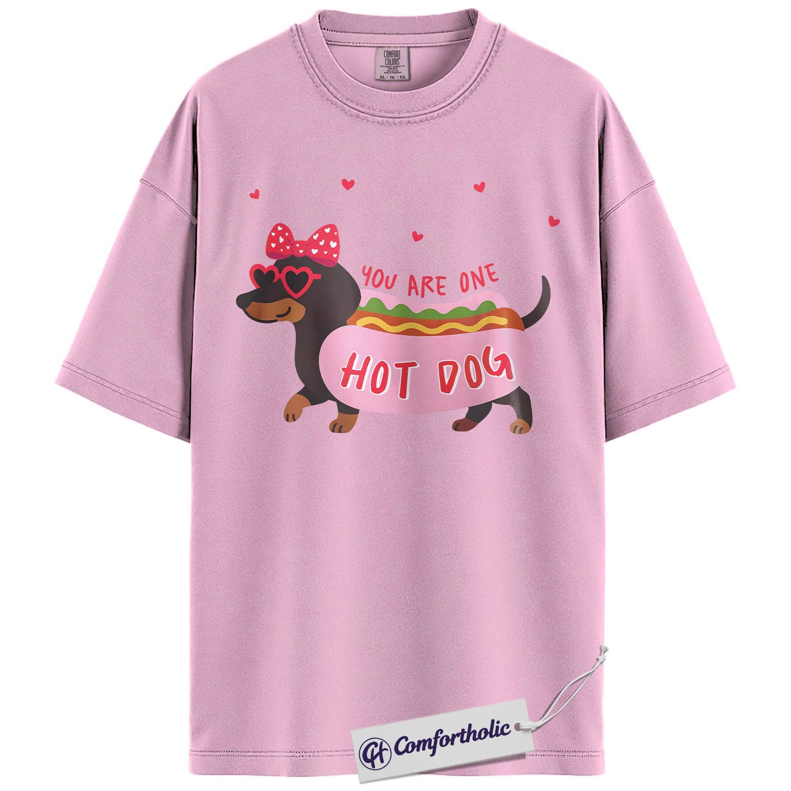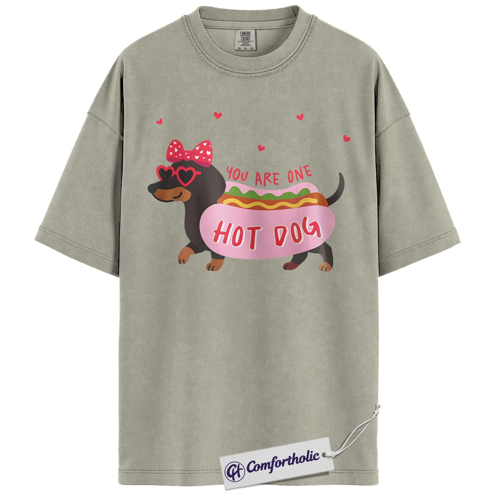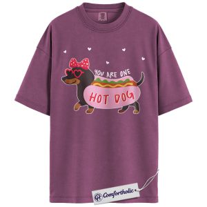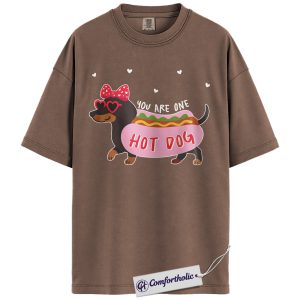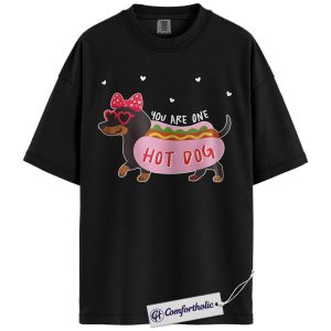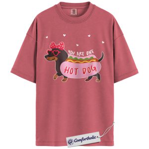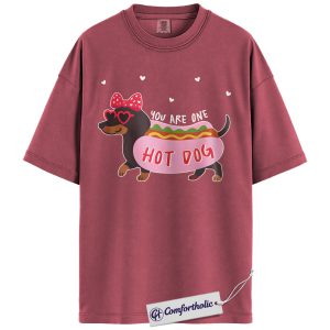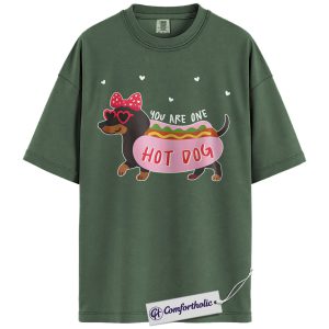 You Are One Hot Dog Shirt, Cute Dachshund Valentine Graphic Tee, Funny Dog Lover T-Shirt, Valentine Gift for Dog Moms, Comfort Colors Shirt