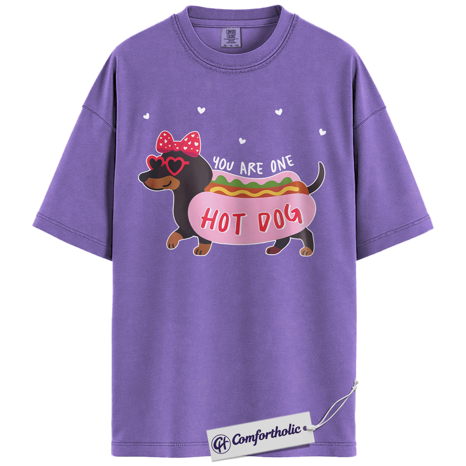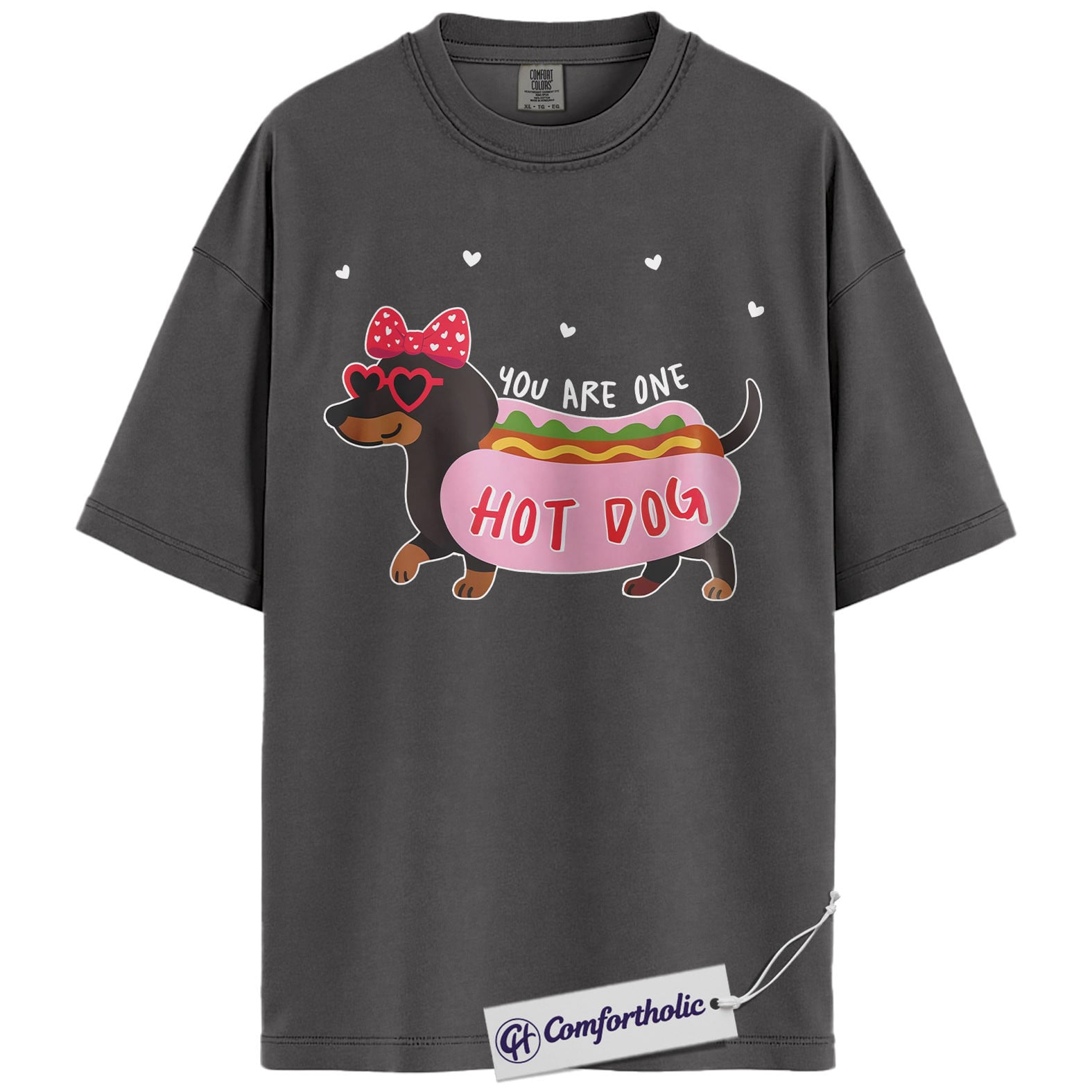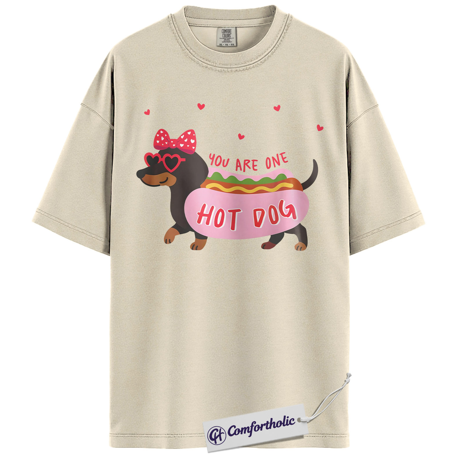 You Are One Hot Dog Shirt, Cute Dachshund Valentine Graphic Tee, Funny Dog Lover T-Shirt, Valentine Gift for Dog Moms, Comfort Colors Shirt