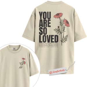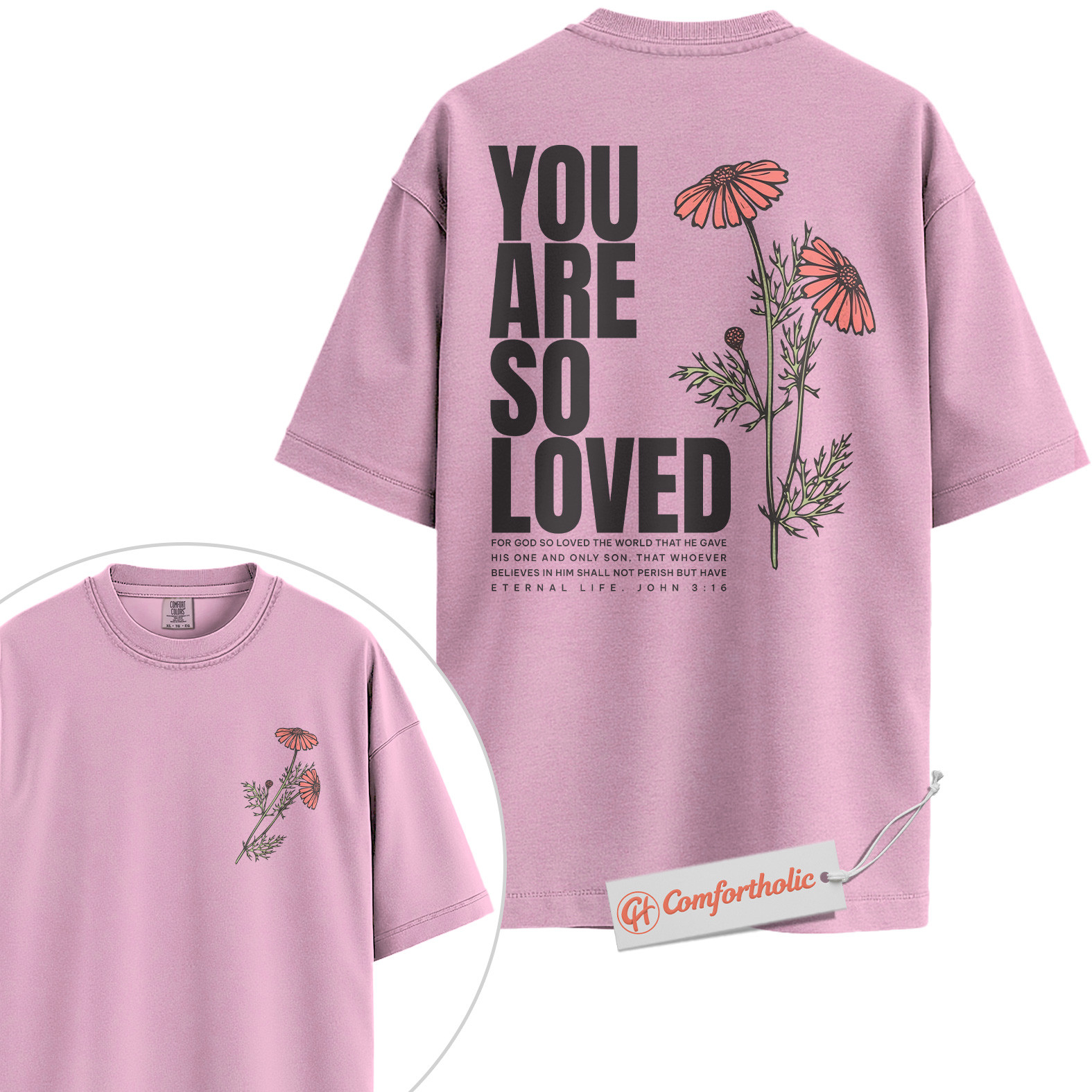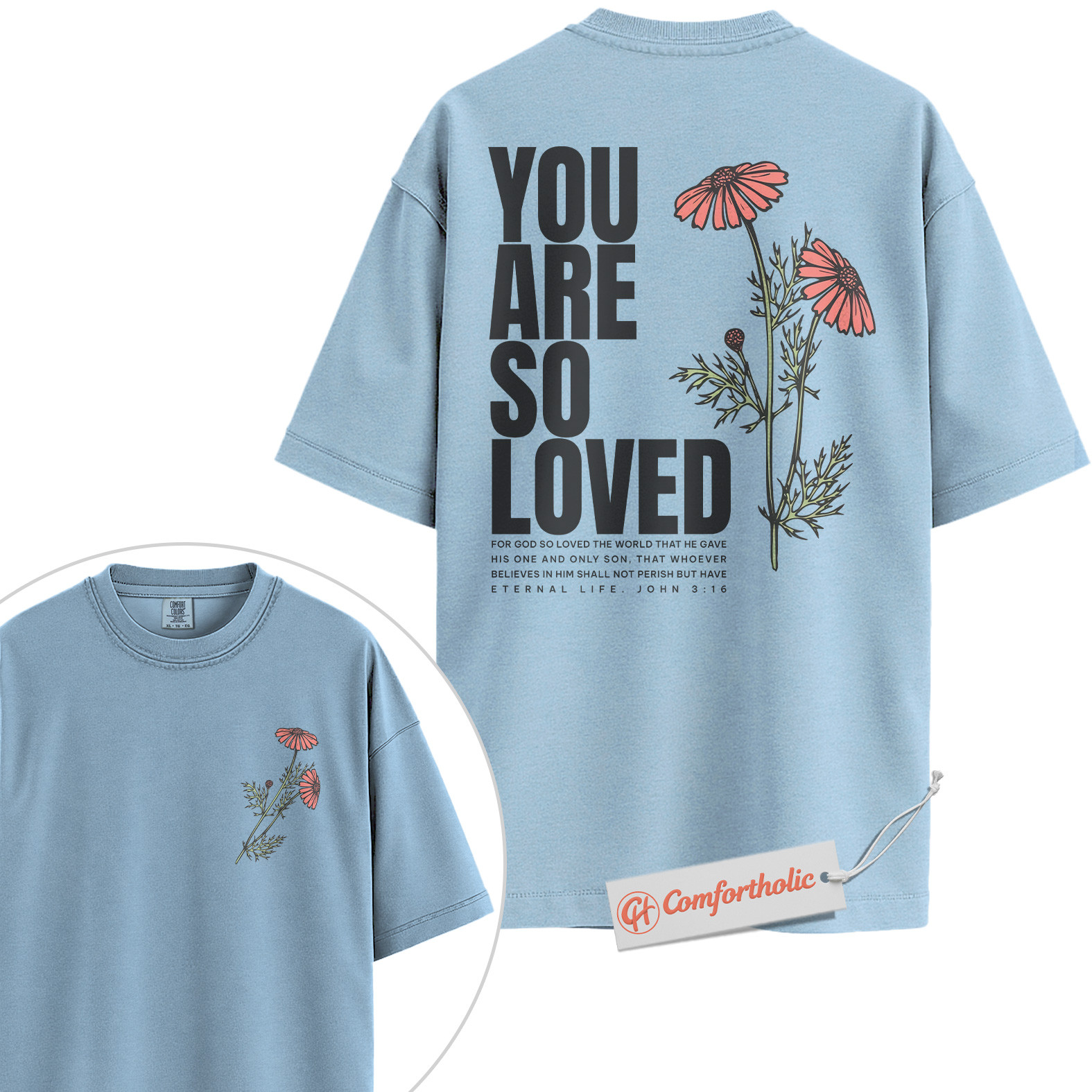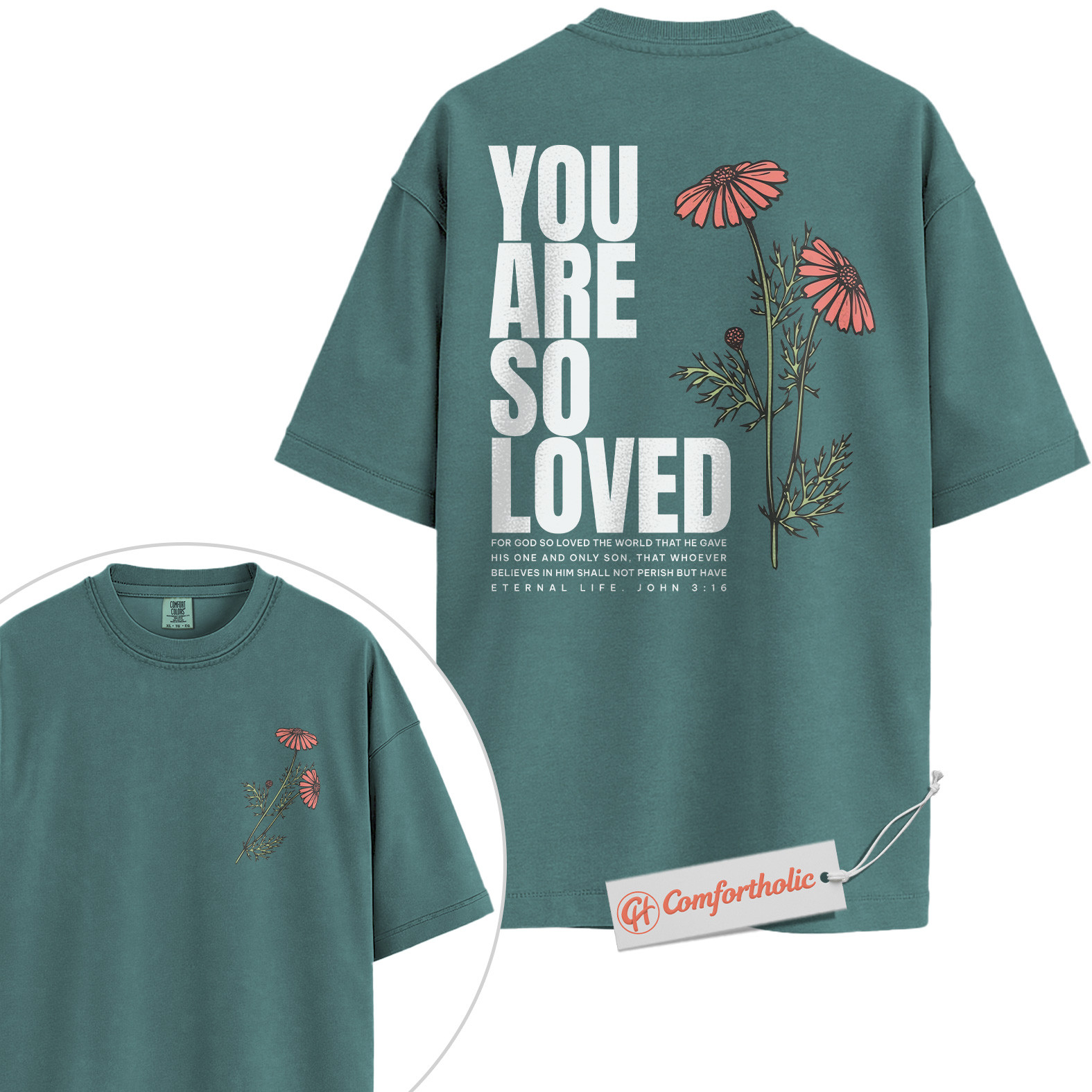 You Are So Loved Shirt, John 3:16 Bible Verse T-Shirt, Christian Floral Graphic Tee, Encouragement Gift, Faith-Based Comfort Colors Shirt 2-Sided