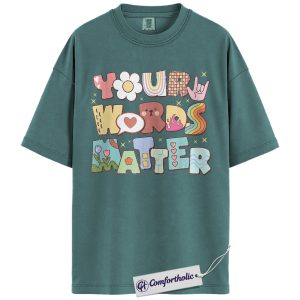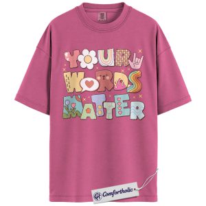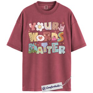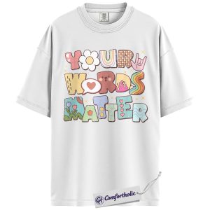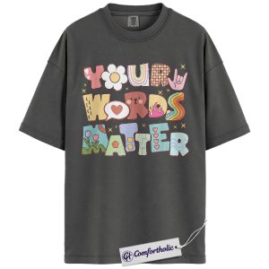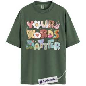 Your Words Matter Shirt, Positive Message T-Shirt, Mental Health Awareness Graphic Tee, Inspirational Kindness Quote Gift, Speech Therapy Comfort Colors Shirt