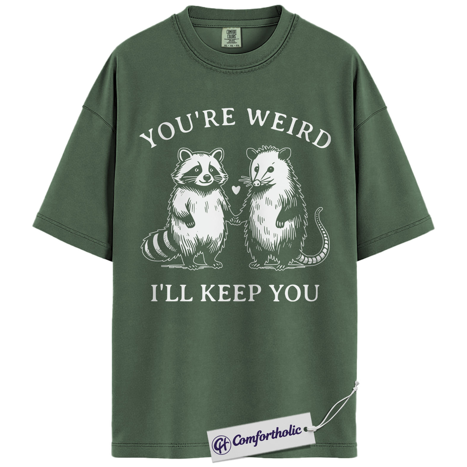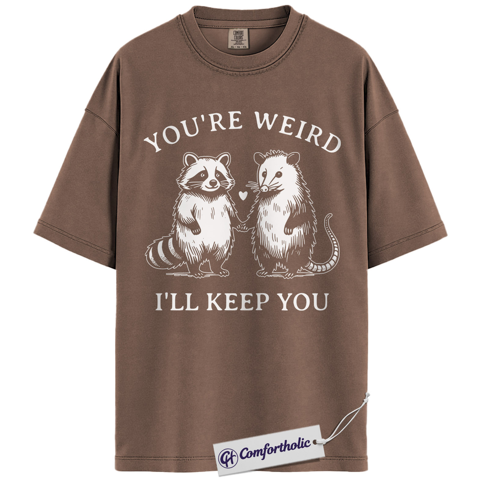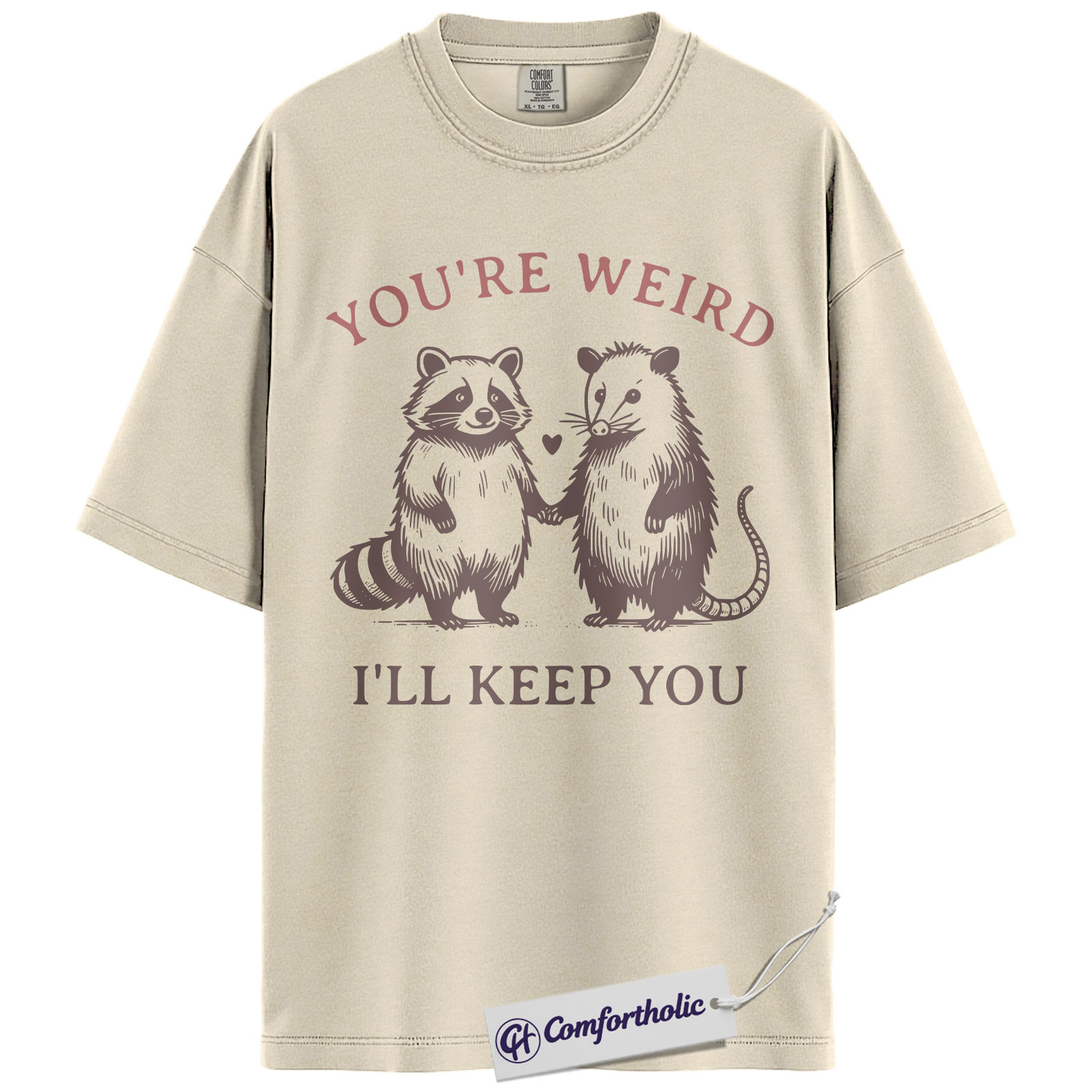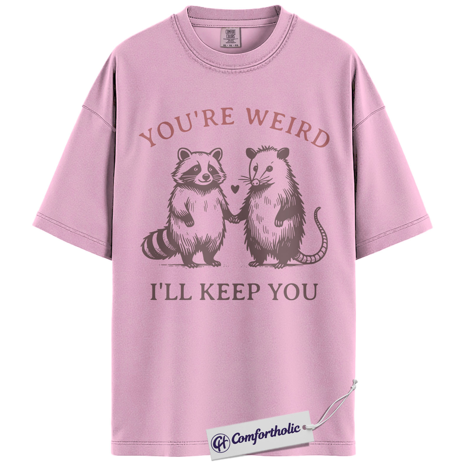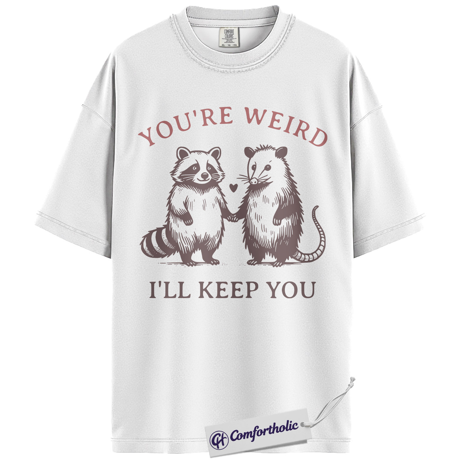 You’re Weird I’ll Keep You Shirt, Cute Raccoon & Opossum Graphic Tee, Funny Valentine Couple T-Shirt, Valentine’s Day Gift for Couples, Comfort Colors Shirt